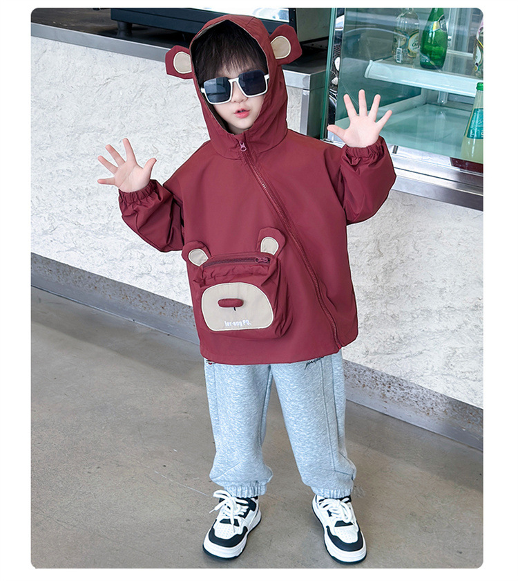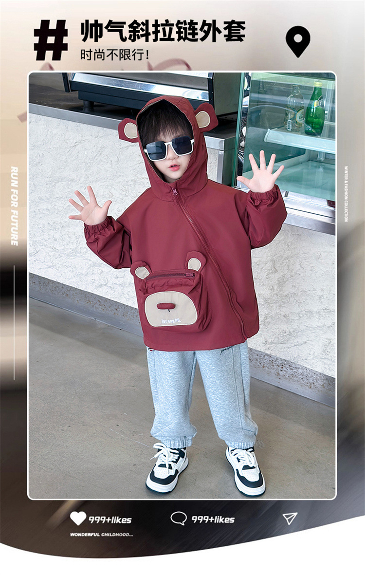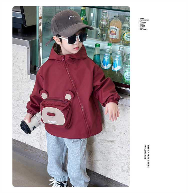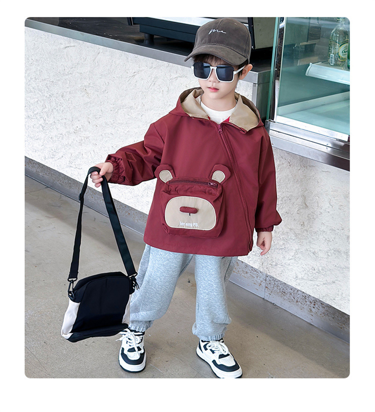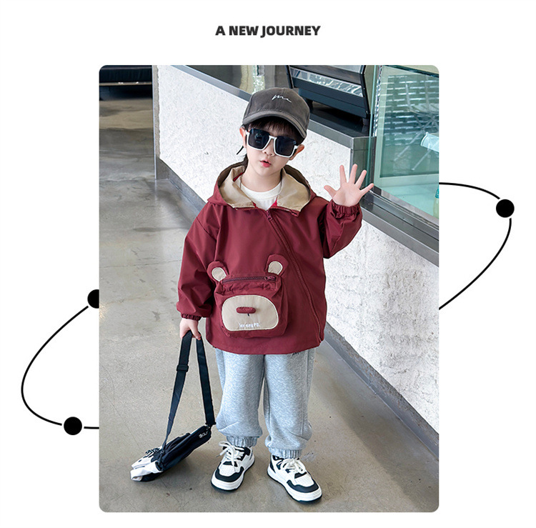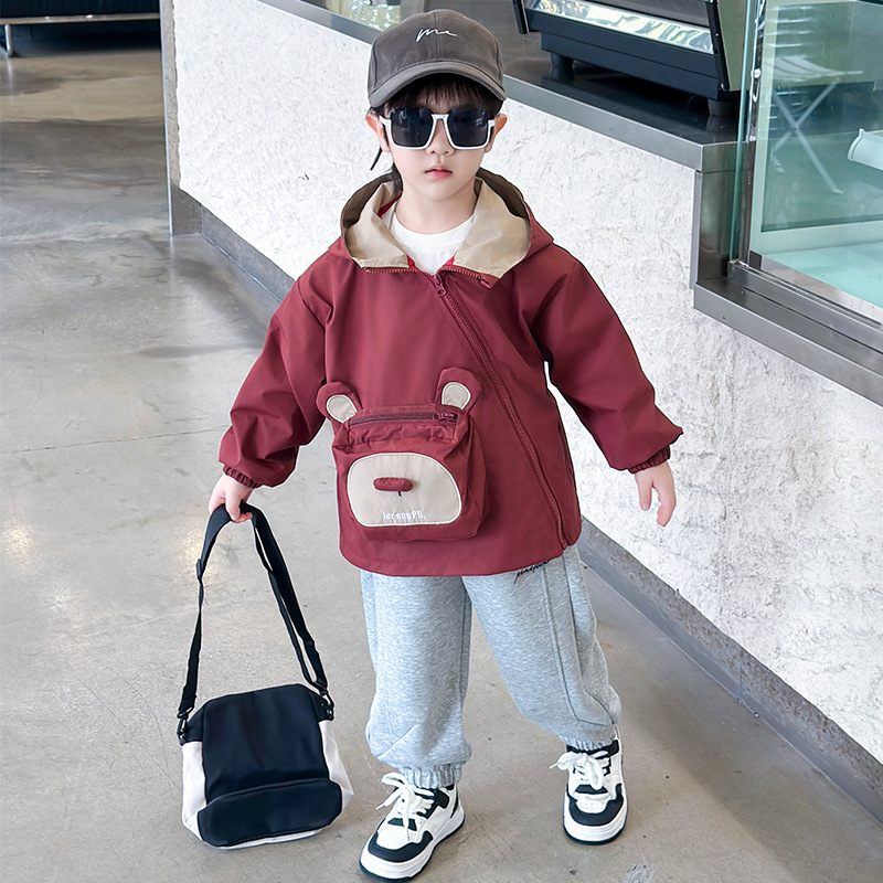 어린이 봄과 가을 비스듬한 지퍼 곰 3 차원 가방 재킷 코트 2024 소년과 아기를위한 새로운 대외 무역 아동복