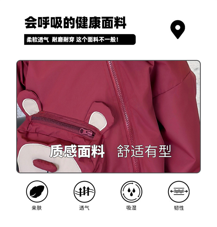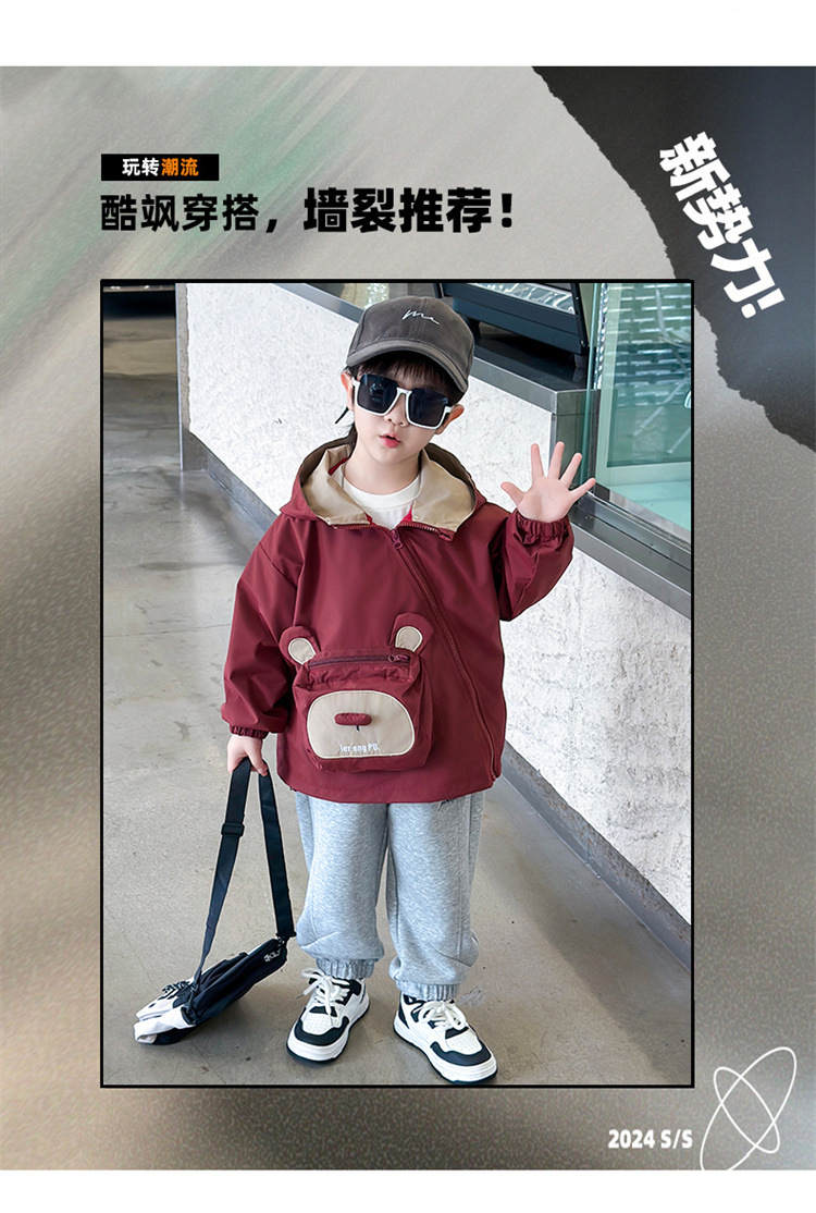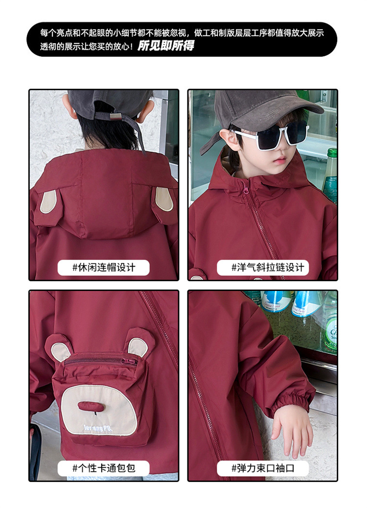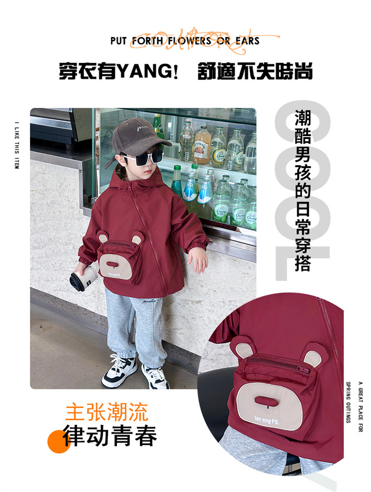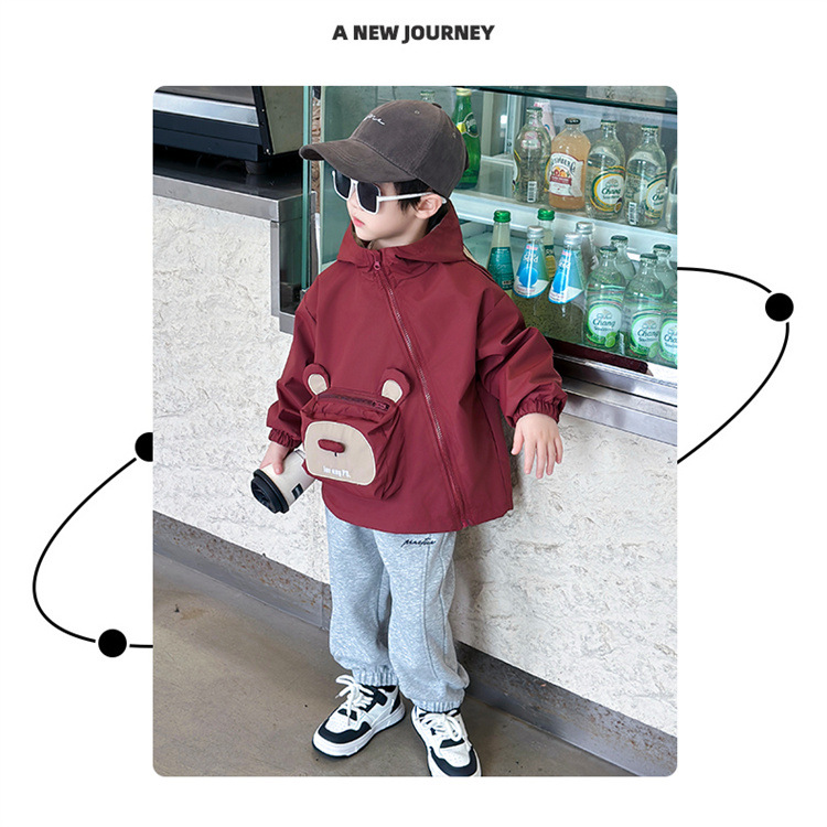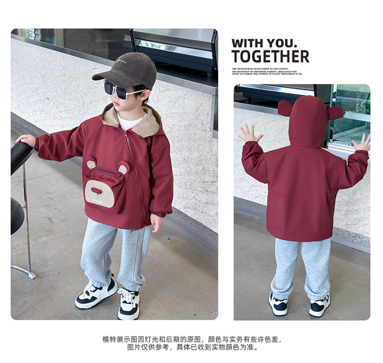 어린이 봄과 가을 비스듬한 지퍼 곰 3 차원 가방 재킷 코트 2024 소년과 아기를위한 새로운 대외 무역 아동복
