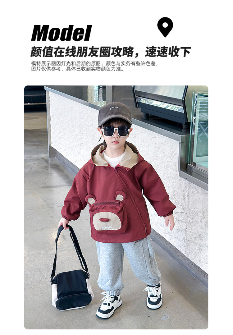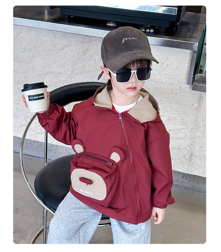 어린이 봄과 가을 비스듬한 지퍼 곰 3 차원 가방 재킷 코트 2024 소년과 아기를위한 새로운 대외 무역 아동복스토어 가기