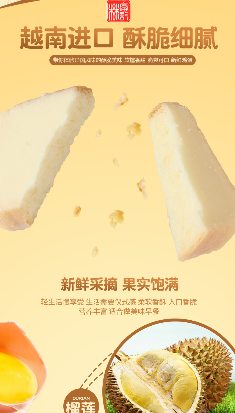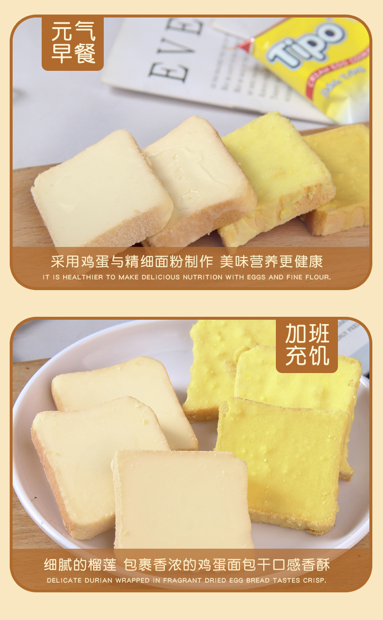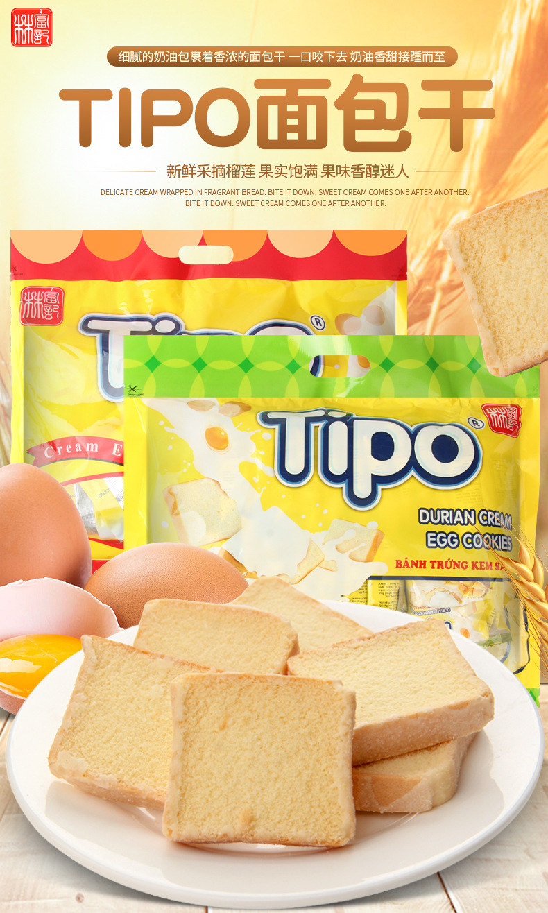 베트남 수입 티포 말린 빵 270g 원래 두리안 맛 계란 우유 빵 비스킷 스낵스토어 가기