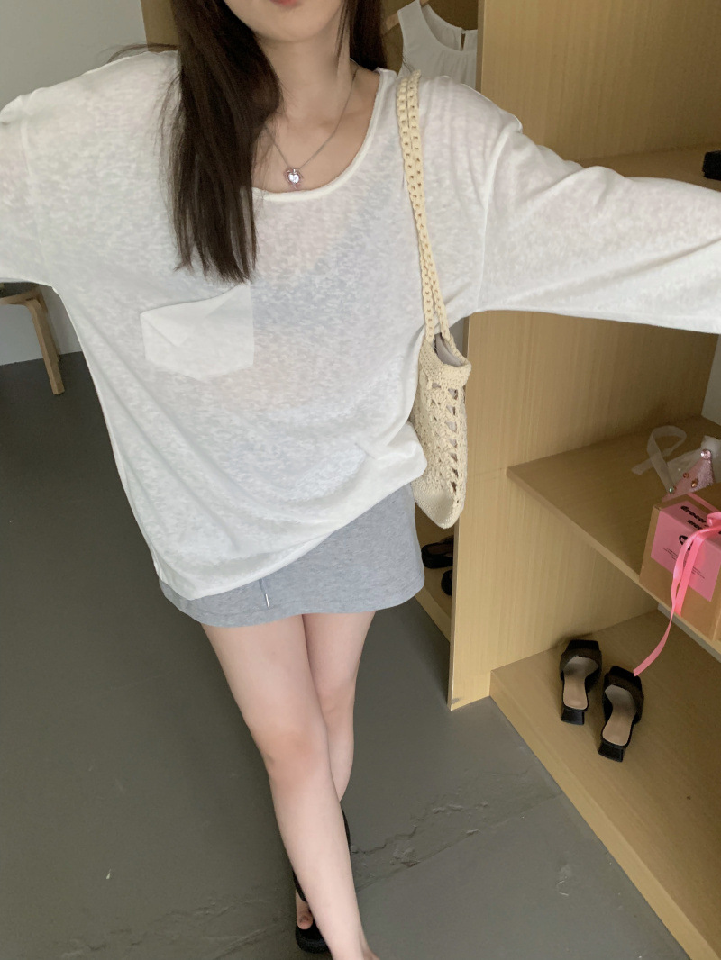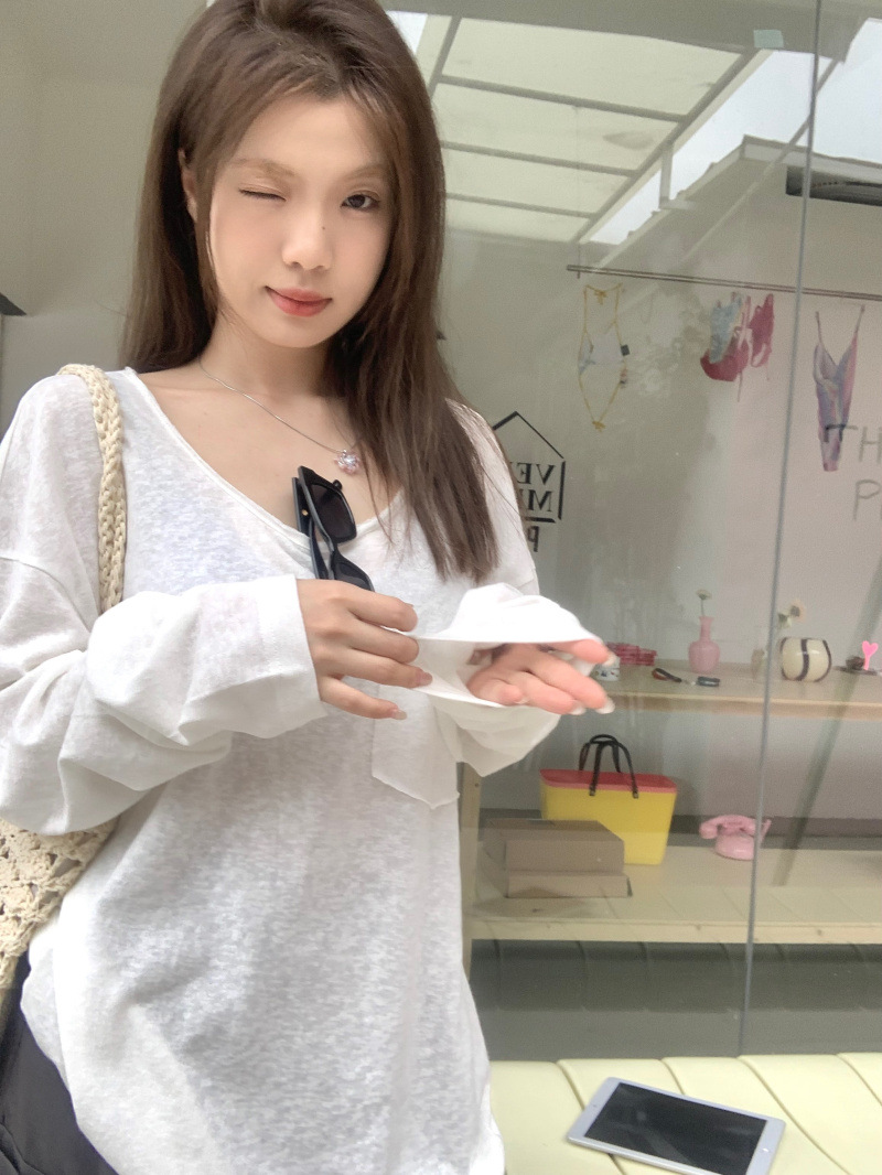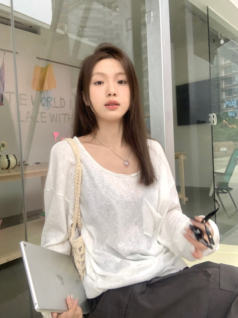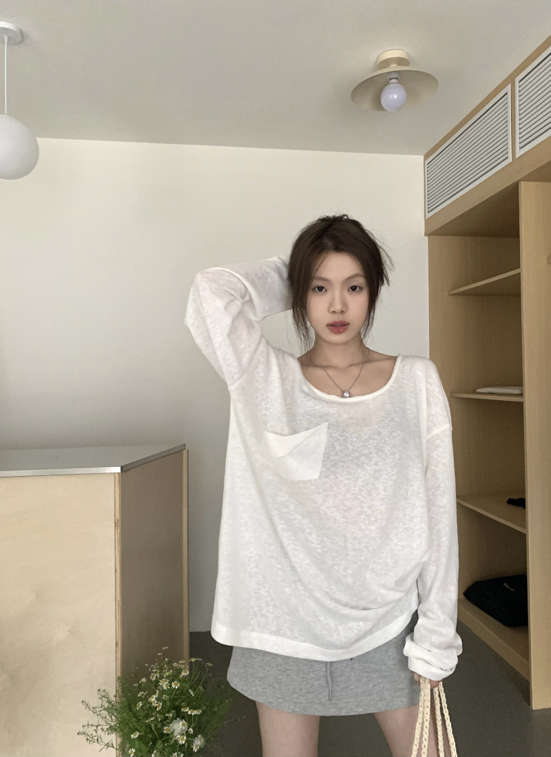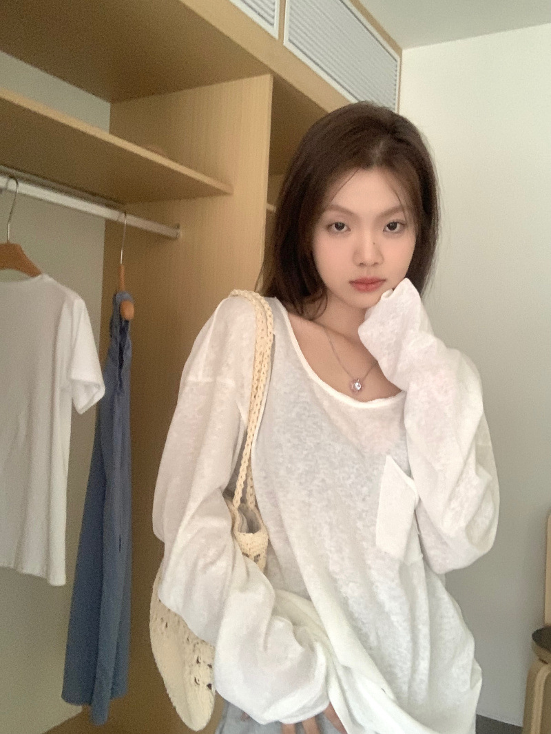 흰색 얇은 긴팔 선 스크린 블라우스 티셔츠 여성용 가을 게으른 스타일 느슨한 슬리밍 캐주얼 올 매치 젠틀 탑스토어 가기