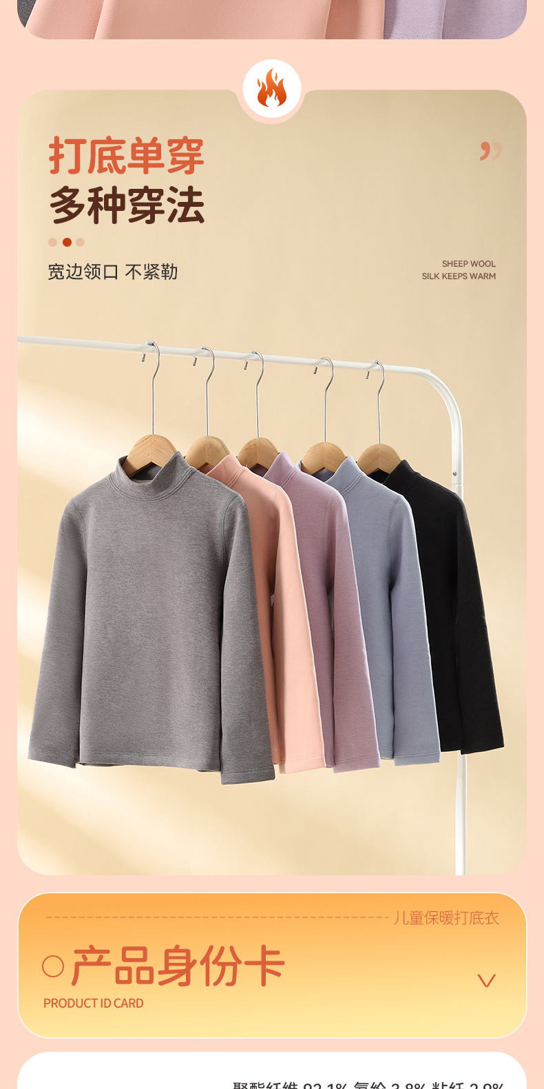 가을과 겨울 어린이 높은 칼라베이스 셔츠 클래스 소년 소녀를위한 벨벳 열 속옷스토어 가기