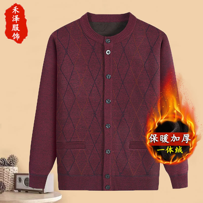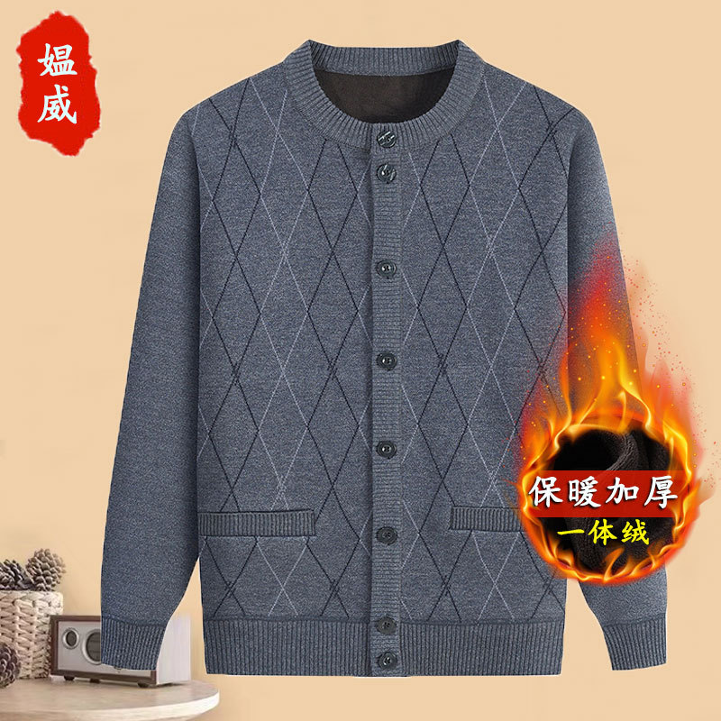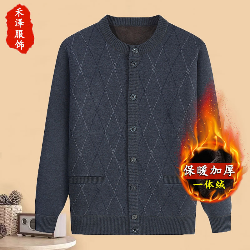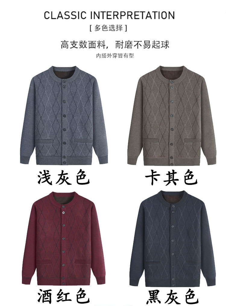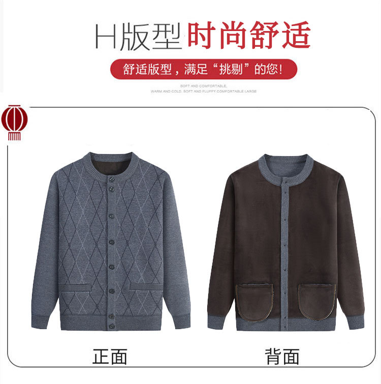중년 및 노인 남성 아버지의 가을 및 겨울 의류 두꺼운 벨벳 카디건 스웨터 니트웨어 노인 남성 코트 따뜻한 옷