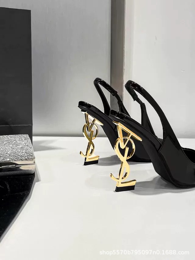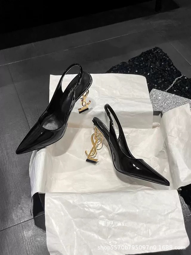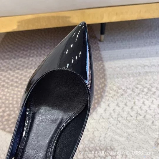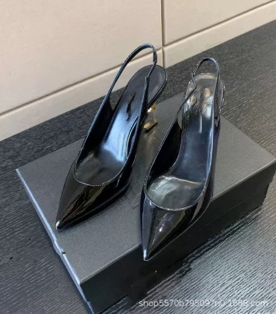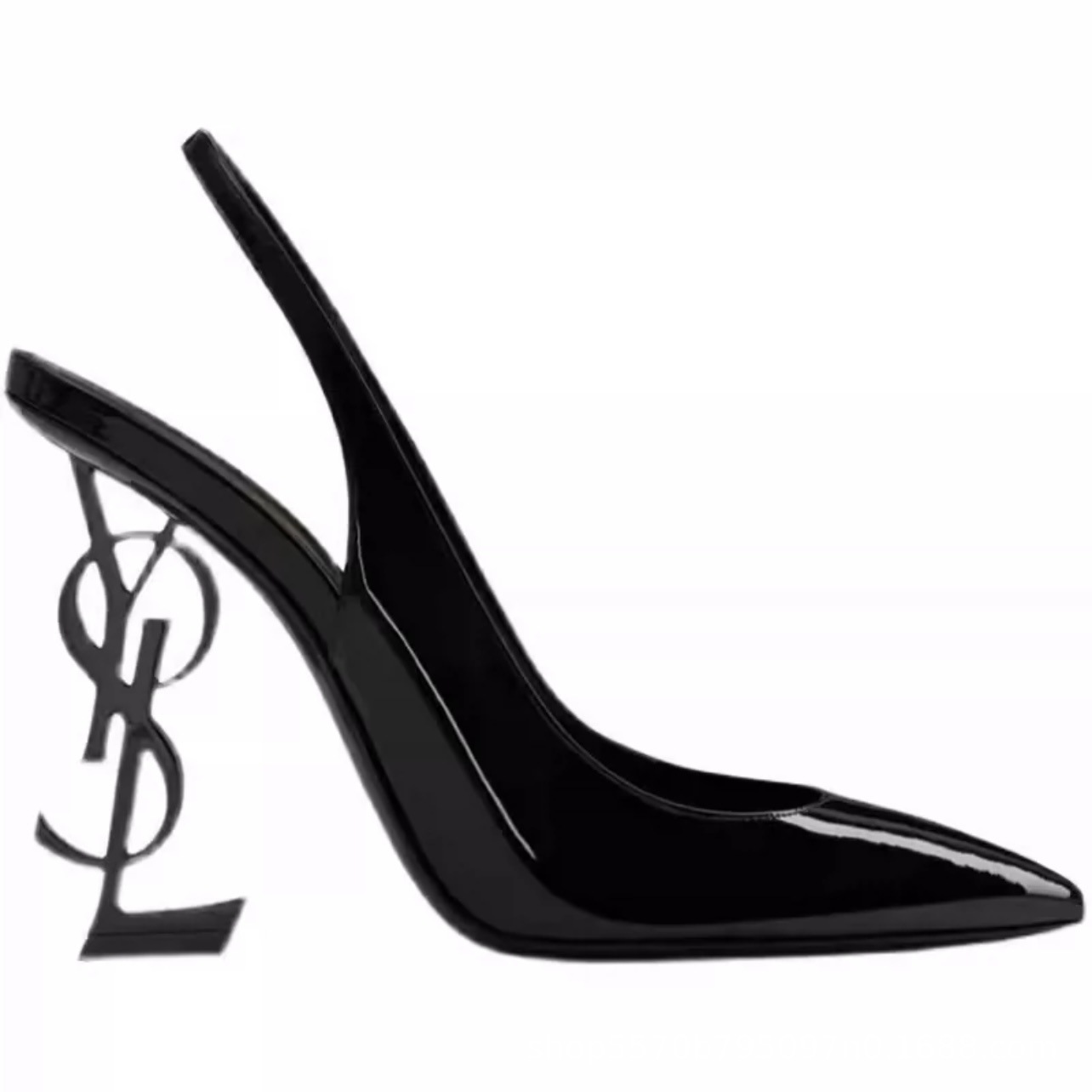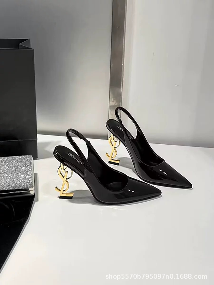 양수림 하이힐 여성용 2025 가을 신상품 페이턴트 가죽 메탈 레터 힐 백토우 오픈백 슈즈 연회용 신발스토어 가기