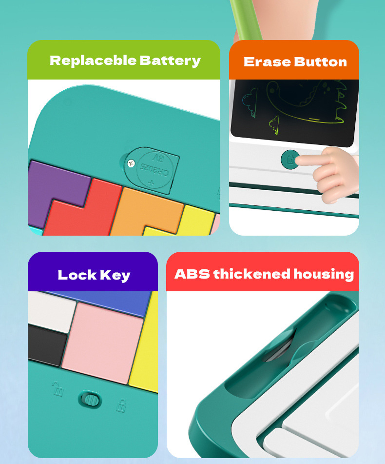 产品包含:画板*1,英文逻辑思卡片*20PCS;滑块*28PCS;俄罗斯方块*36PCS;说明书*1