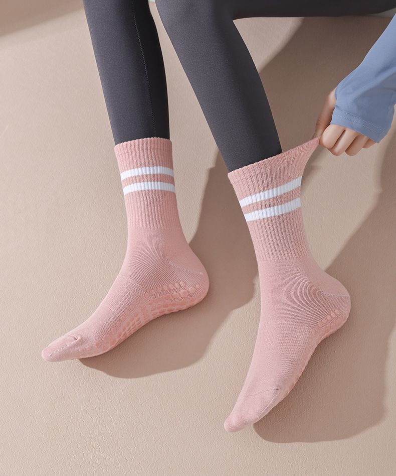 요가 양말 미끄럼 방지 전문 여성 필라테스 스포츠 양말 피트니스 러닝 줄넘기 높은 마이크로 압력 미끄럼 방지 롱 튜브