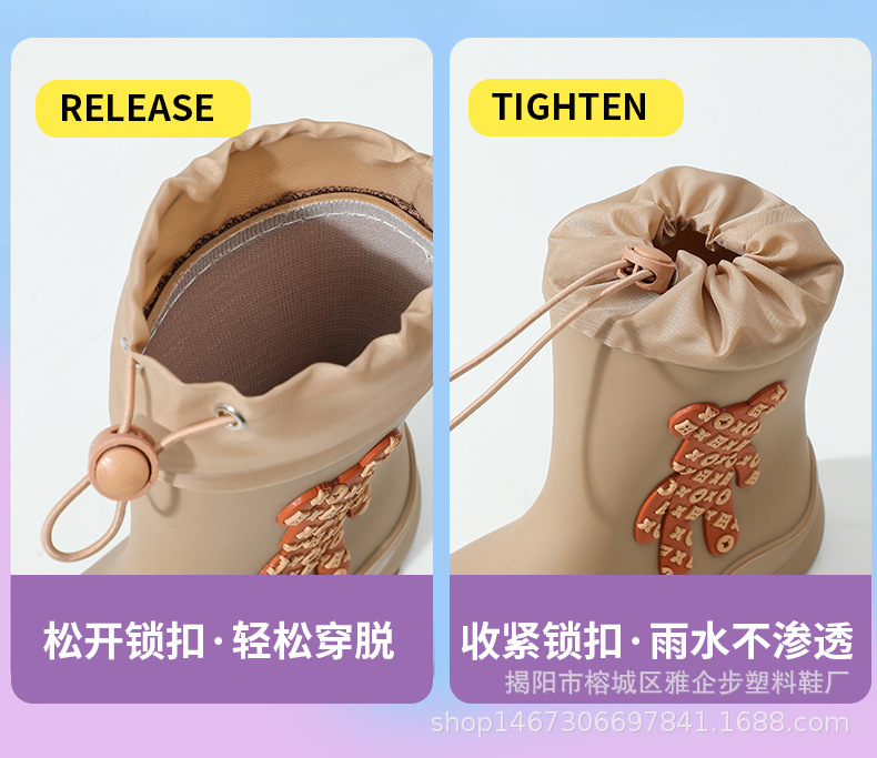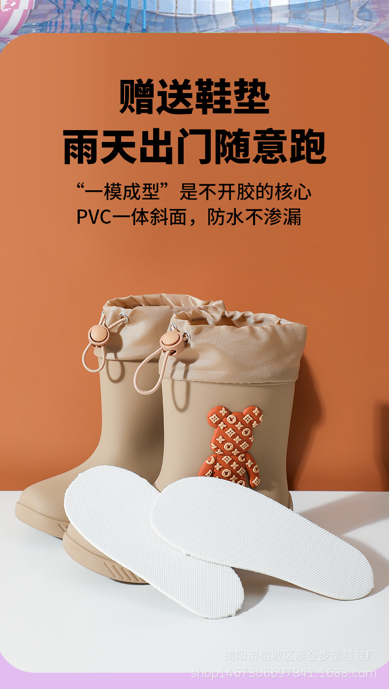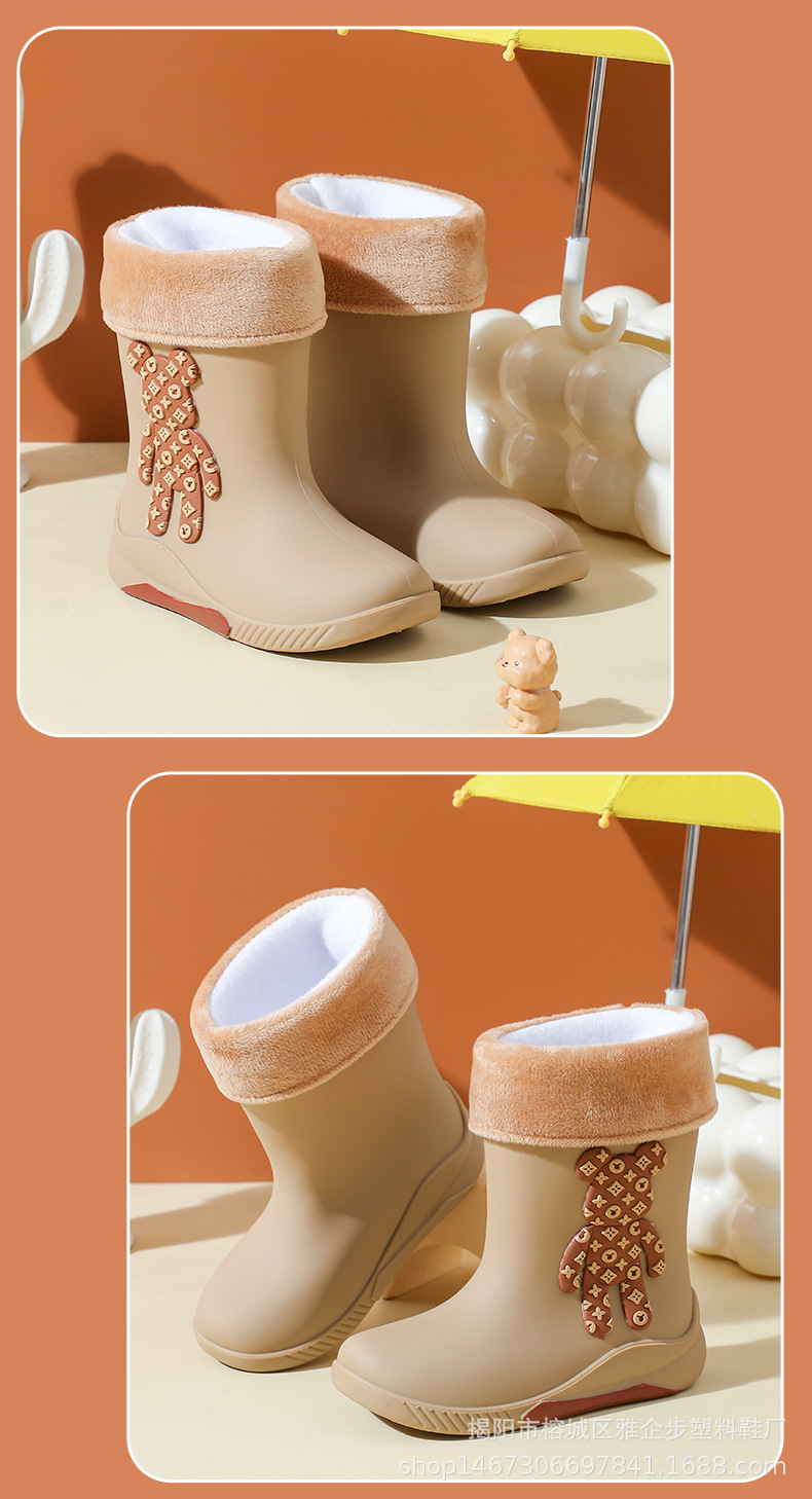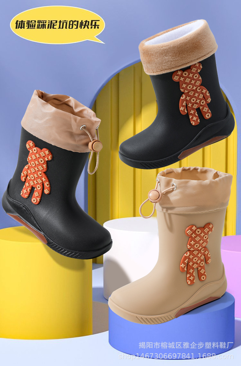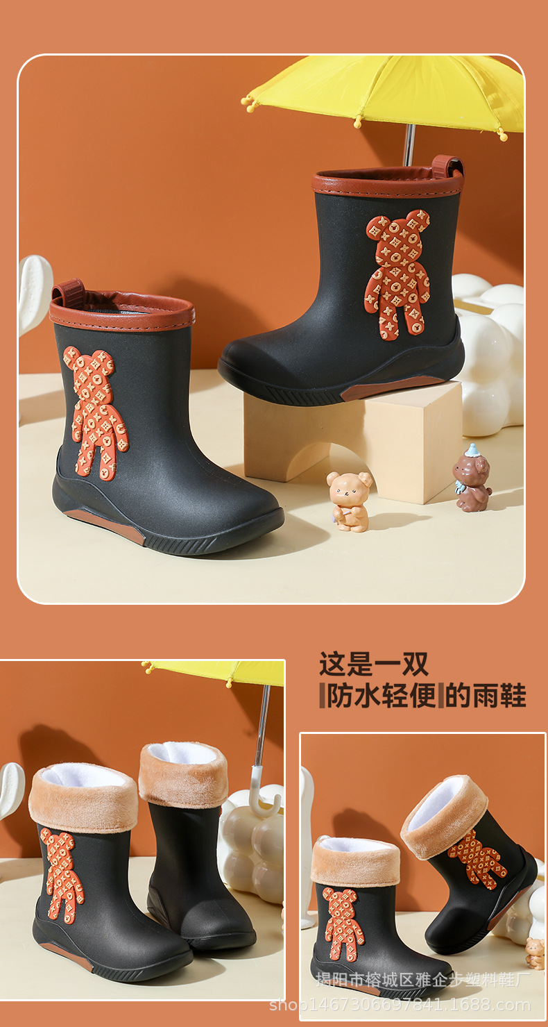귀여운 어린이 장화 미끄럼 방지 소년 소녀 장화 기모 만화 곰 학생 소년 어린이 물 신발 고무 신발