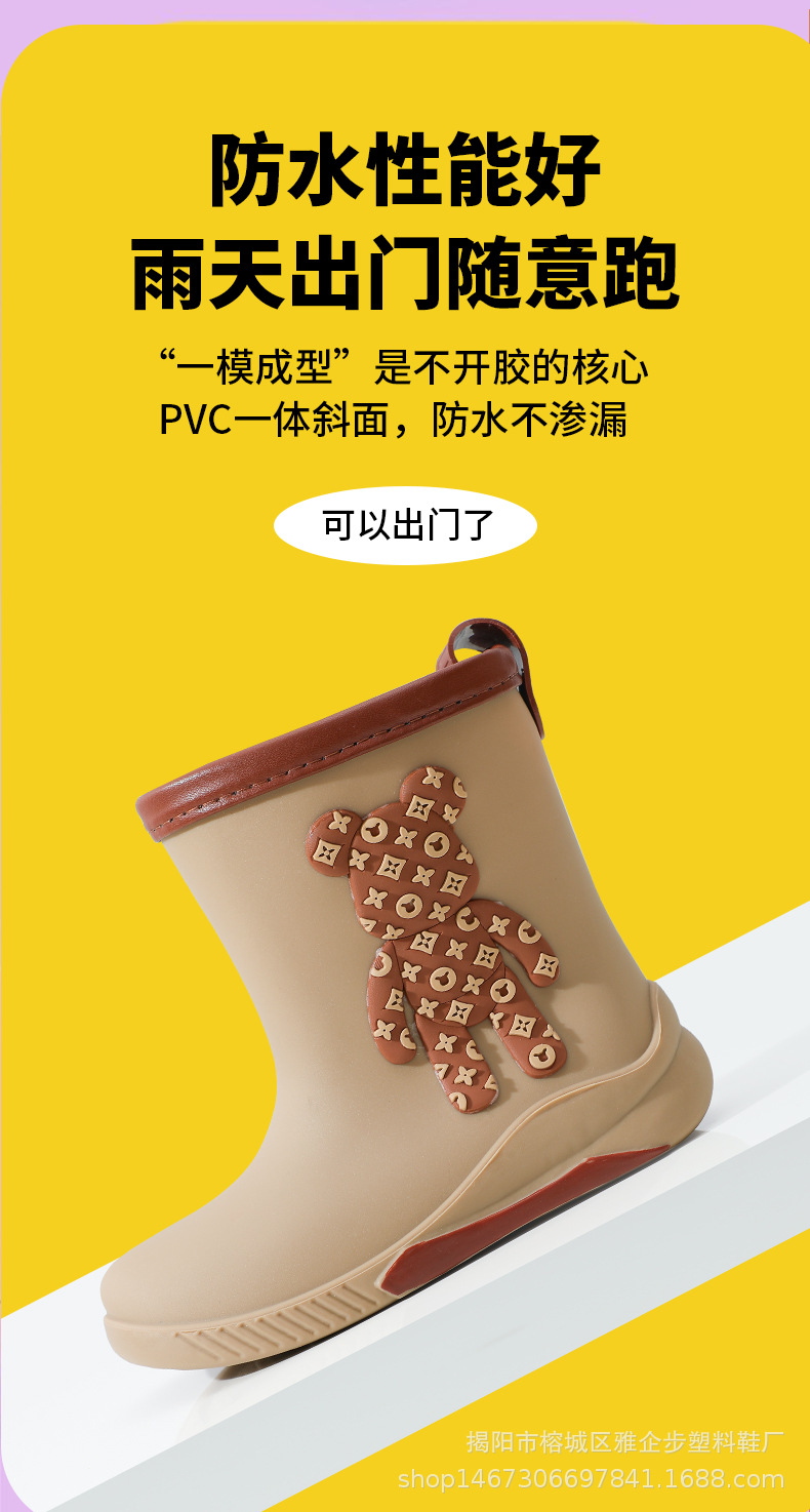 귀여운 어린이 장화 미끄럼 방지 소년 소녀 장화 기모 만화 곰 학생 소년 어린이 물 신발 고무 신발스토어 가기