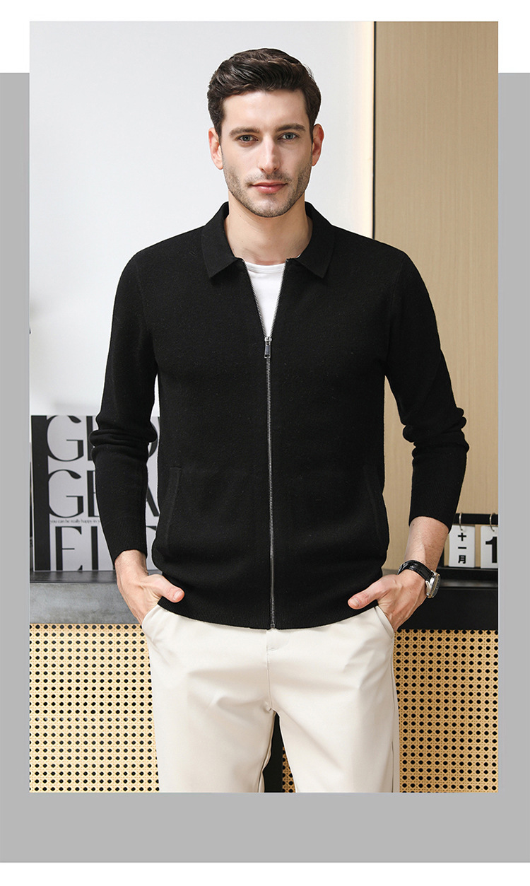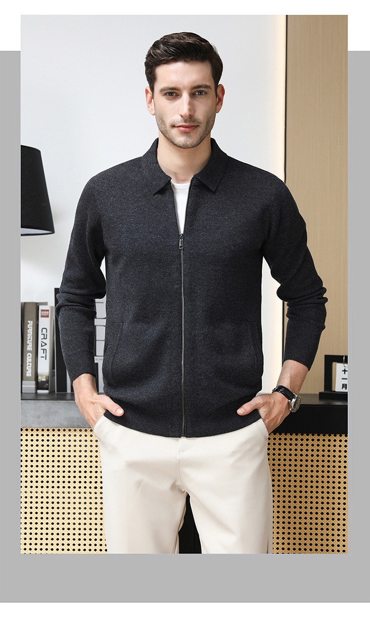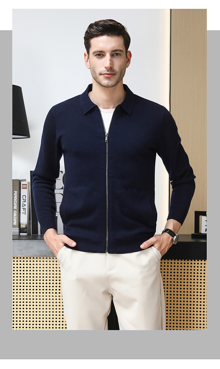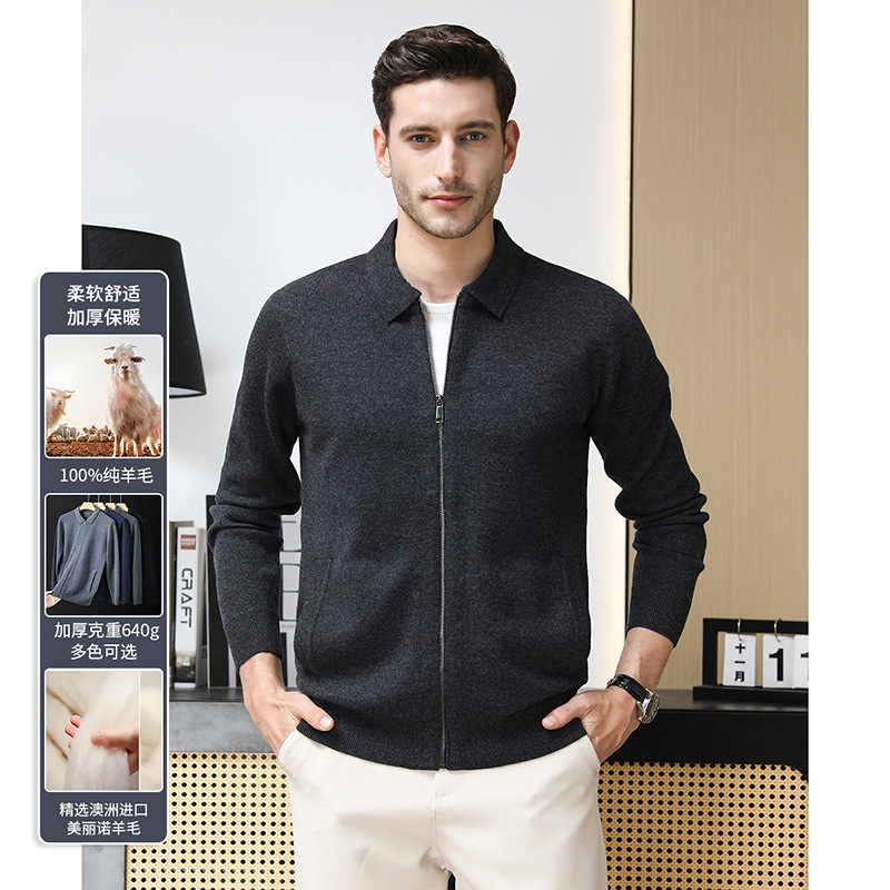 4 가닥 80 호주 슈퍼 핀 메리노 100 울 입술 지퍼 두꺼운 양모 카디건 겨울 따뜻한 중년