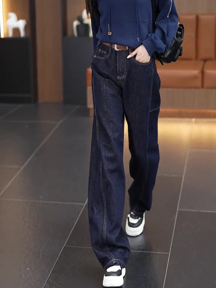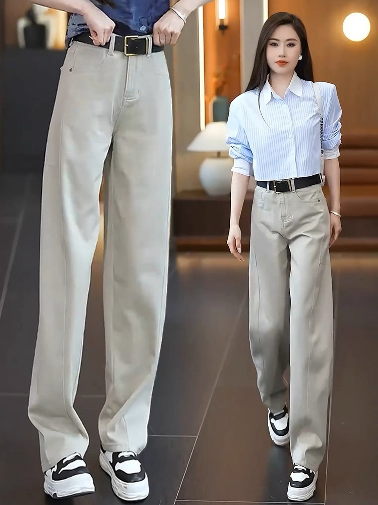 아메리칸 레트로 청바지 여성의 봄과 가을 새로운 바지 높은 허리 슬리밍 좁은 넓은 다리 바지 느슨한 캐주얼 스트레이트 바지