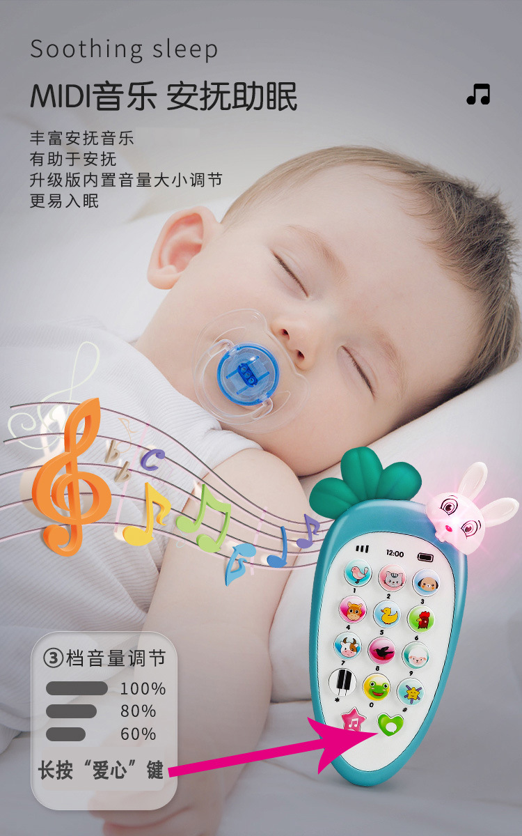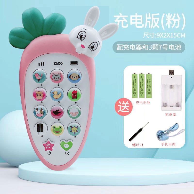 시뮬레이션 어린이 음악 전화 장난감 아기 계몽 충전식 아기 조기 교육 01-3 년 된 프레스 만화 휴대 전화