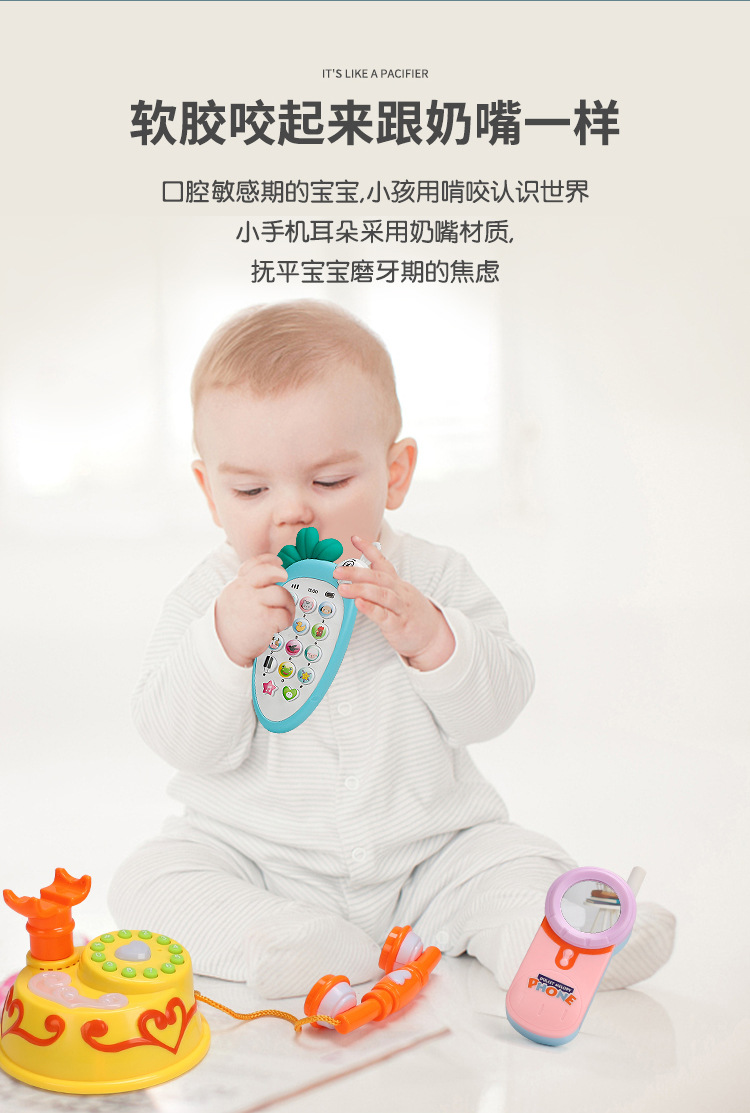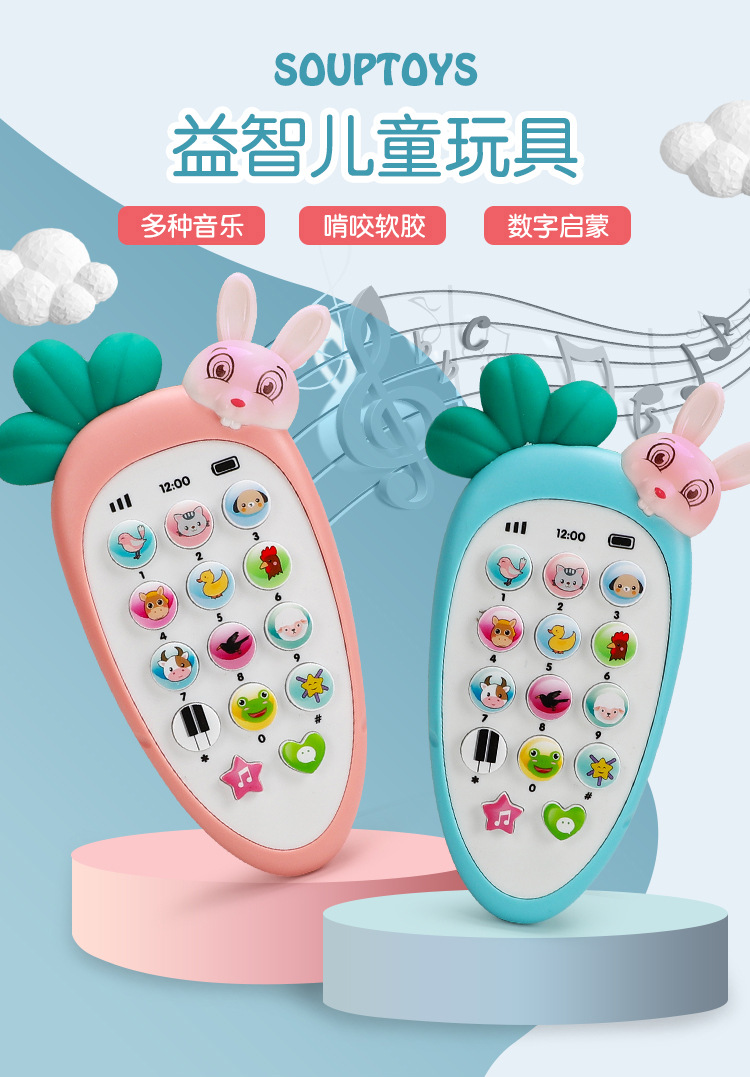 시뮬레이션 어린이 음악 전화 장난감 아기 계몽 충전식 아기 조기 교육 01-3 년 된 프레스 만화 휴대 전화스토어 가기