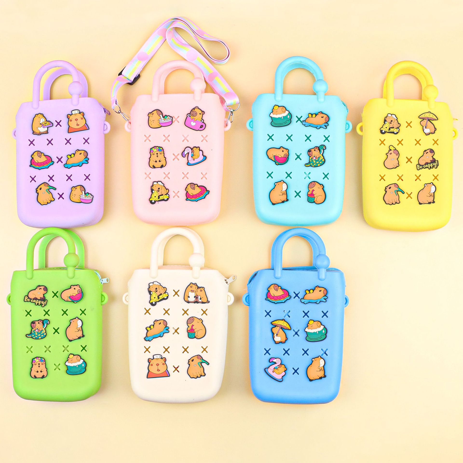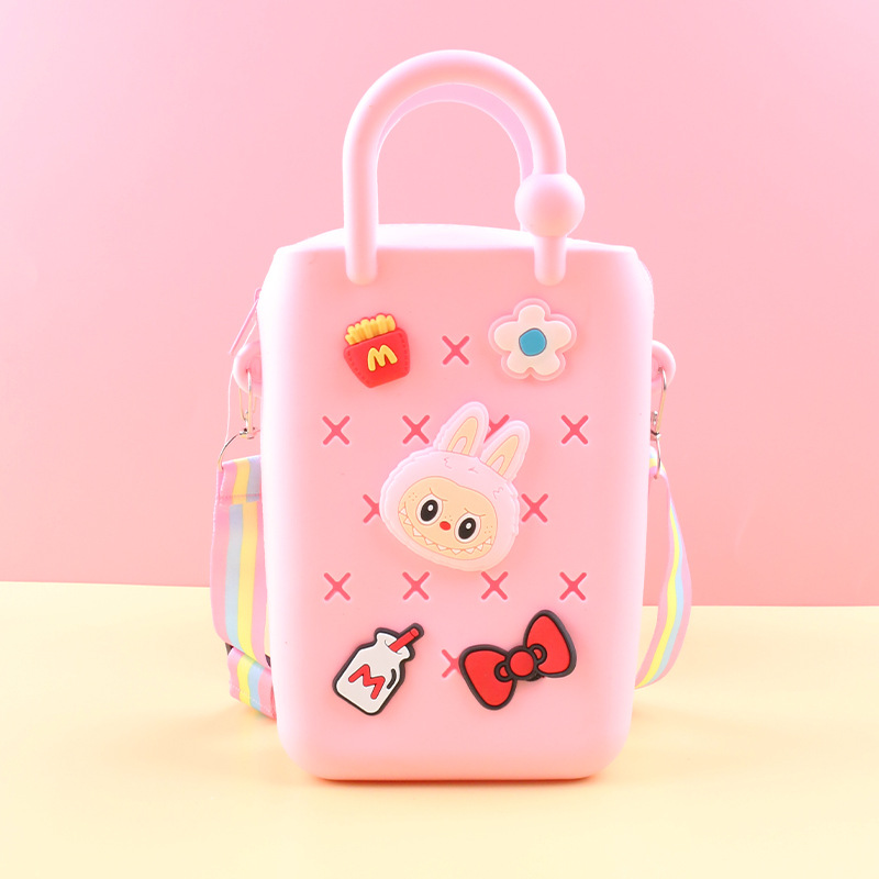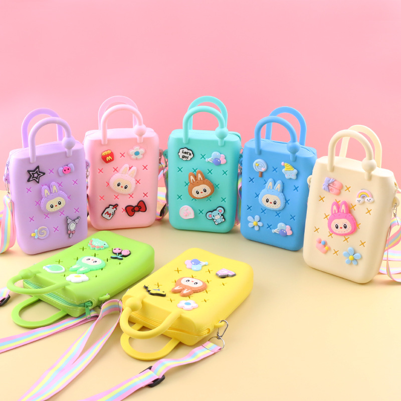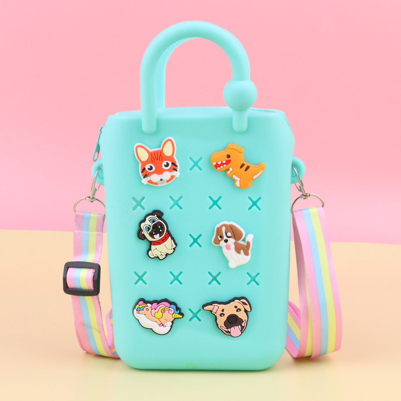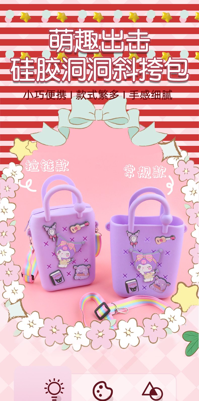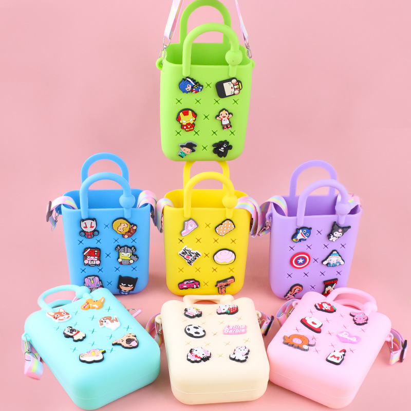 DIY 구멍이 있는 실리콘 가방, 휴대용 비치백, 지퍼가 달린 어린이용 숄더백/크로스백, 지갑, 만화 캐릭터 휴대폰 수납 가방 (여성용)
