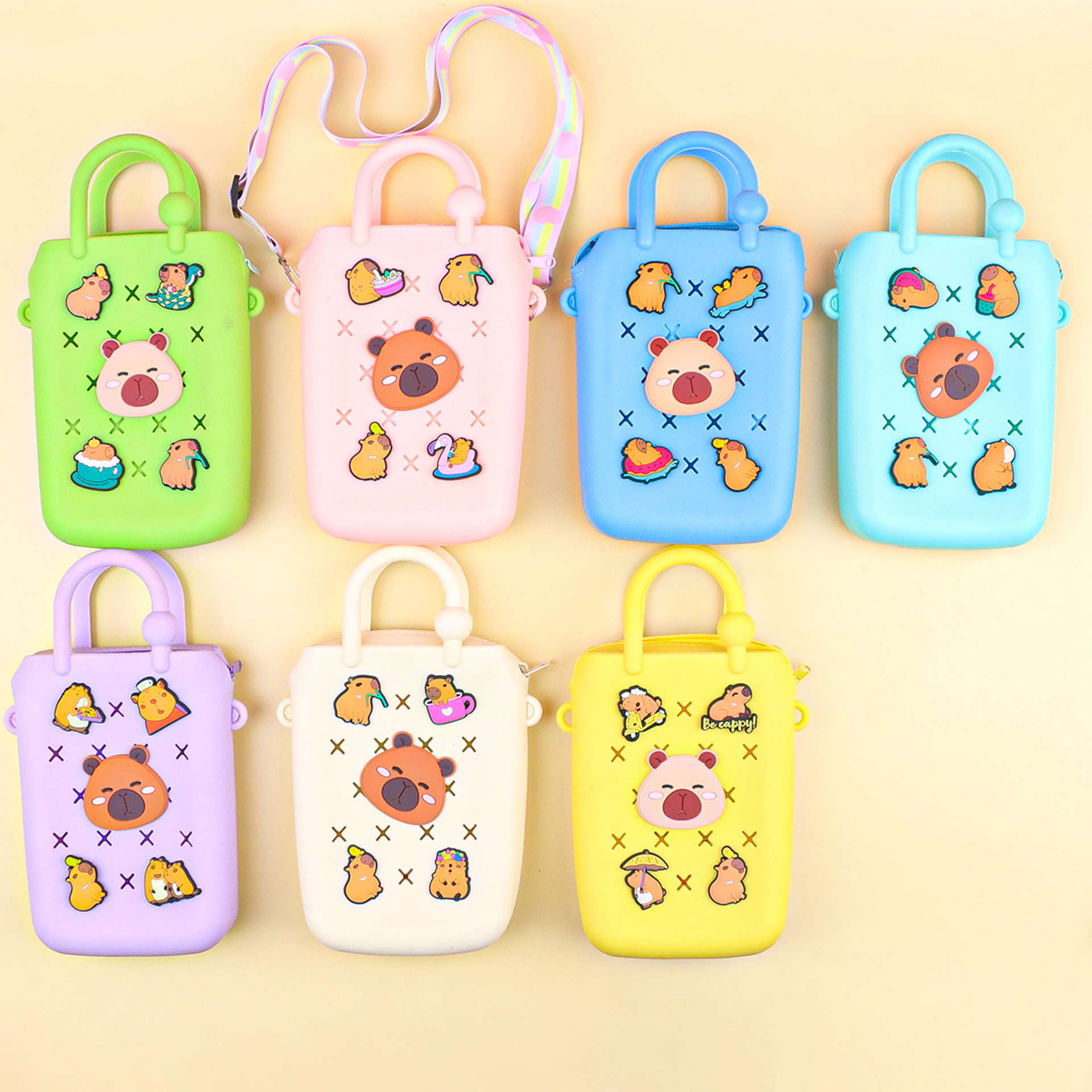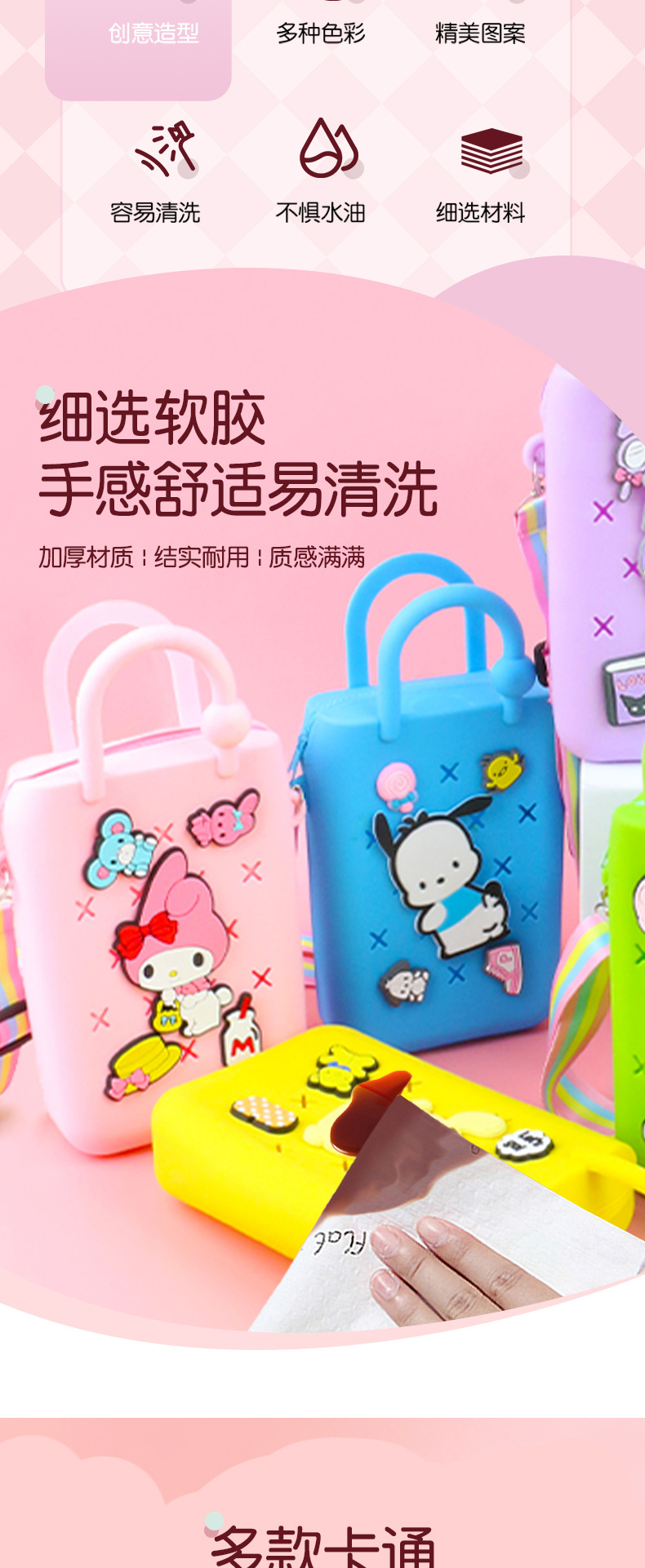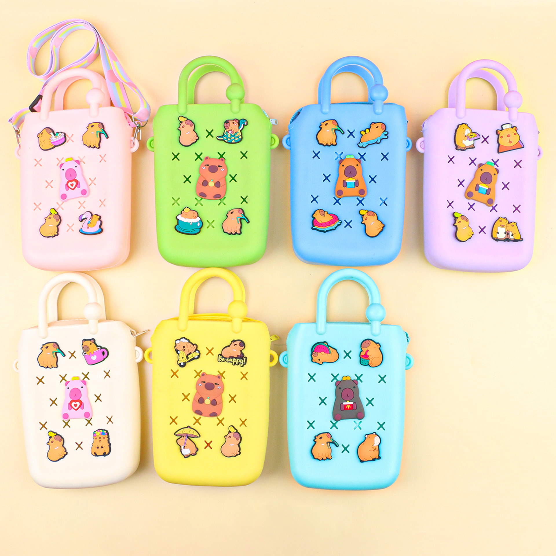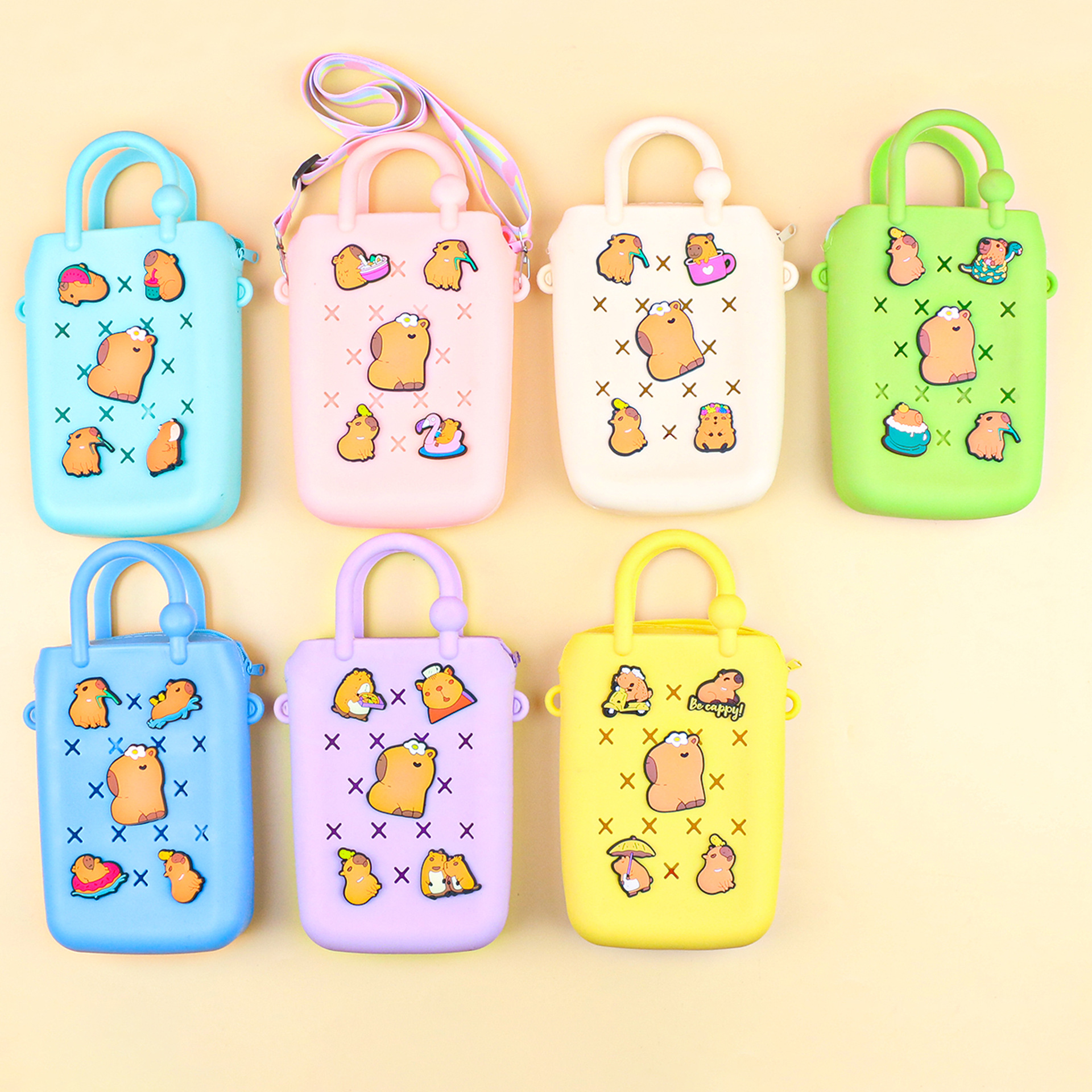 DIY 구멍이 있는 실리콘 가방, 휴대용 비치백, 지퍼가 달린 어린이용 숄더백/크로스백, 지갑, 만화 캐릭터 휴대폰 수납 가방 (여성용)