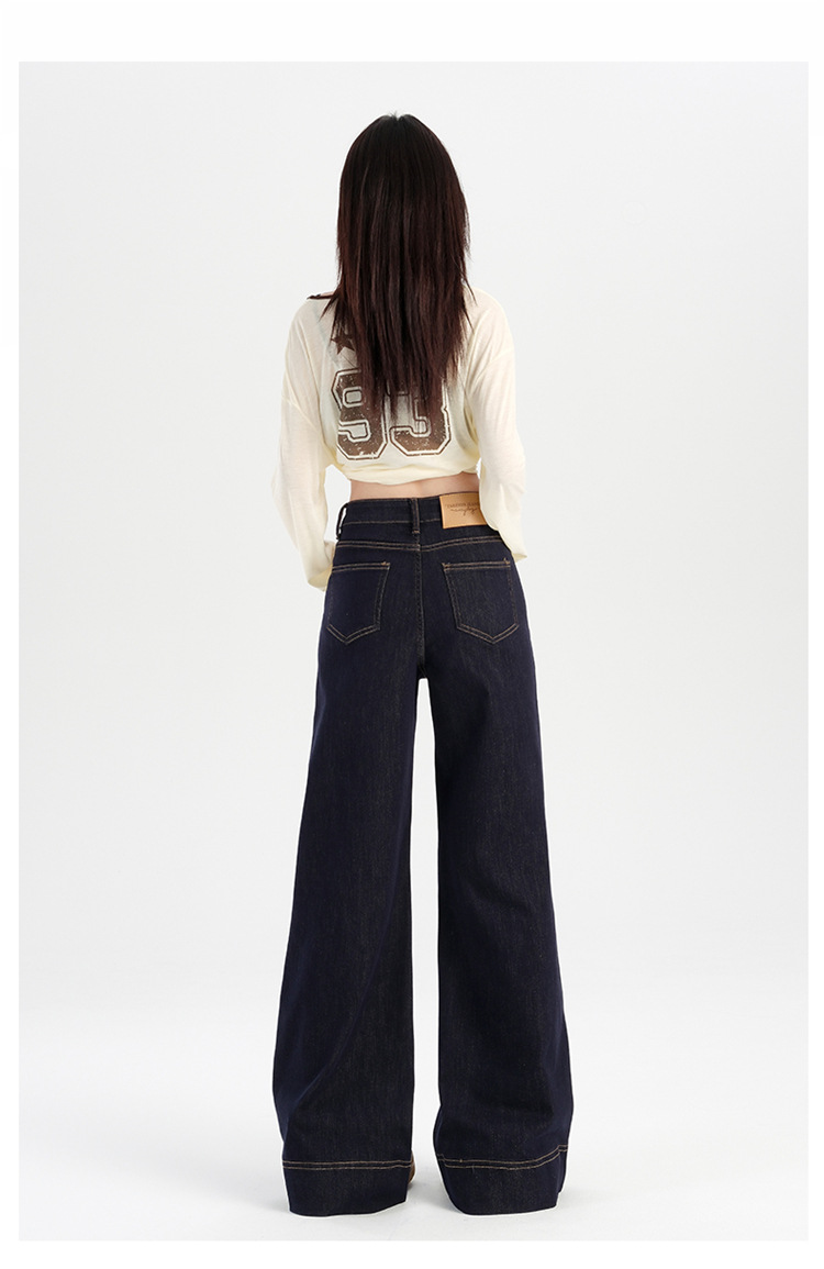 데님 블루 청바지 여성용 2025 가을 겨울 신상품 플러스 벨벳 두꺼운 루즈핏 와이드 레그 스몰 사이즈 스트레이트 팬츠