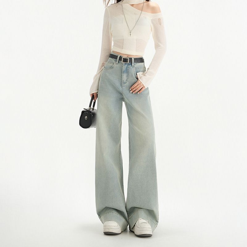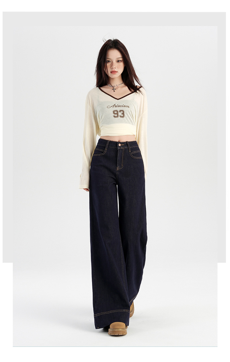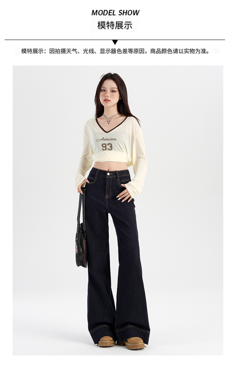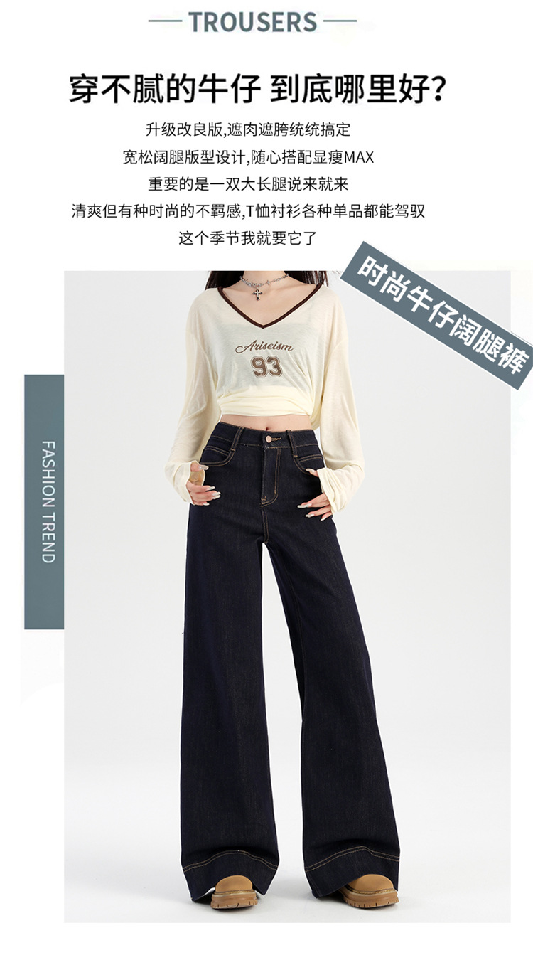 데님 블루 청바지 여성용 2025 가을 겨울 신상품 플러스 벨벳 두꺼운 루즈핏 와이드 레그 스몰 사이즈 스트레이트 팬츠스토어 가기