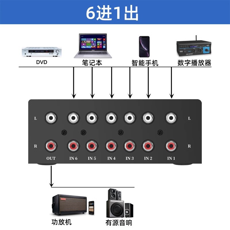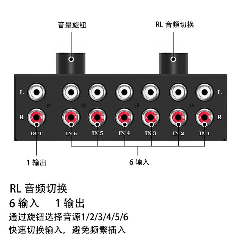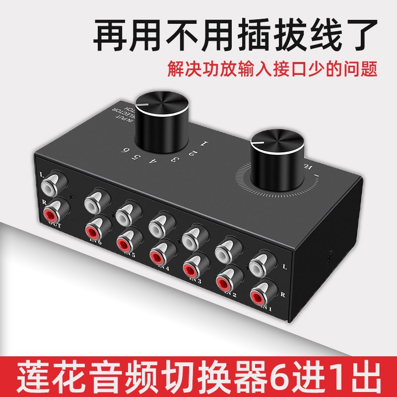 RCA 레드/화이트 로터스 헤드 오디오 스위처 6입력 1출력 무손실 고음질 스테레오 컨버터 멀티 인터페이스스토어 가기