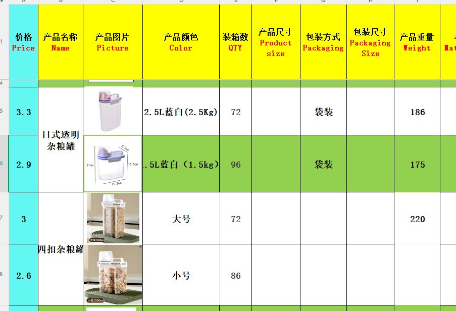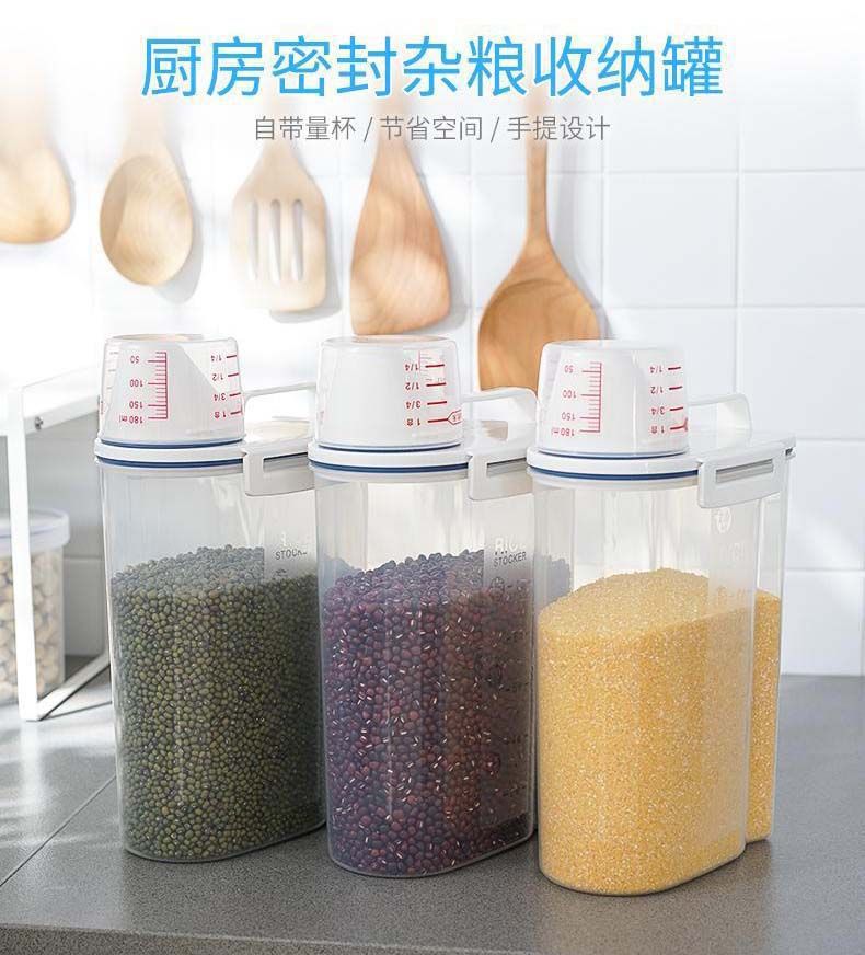2.5L 곡물 항아리 측정 컵 저장 항아리 곡물 저장 상자 콩 저장 항아리 주방 저장 항아리