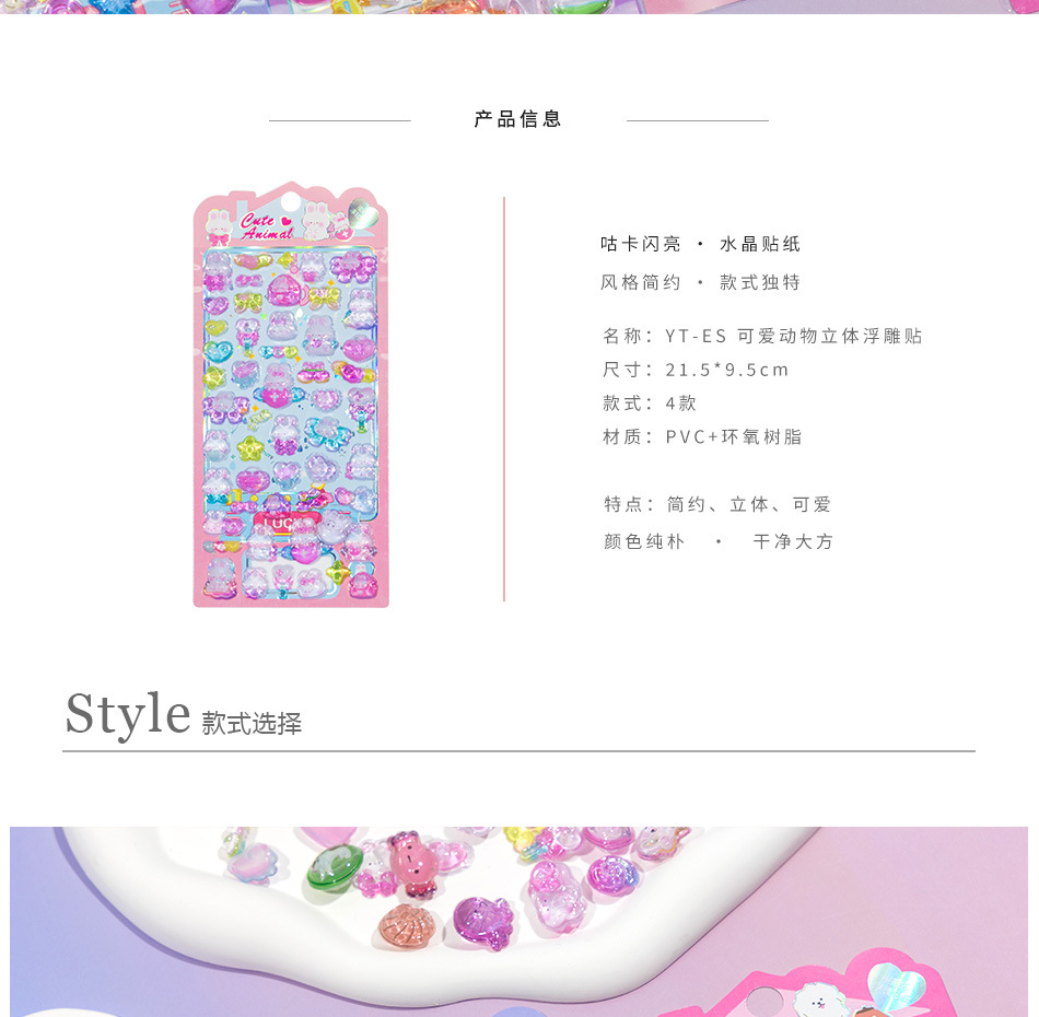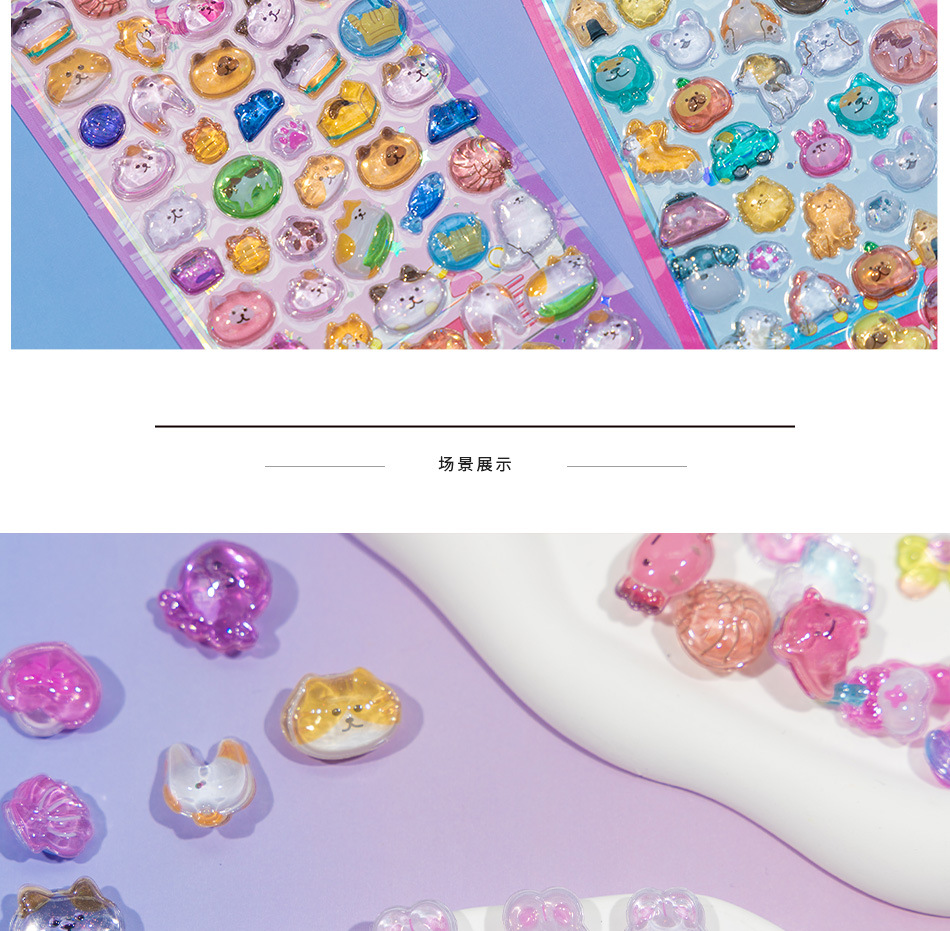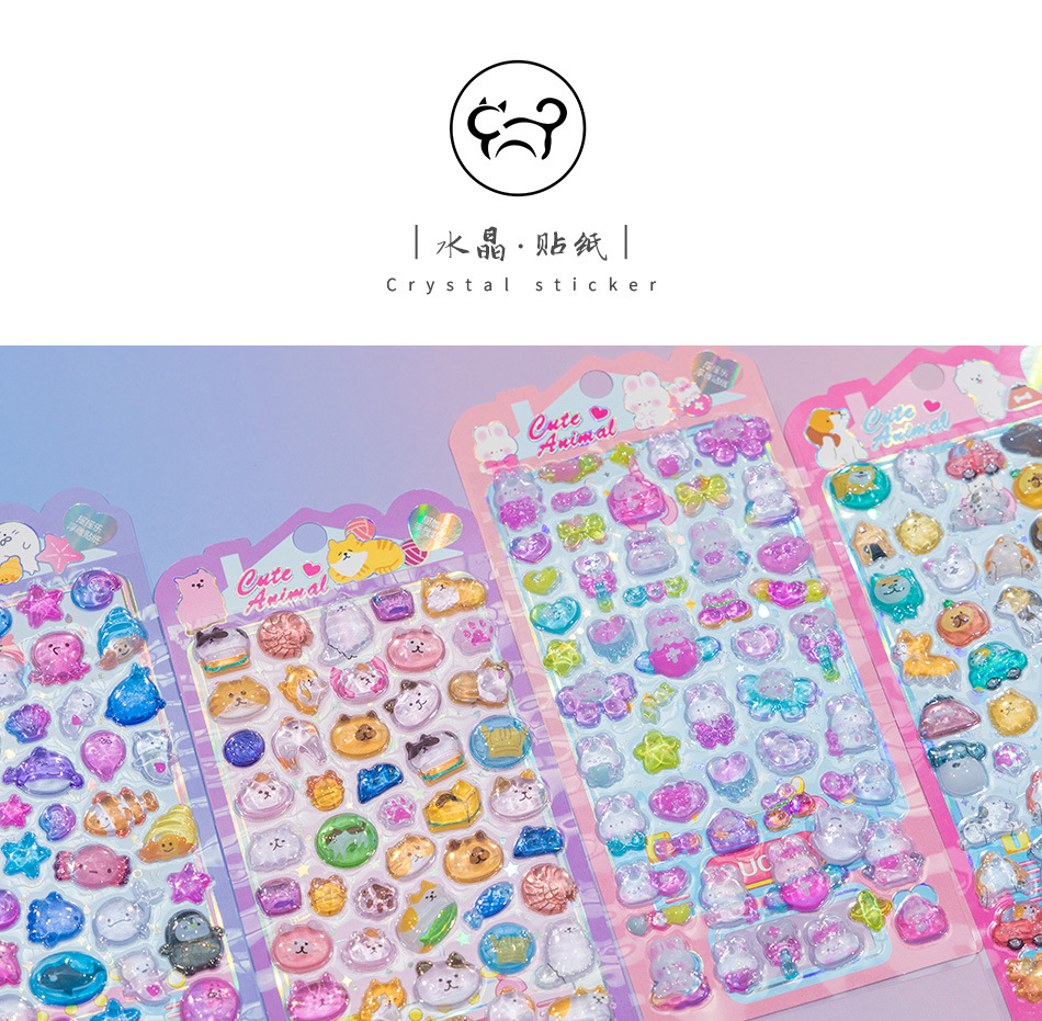 3D 크리스탈 양각 귀여운 동물 소녀 아기 아크릴 재미있는 다이아몬드 스티커 어린이 구 카드 스티커스토어 가기