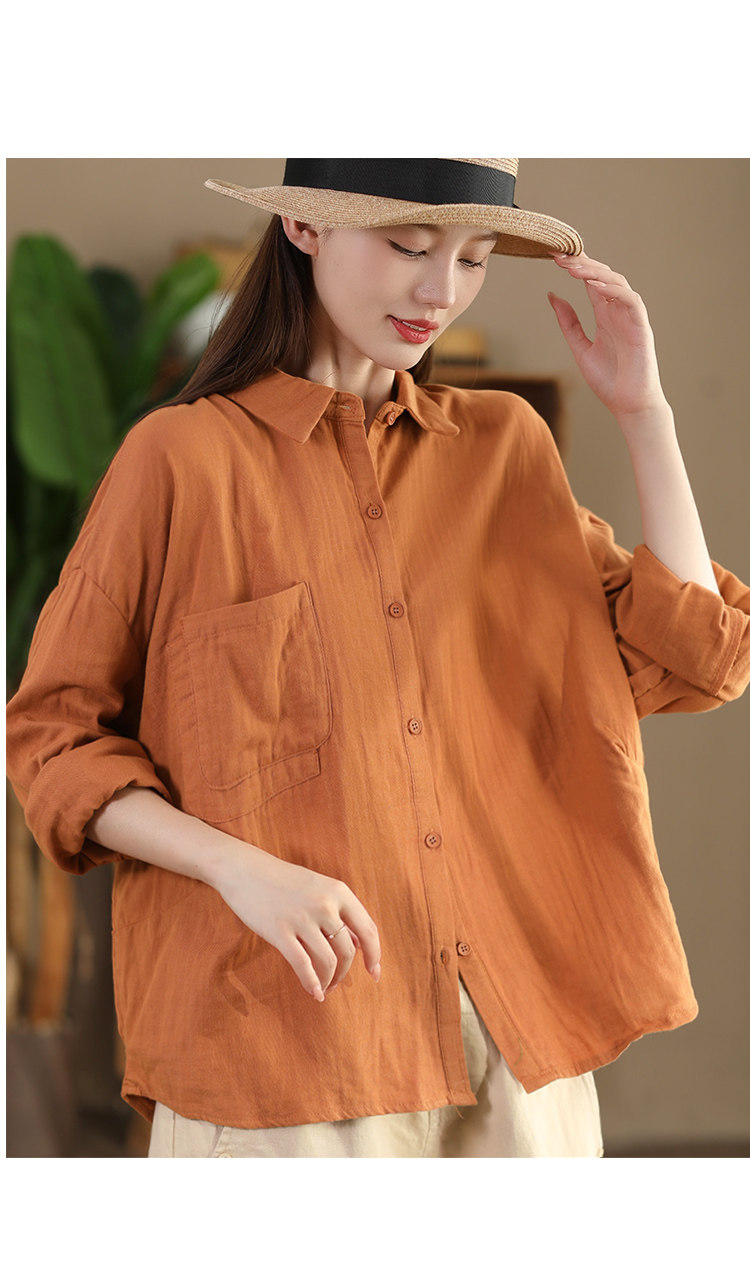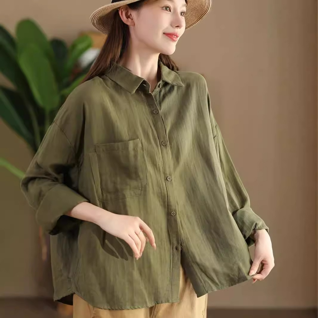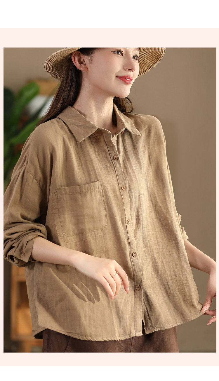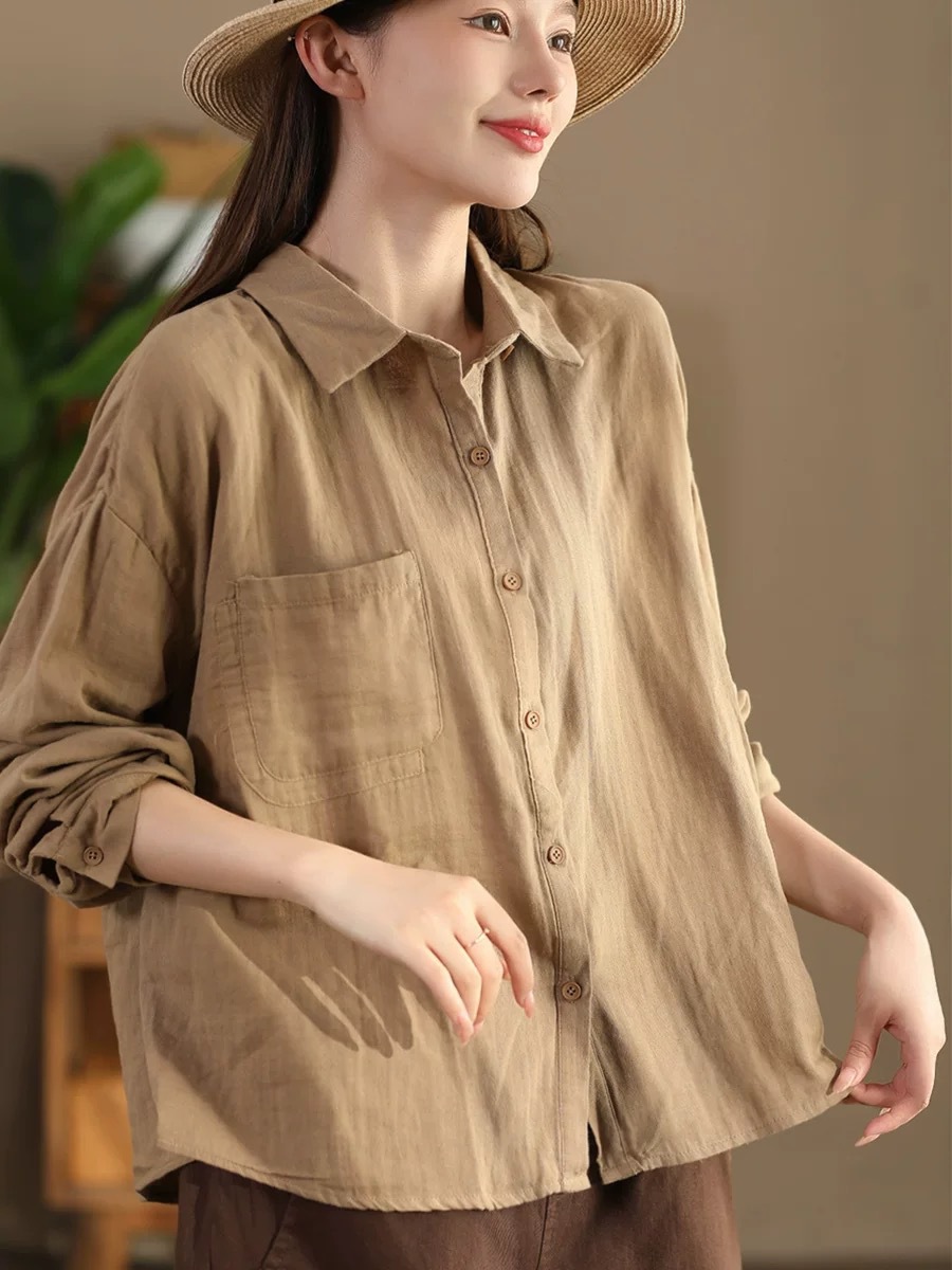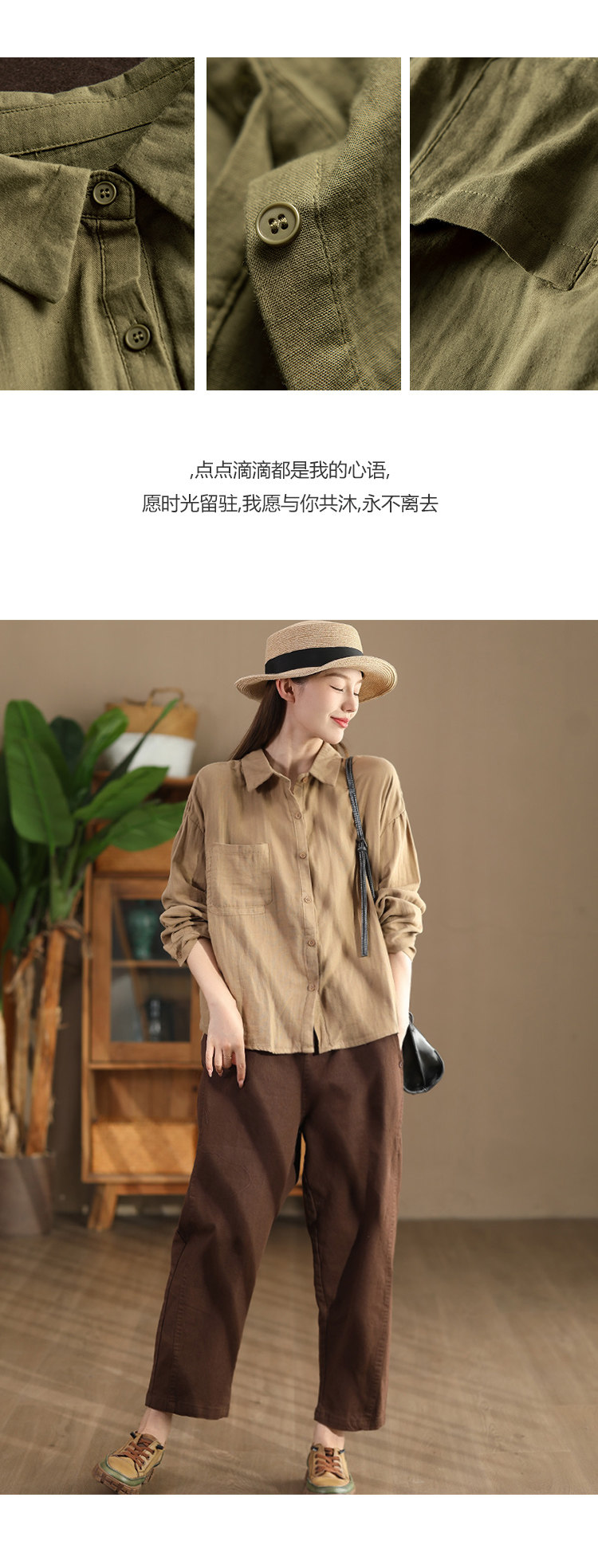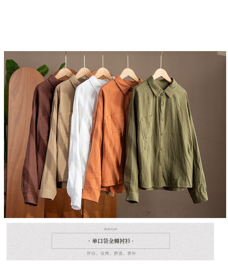 2024 가을 빈티지 코튼 셔츠 여성의 우아한 옷깃 긴 소매 셔츠 싱글 브레스트 카디건 외부스토어 가기