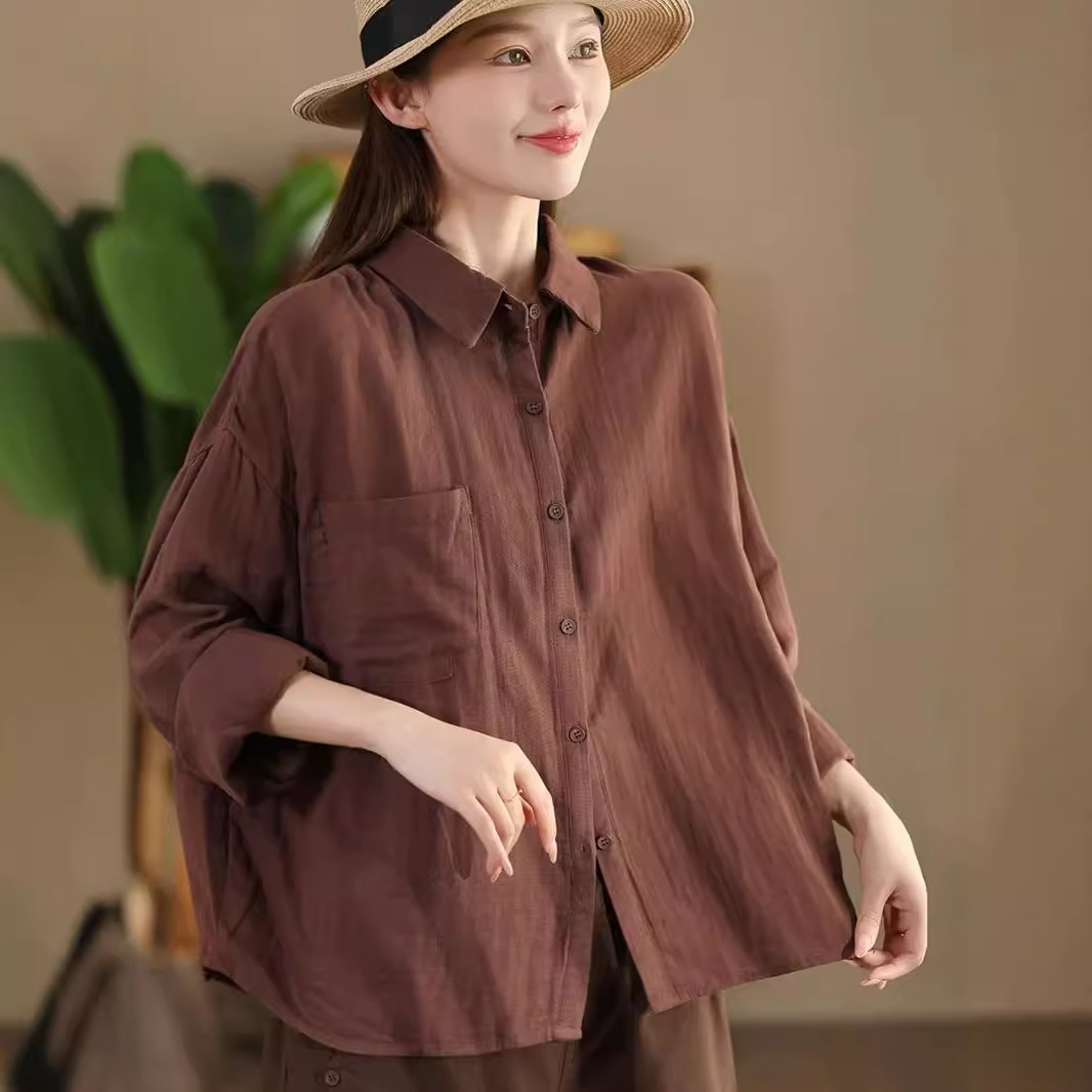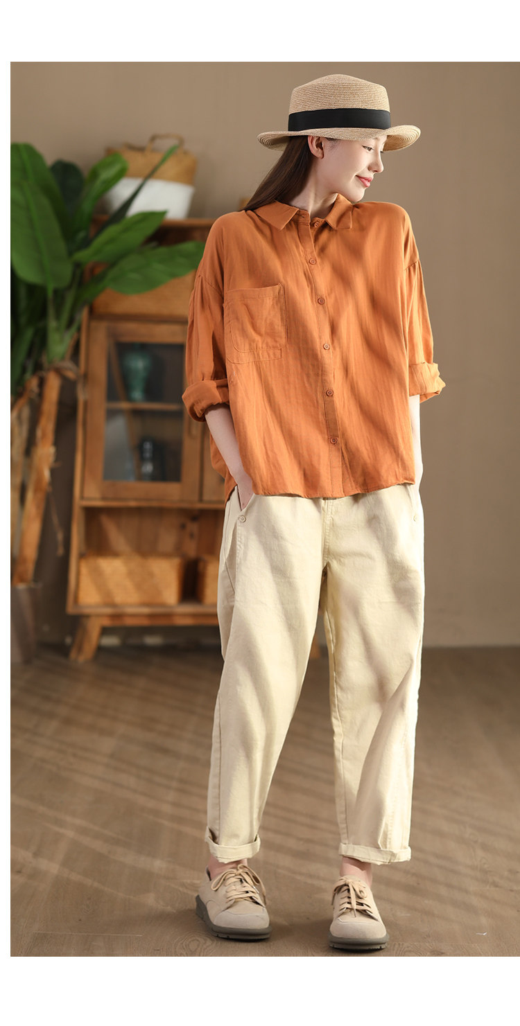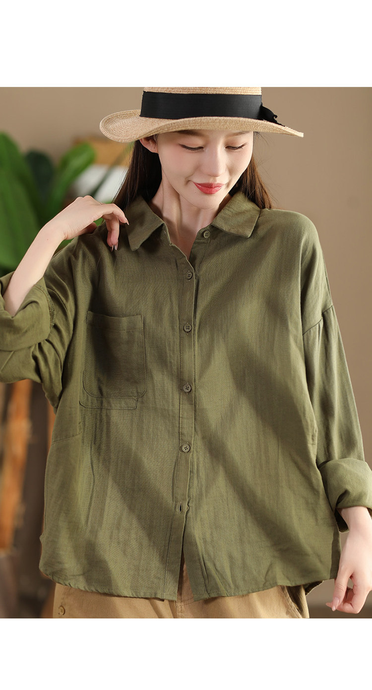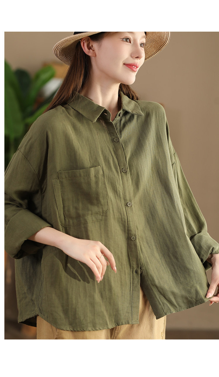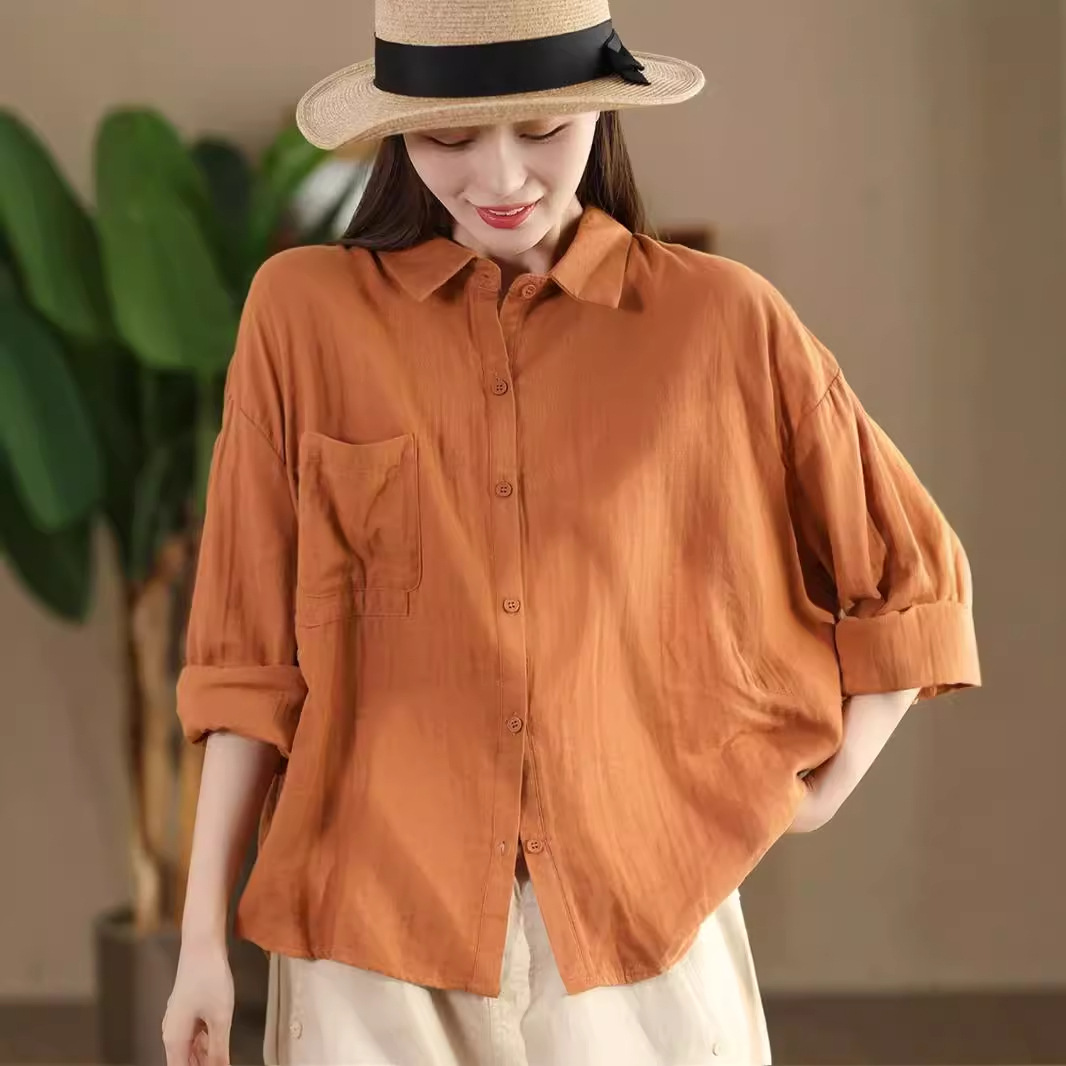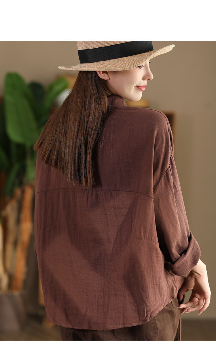 2024 가을 빈티지 코튼 셔츠 여성의 우아한 옷깃 긴 소매 셔츠 싱글 브레스트 카디건 외부스토어 가기