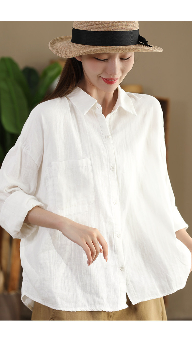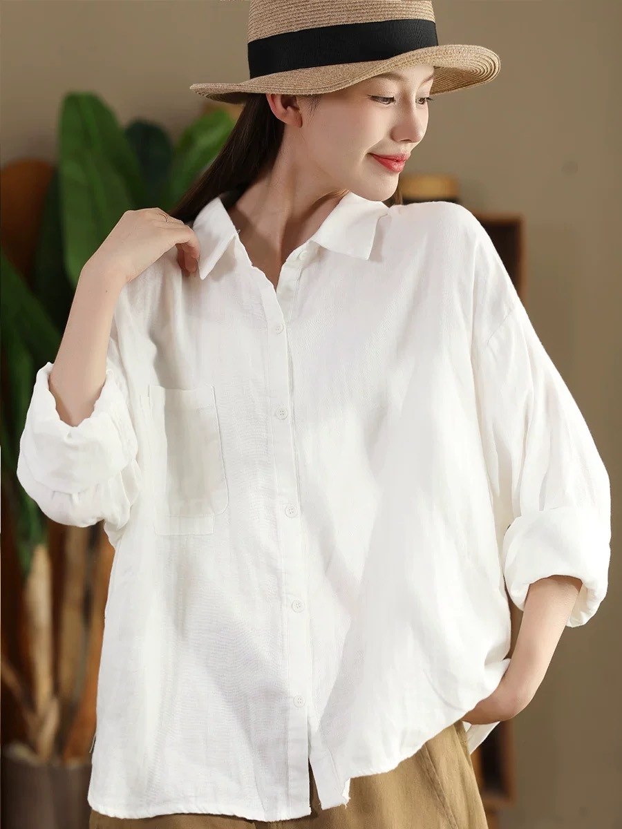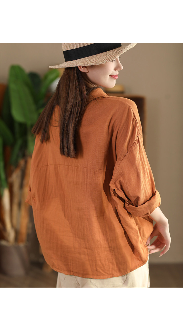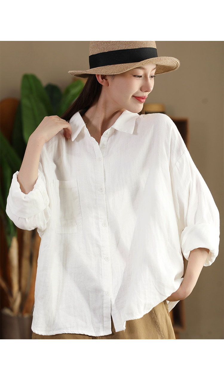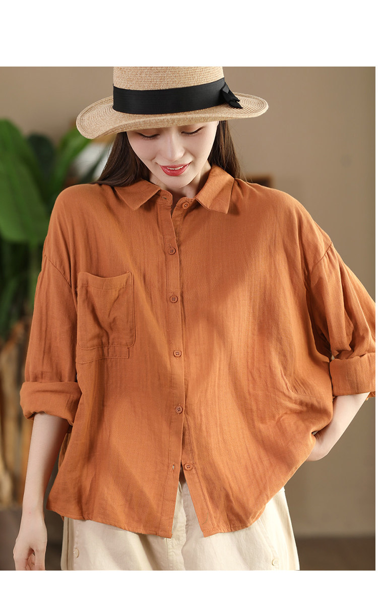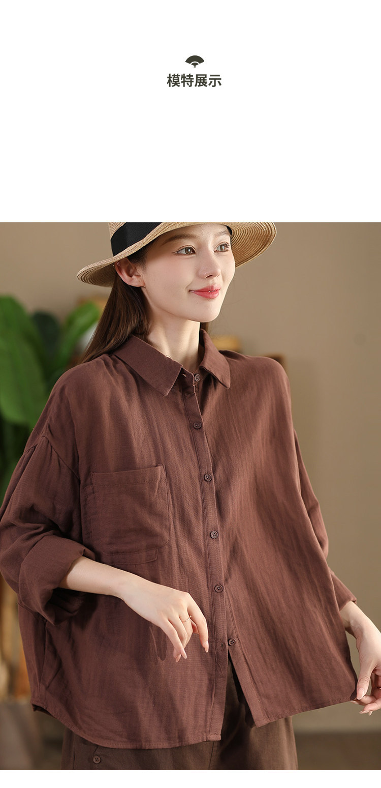 2024 가을 빈티지 코튼 셔츠 여성의 우아한 옷깃 긴 소매 셔츠 싱글 브레스트 카디건 외부스토어 가기