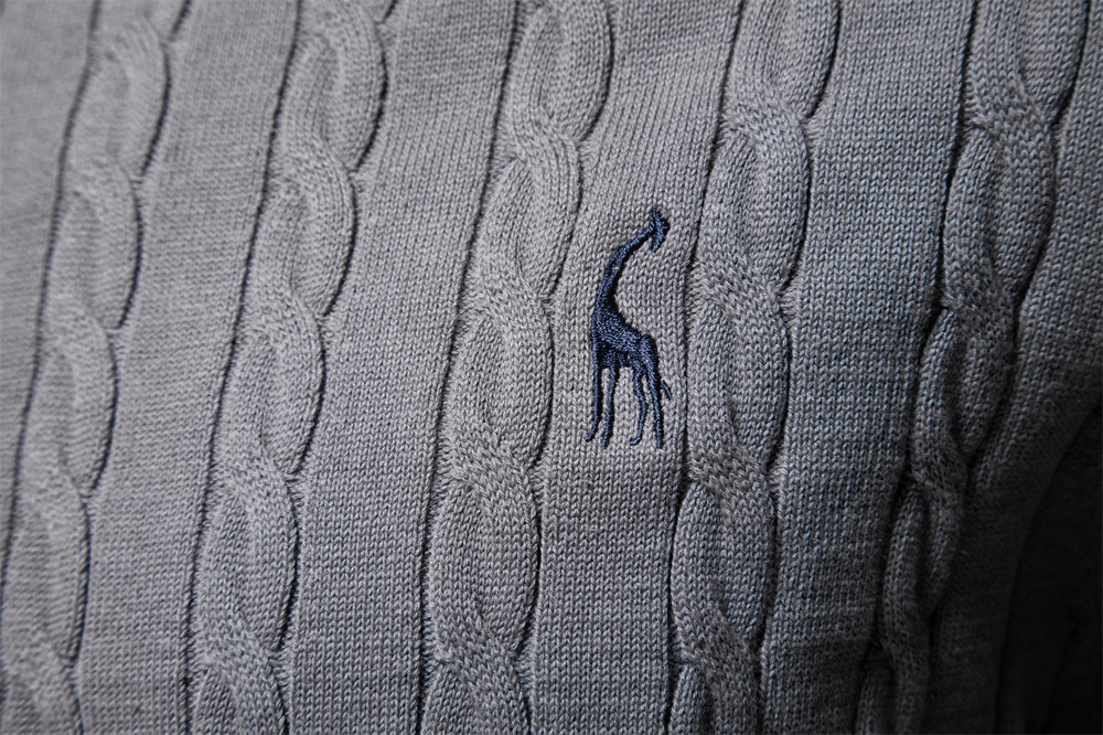 2024 가을과 겨울 새로운 국경 대외 무역 하이 퀄리티 남성용 스웨터 풀오버 새끼 사슴 자수 단색 스웨터