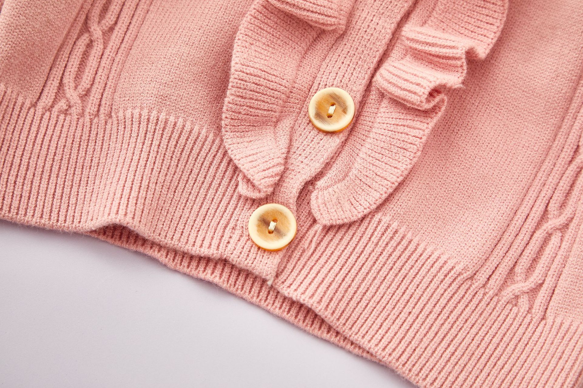 여자 스웨터 세트 2024 가을과 겨울 꽃 니트 카디건 니트 바지 어린이 공주 헤어 세트