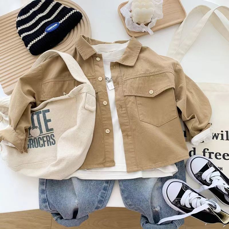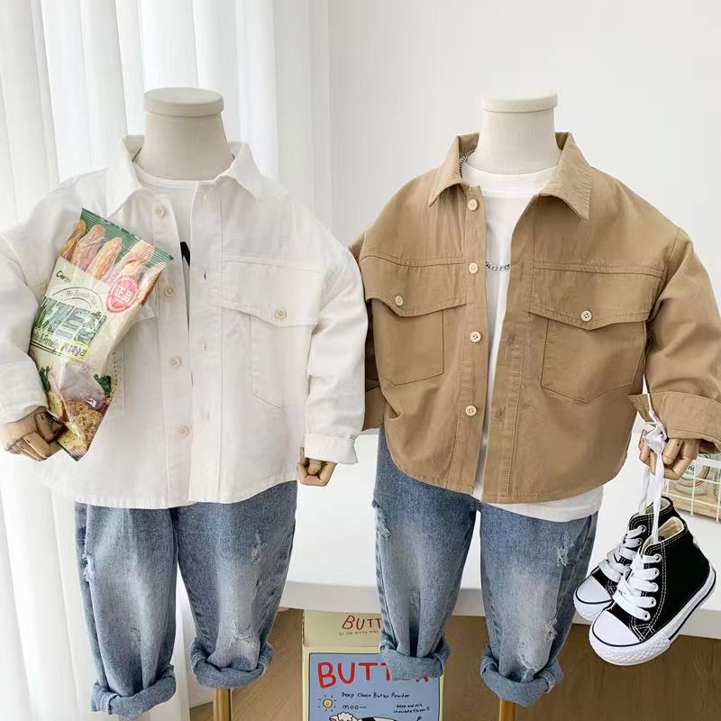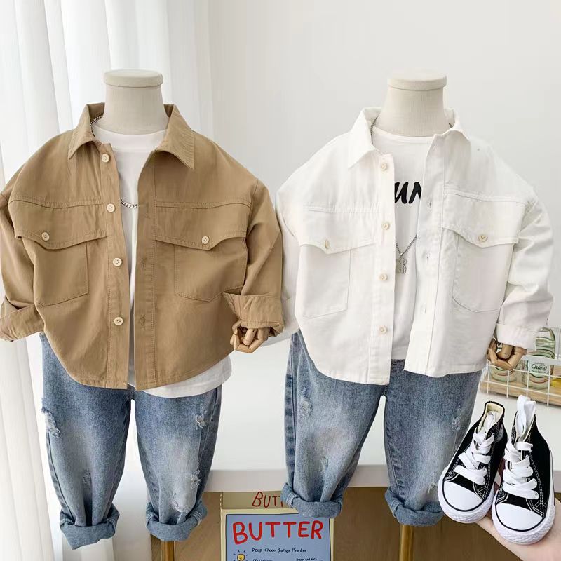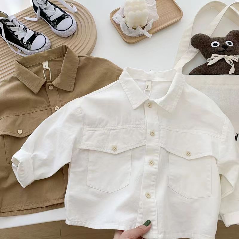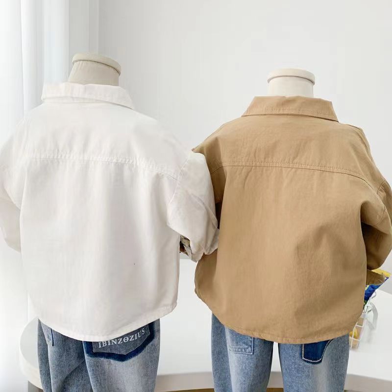 소년의 2024 새로운 스타일 어린이 봄과 가을 단색 셔츠 화이트 셔츠 어린이 올 매치 퓨어 코튼 캐주얼 탑