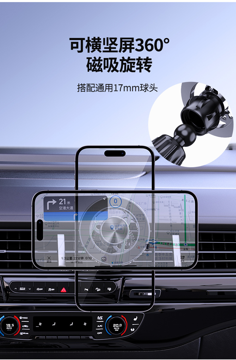 자동차 휴대 전화 홀더 자기 흡입 헤드 내비게이션 자동차 브래킷 액세서리 360 도 회전 브래킷