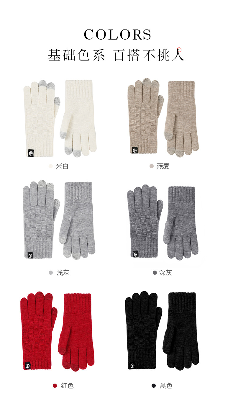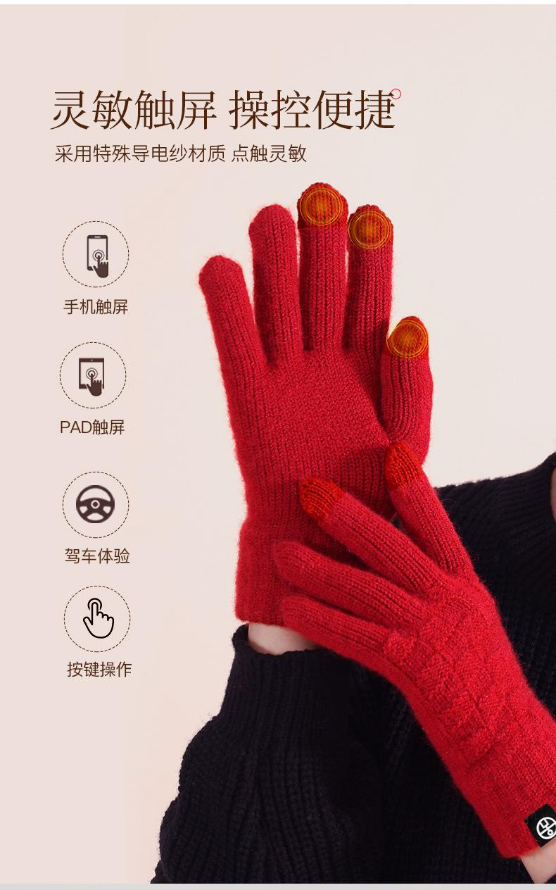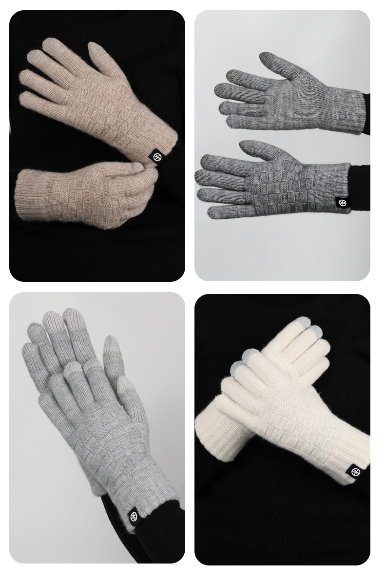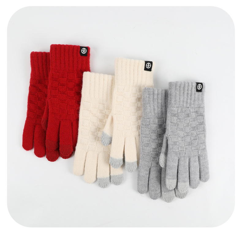 니트 장갑 겨울 체크 무늬 양모 장갑 따뜻한 방한 손가락 학생 쓰기 터치 스크린 장갑 사이클링스토어 가기