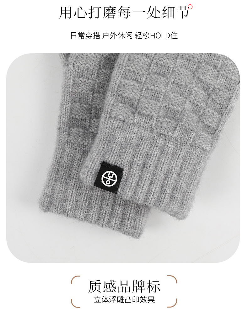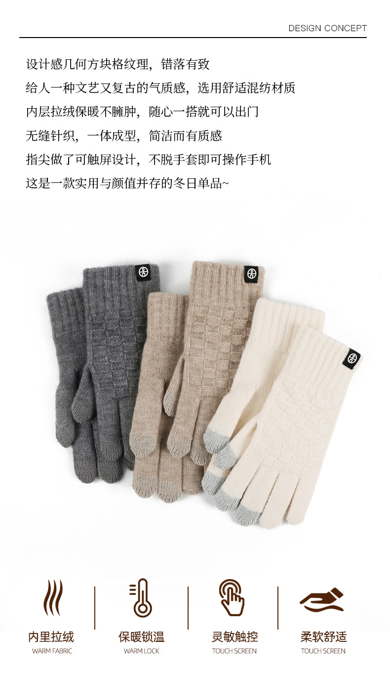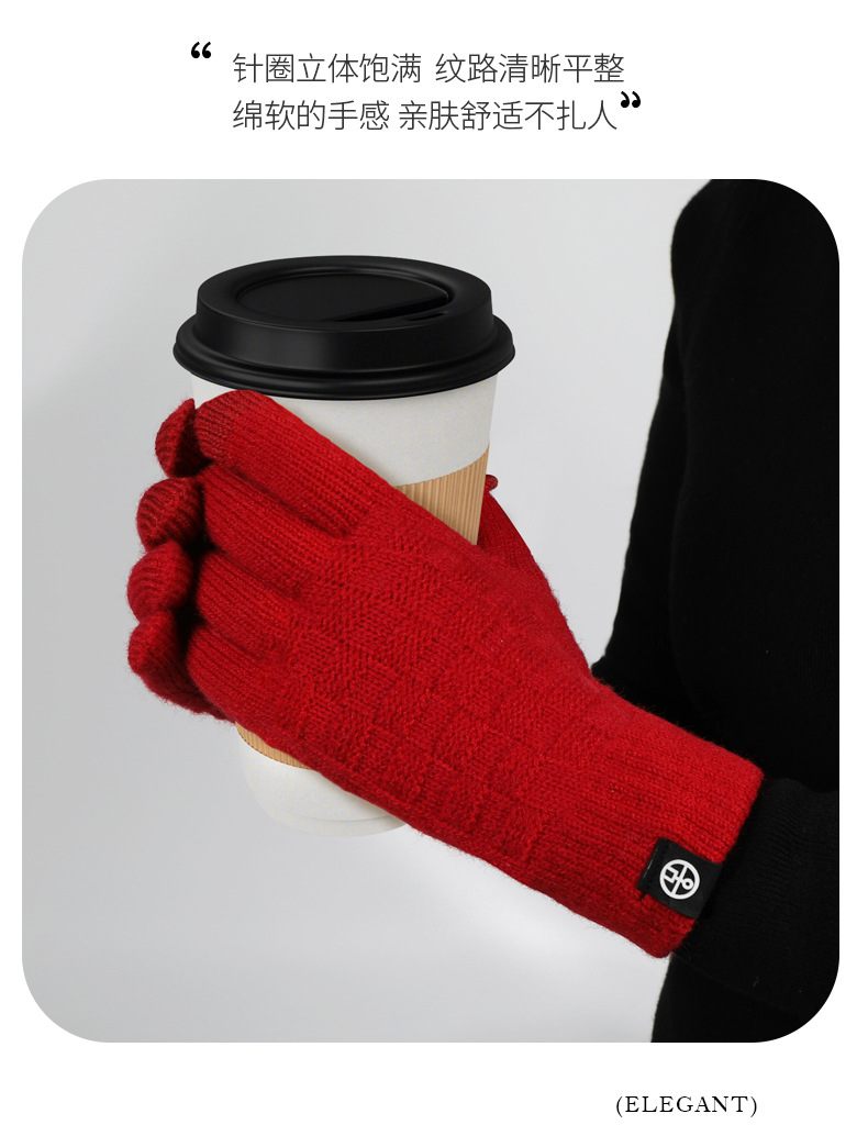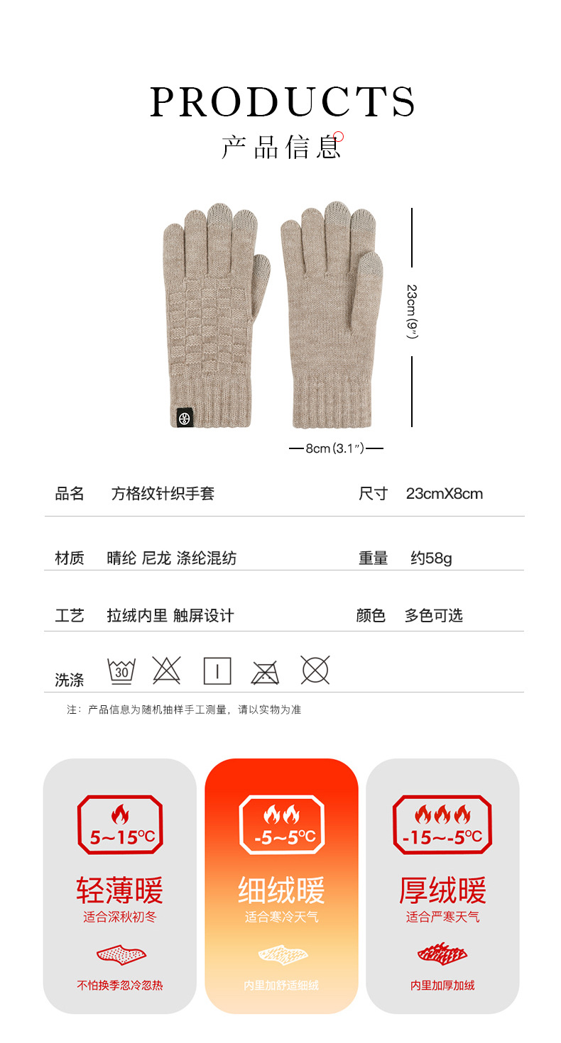 니트 장갑 겨울 체크 무늬 양모 장갑 따뜻한 방한 손가락 학생 쓰기 터치 스크린 장갑 사이클링