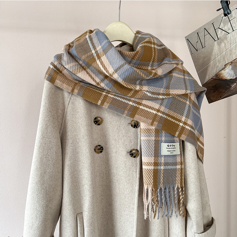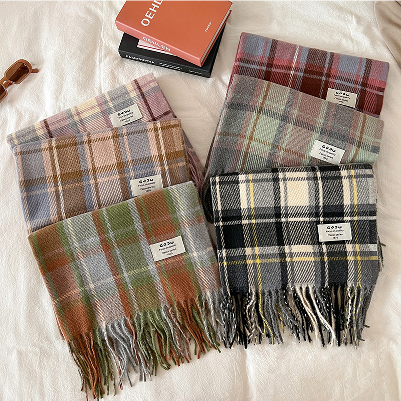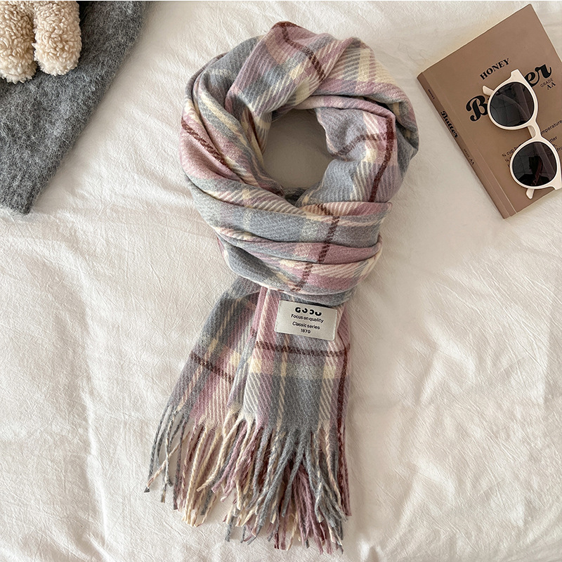 2024 새로운 재고 가을과 겨울 술 체크 무늬 스카프 캐시미어 달콤한 패션 조커 스카프 여성스토어 가기