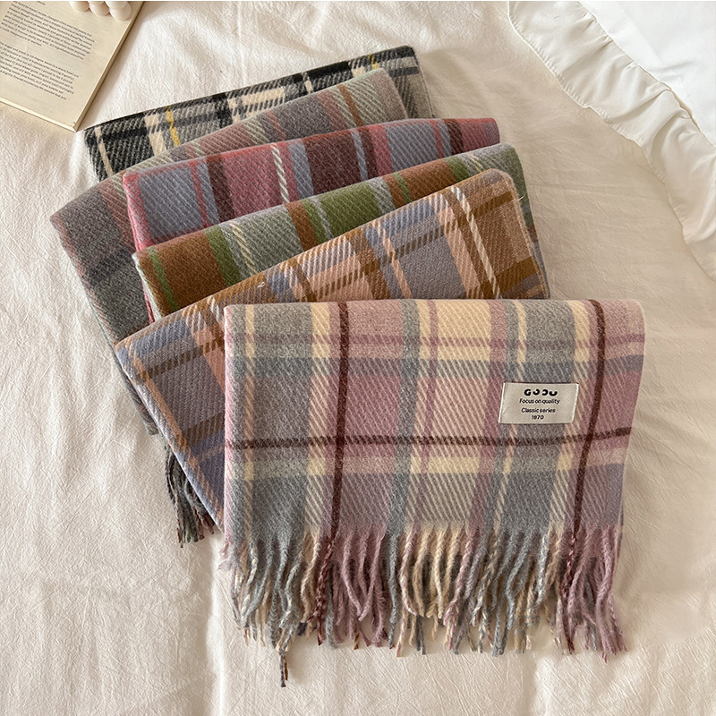 2024 새로운 재고 가을과 겨울 술 체크 무늬 스카프 캐시미어 달콤한 패션 조커 스카프 여성