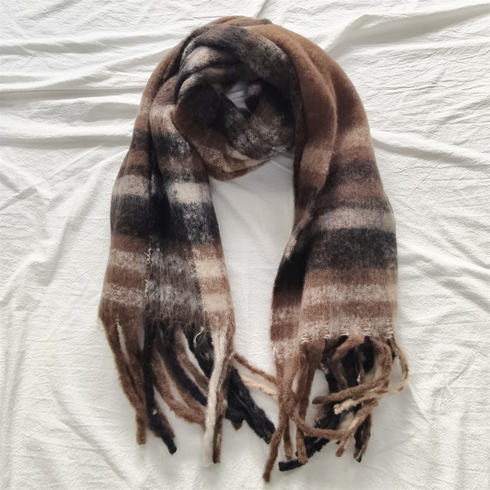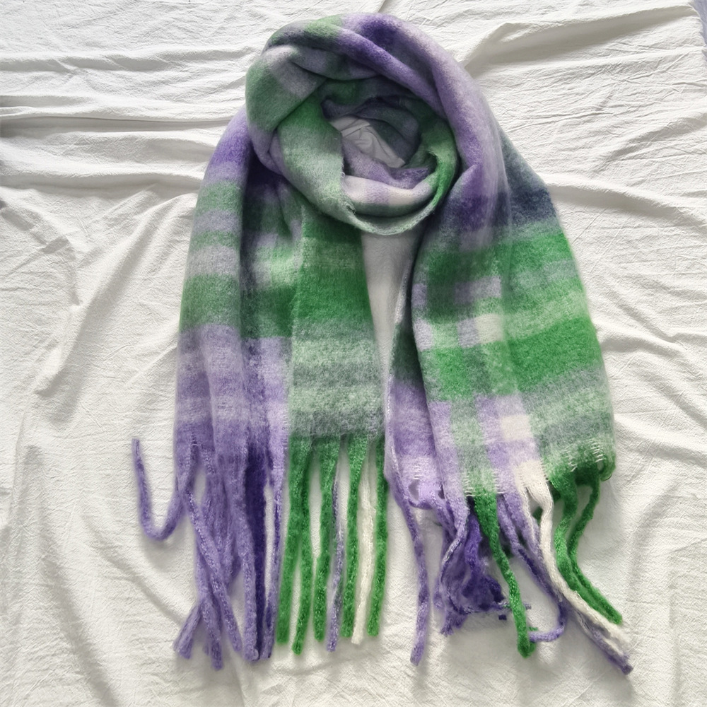 (Fouled) 대형 에디션 보라색 술 스카프 여성 핑크 따뜻한 목 두꺼운 격자 무늬 소프트 왁스 긴 목도리