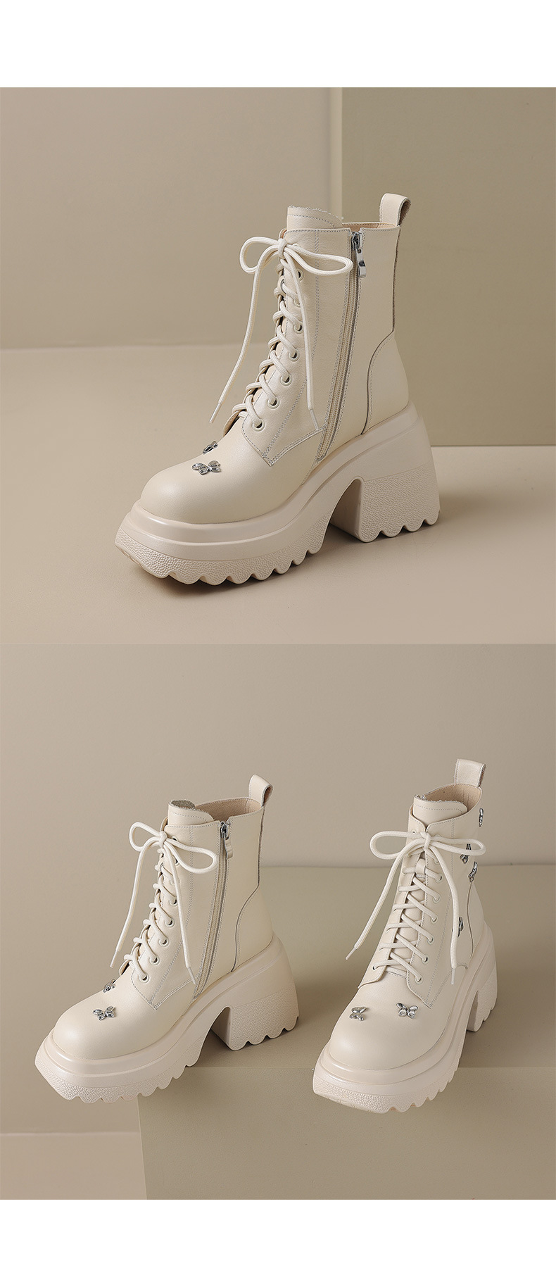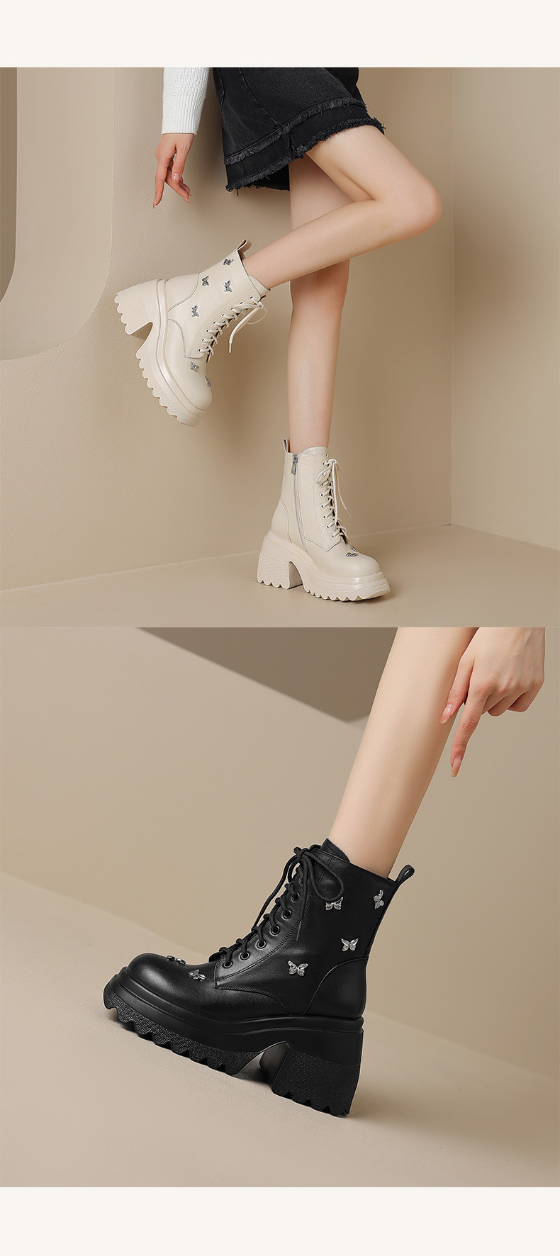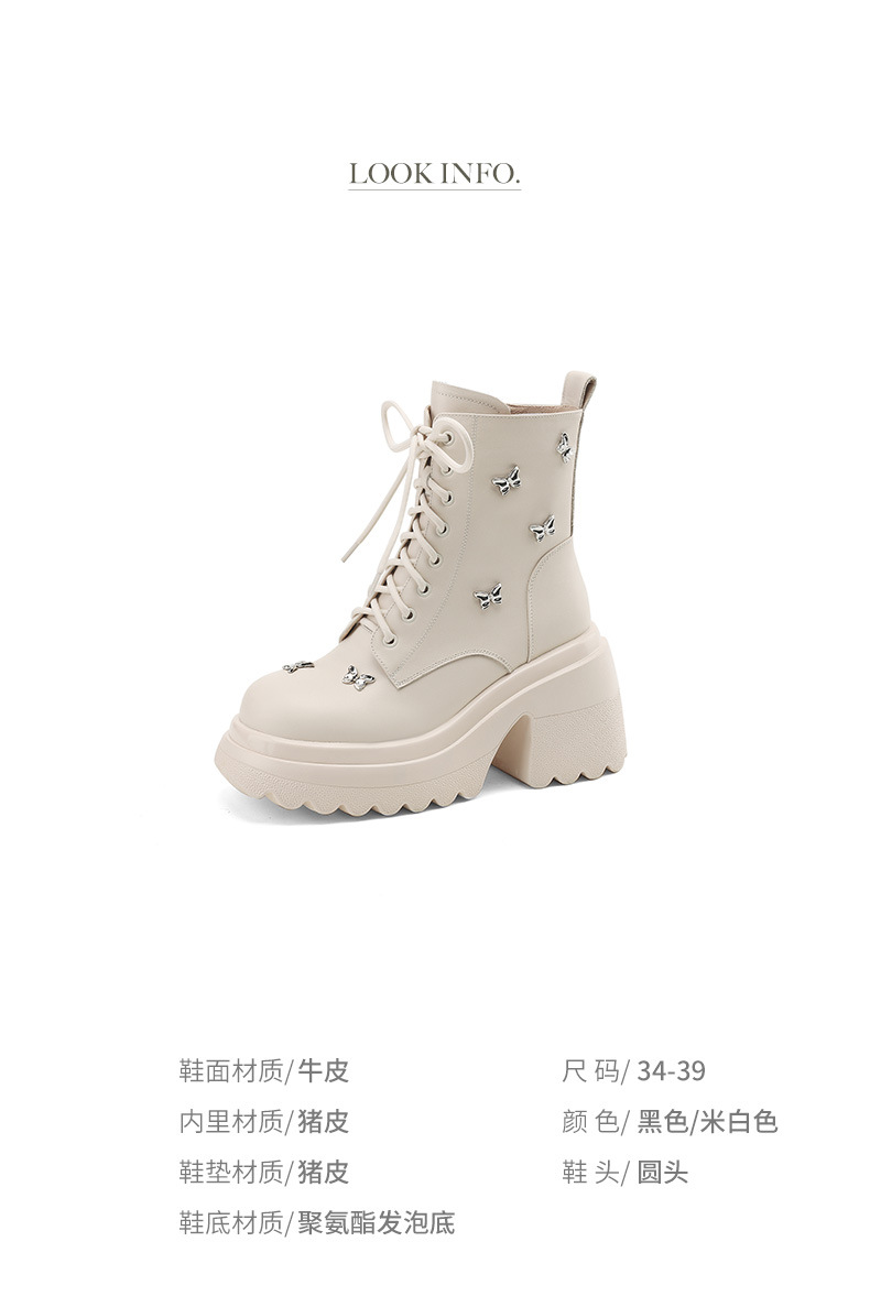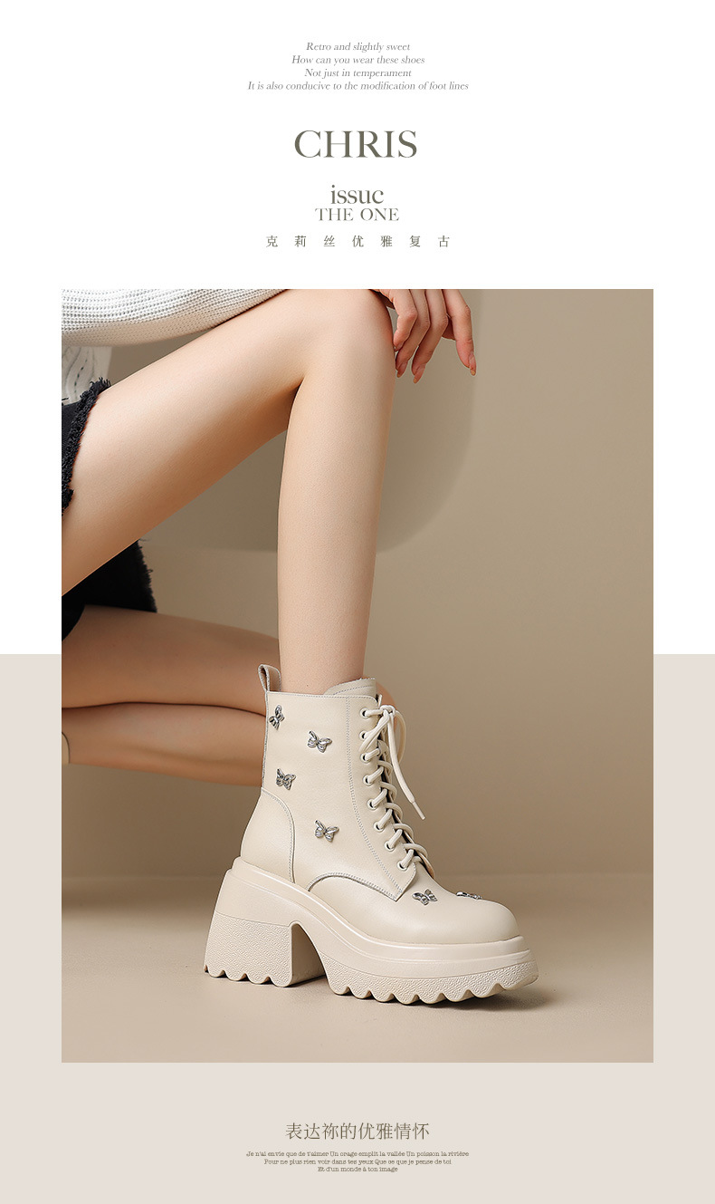 마틴 부츠 숏 가죽 부츠 여성용 10cm 짧은 키에도 잘 어울리는 두꺼운 굽 천연 가죽 라운드 토 두꺼운 밑창 영국 스타일 블랙 패션 부츠스토어 가기