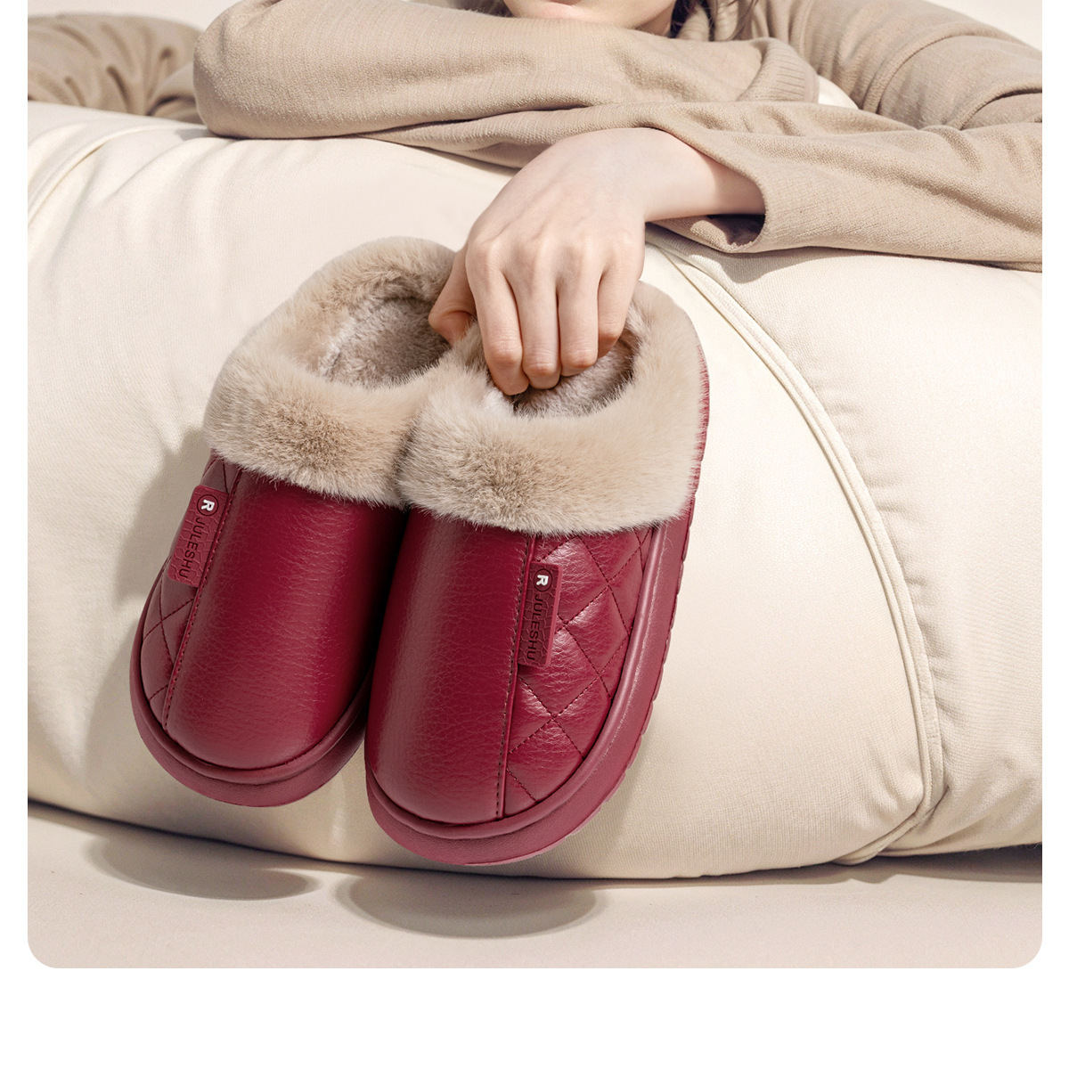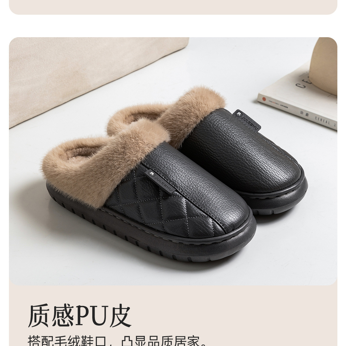 남성용 가죽 면 슬리퍼 가을, 겨울 2025 새로운 실내 홈 커플 여성용 두꺼운 밑창 미끄럼 방지 방수 면 슬리퍼