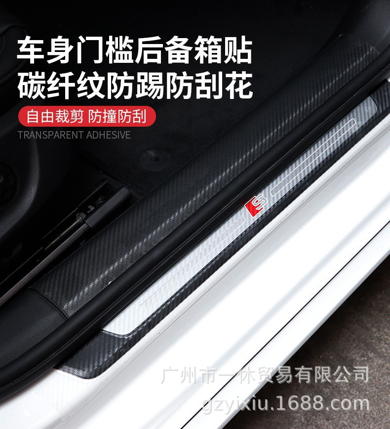 국경 투명 탄소 섬유 패턴 자동차 문턱 스트립 범퍼 충돌 방지 스트립 스테핑 스티커 유니버설 자동차 필름 스티커 장식 스트립