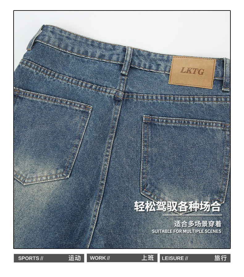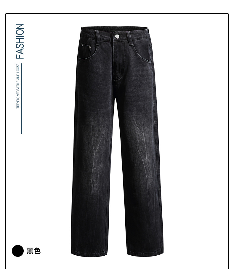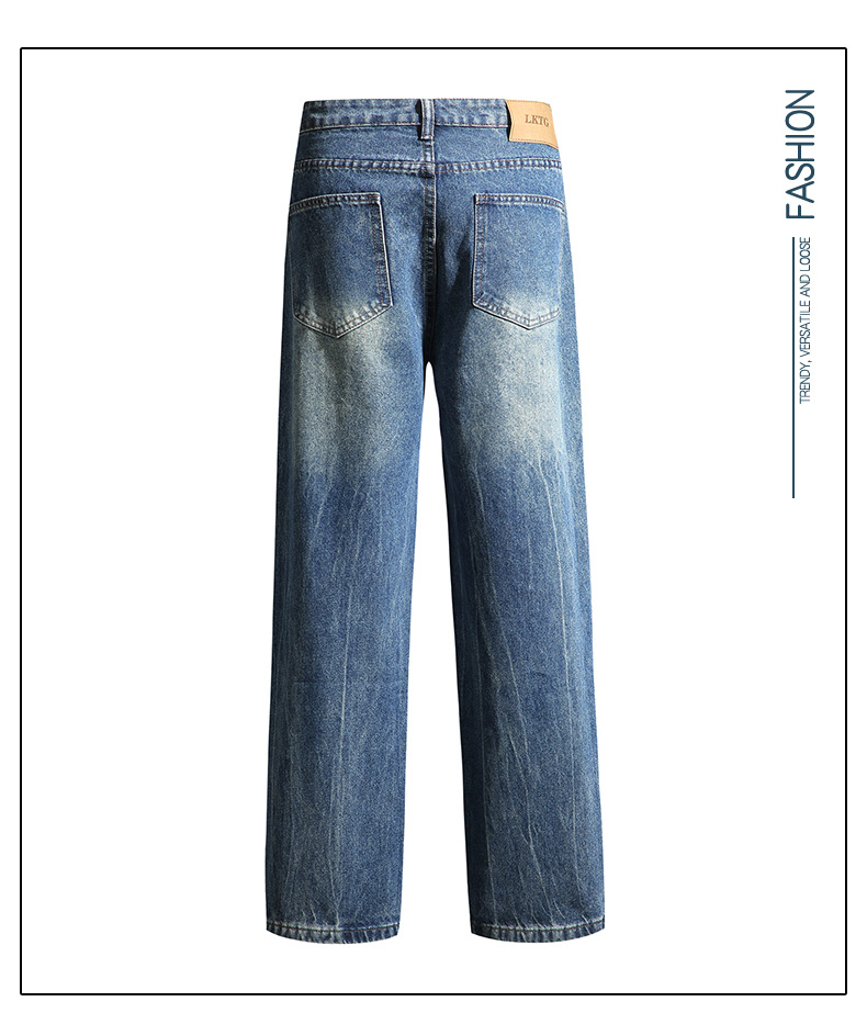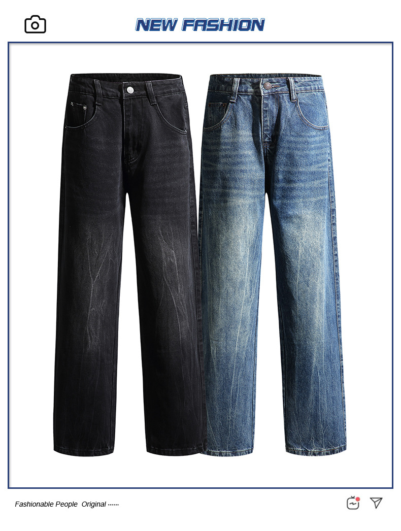 아메리칸 스타일 느슨한 스트레이트 다리 청바지 남성 봄과 가을 2024 새로운 패션 브랜드 와이드 레그 하이 스트리트 레트로 캐주얼 바지스토어 가기
