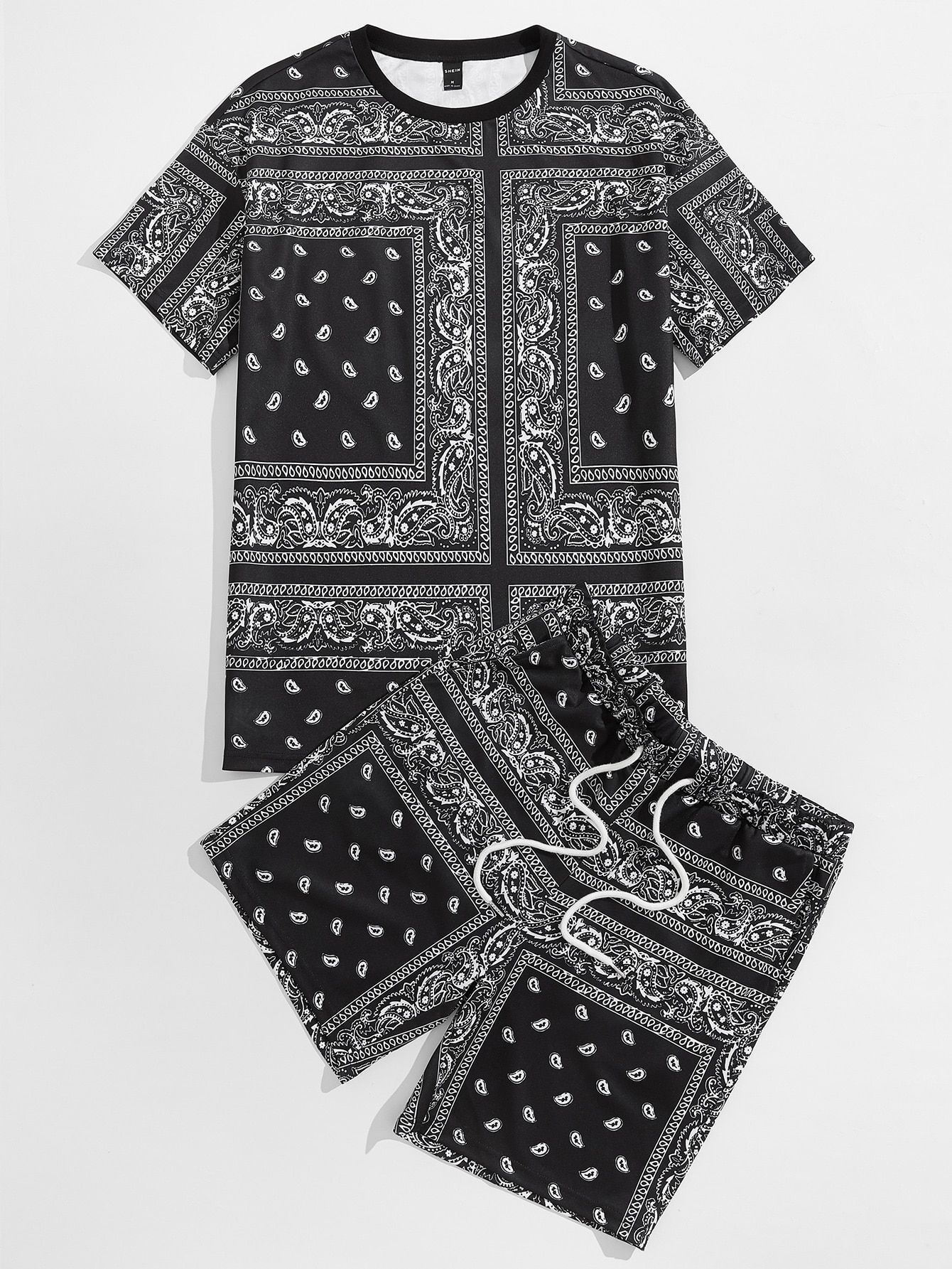 ME13 새로운 아마존 국경 패션 반팔 비치 바지 투피스 남성 캐주얼 3D 타이 염료 인쇄 MA1스토어 가기