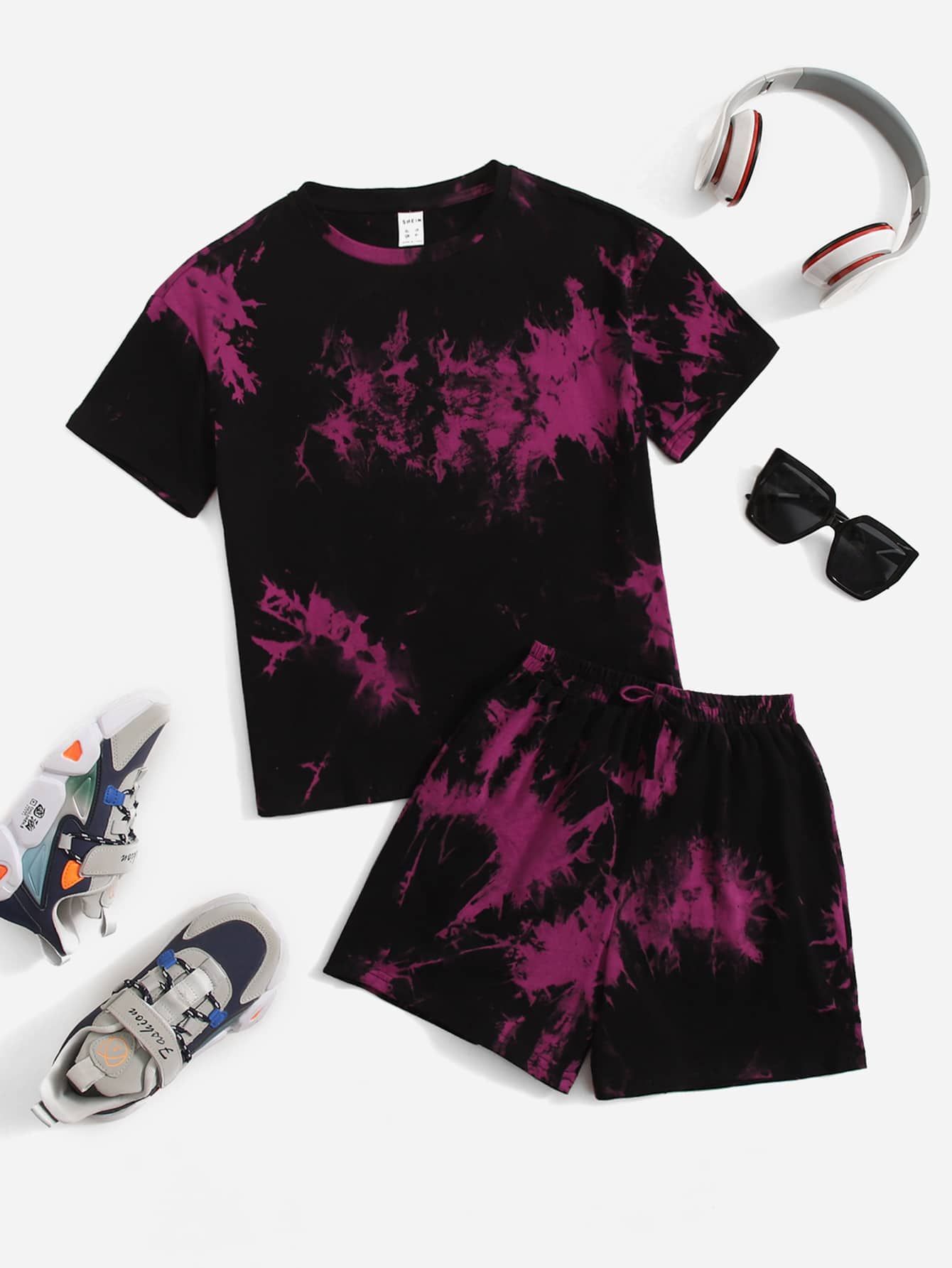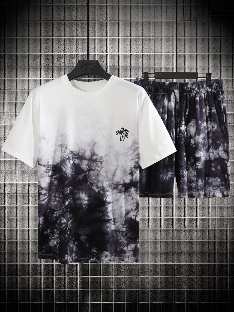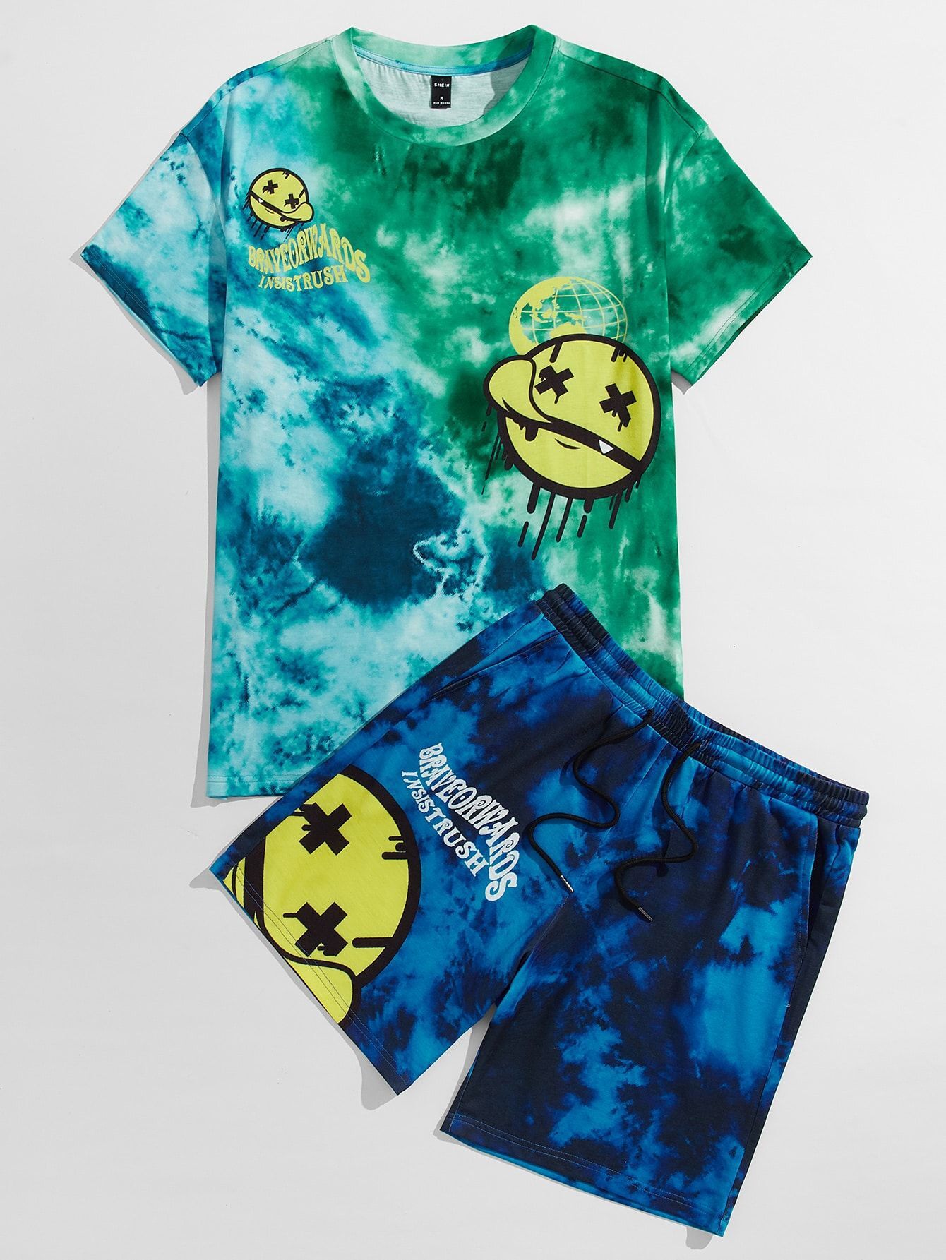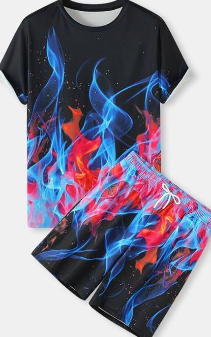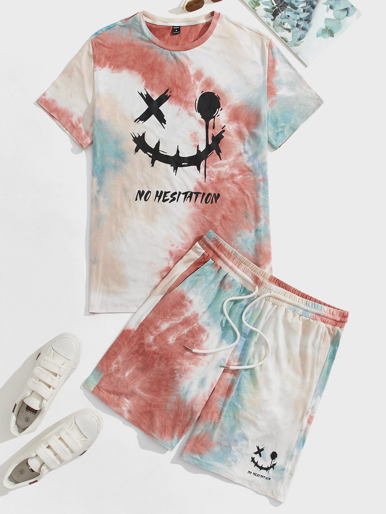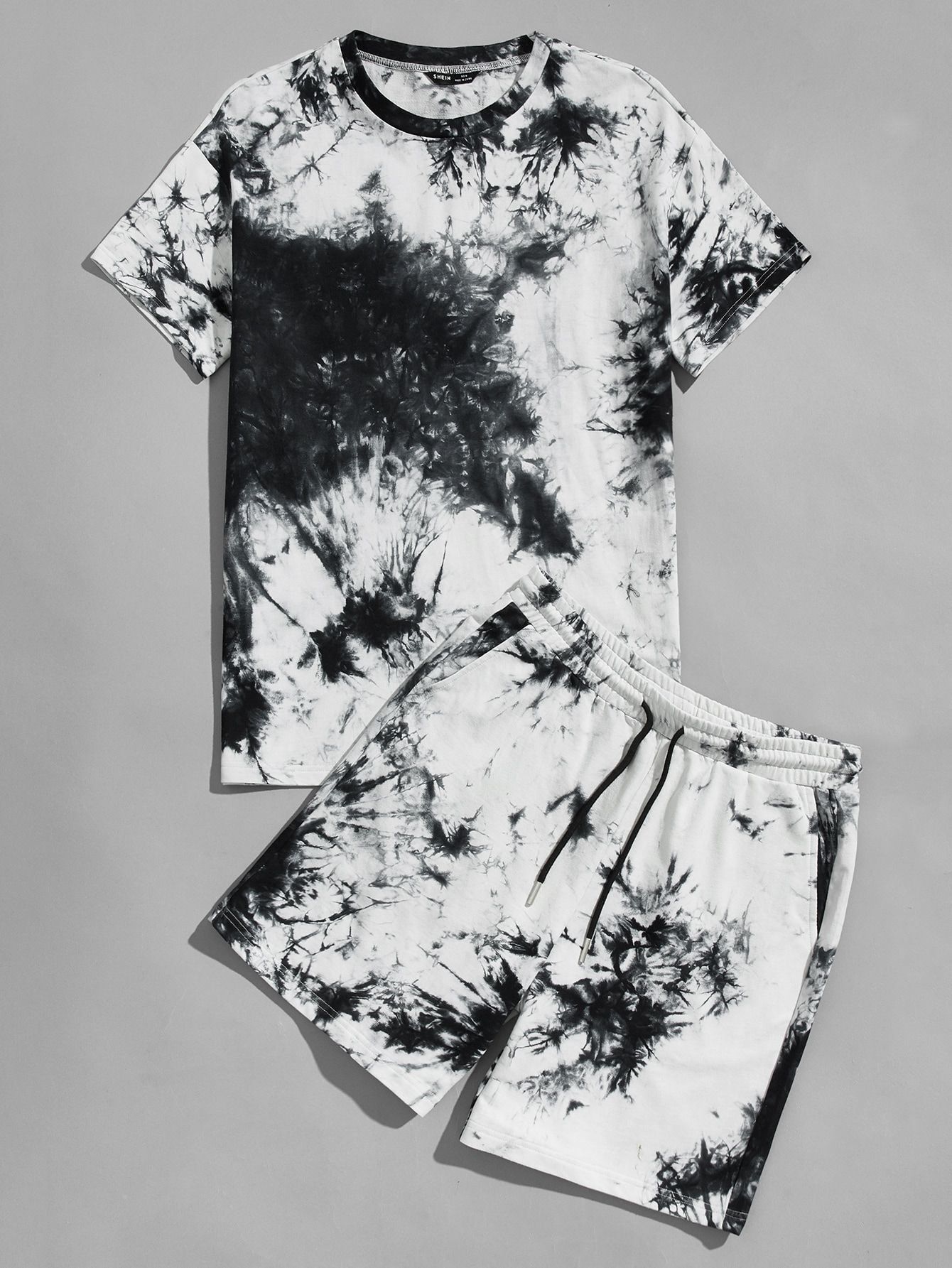 ME13 새로운 아마존 국경 패션 반팔 비치 바지 투피스 남성 캐주얼 3D 타이 염료 인쇄 MA1