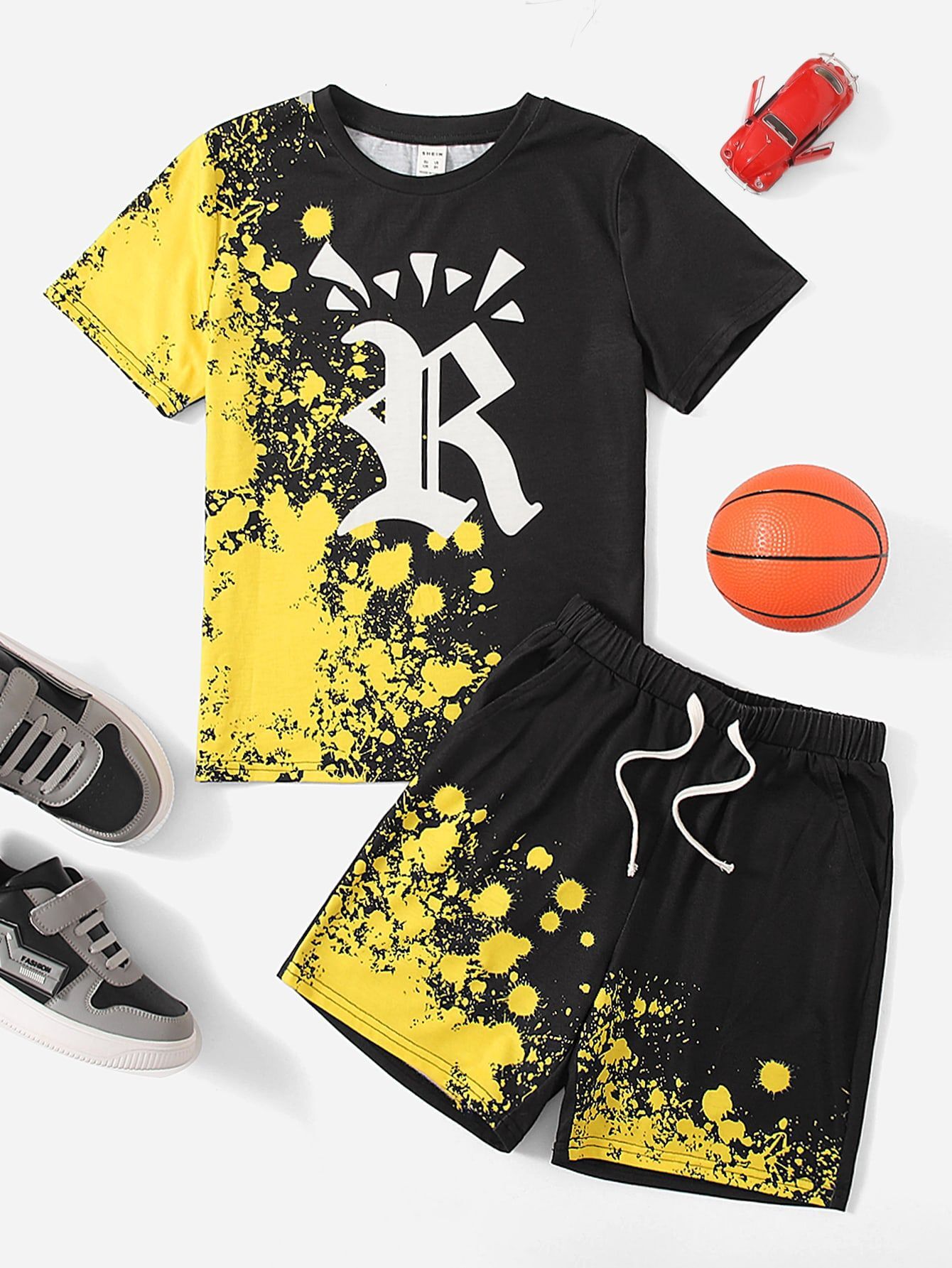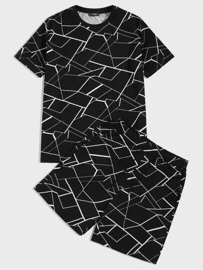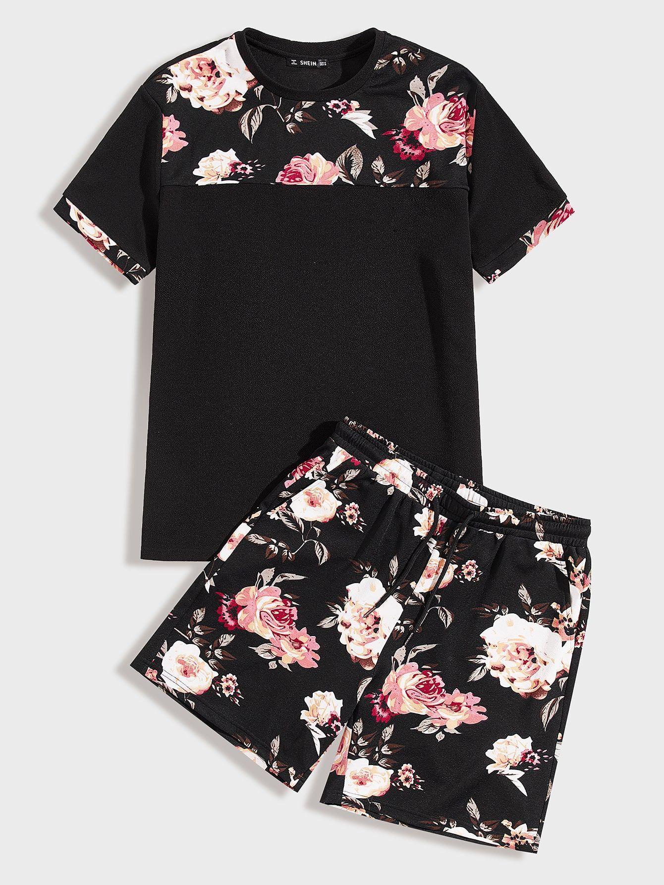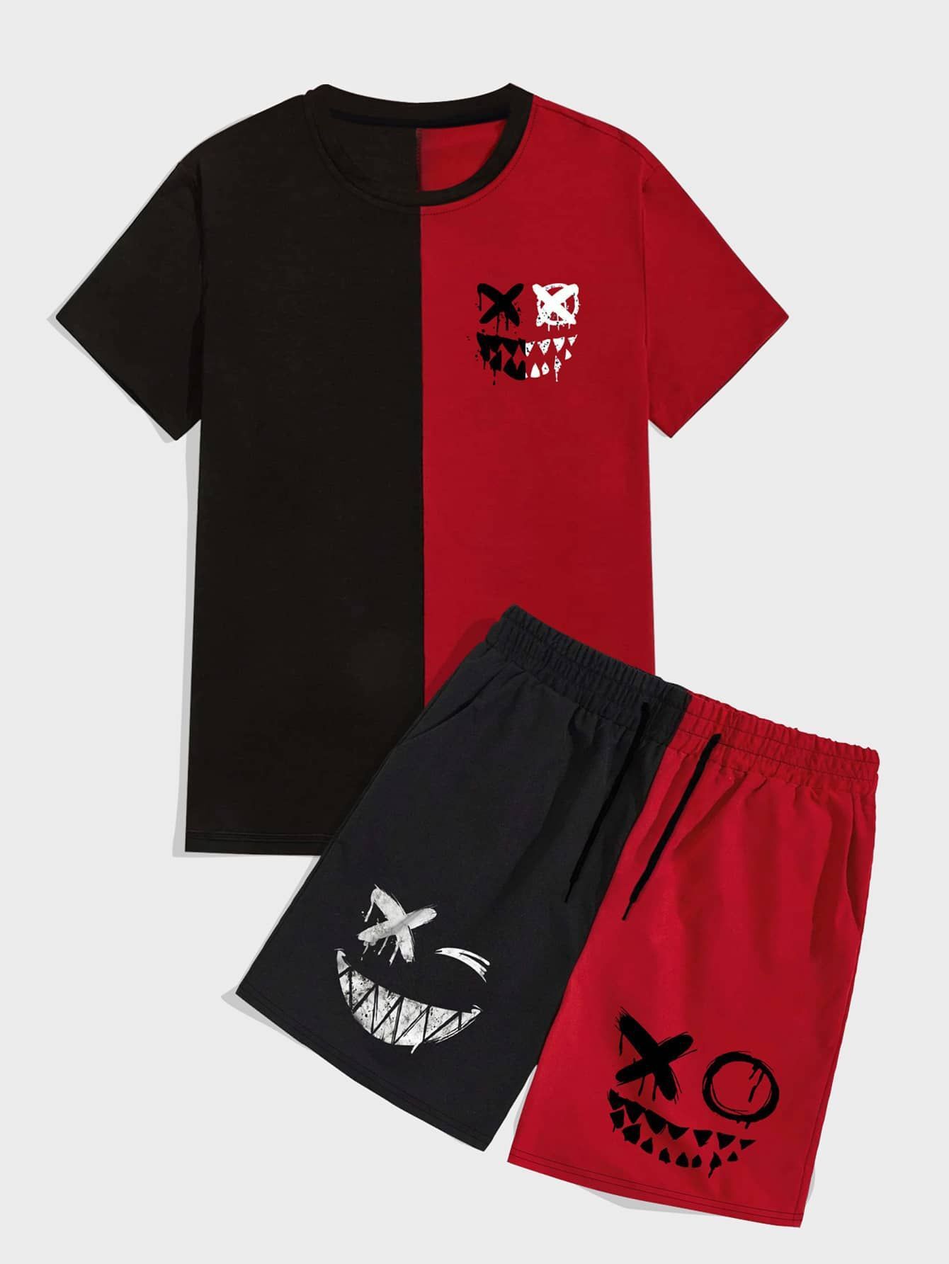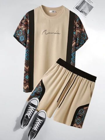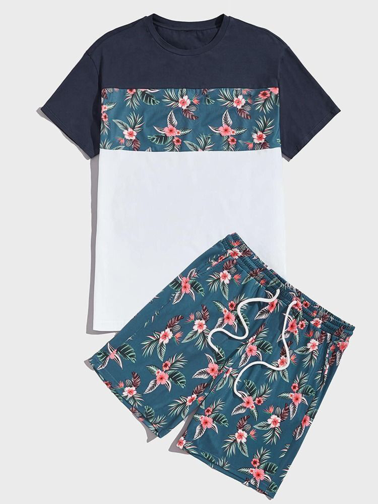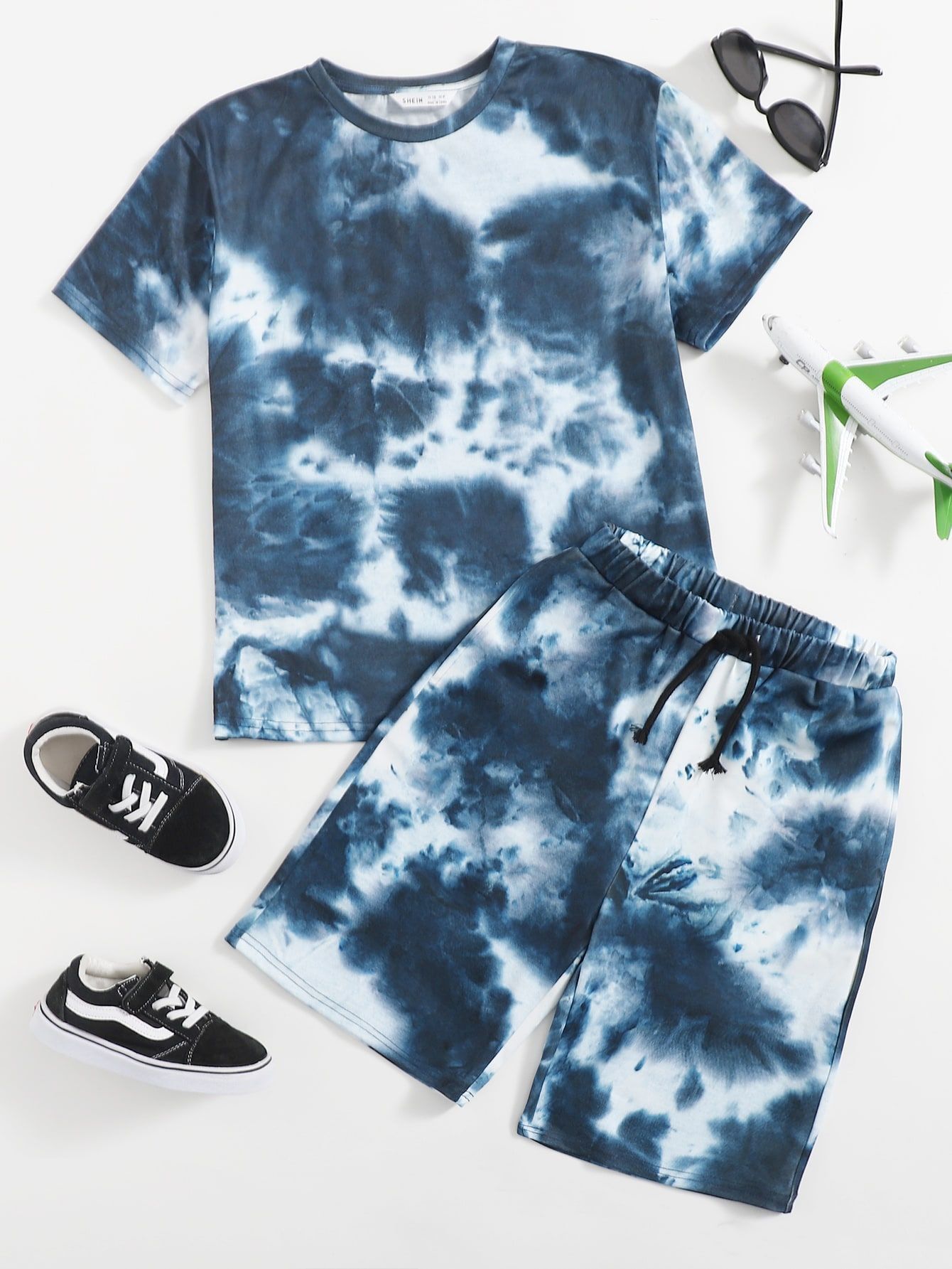 ME13 새로운 아마존 국경 패션 반팔 비치 바지 투피스 남성 캐주얼 3D 타이 염료 인쇄 MA1