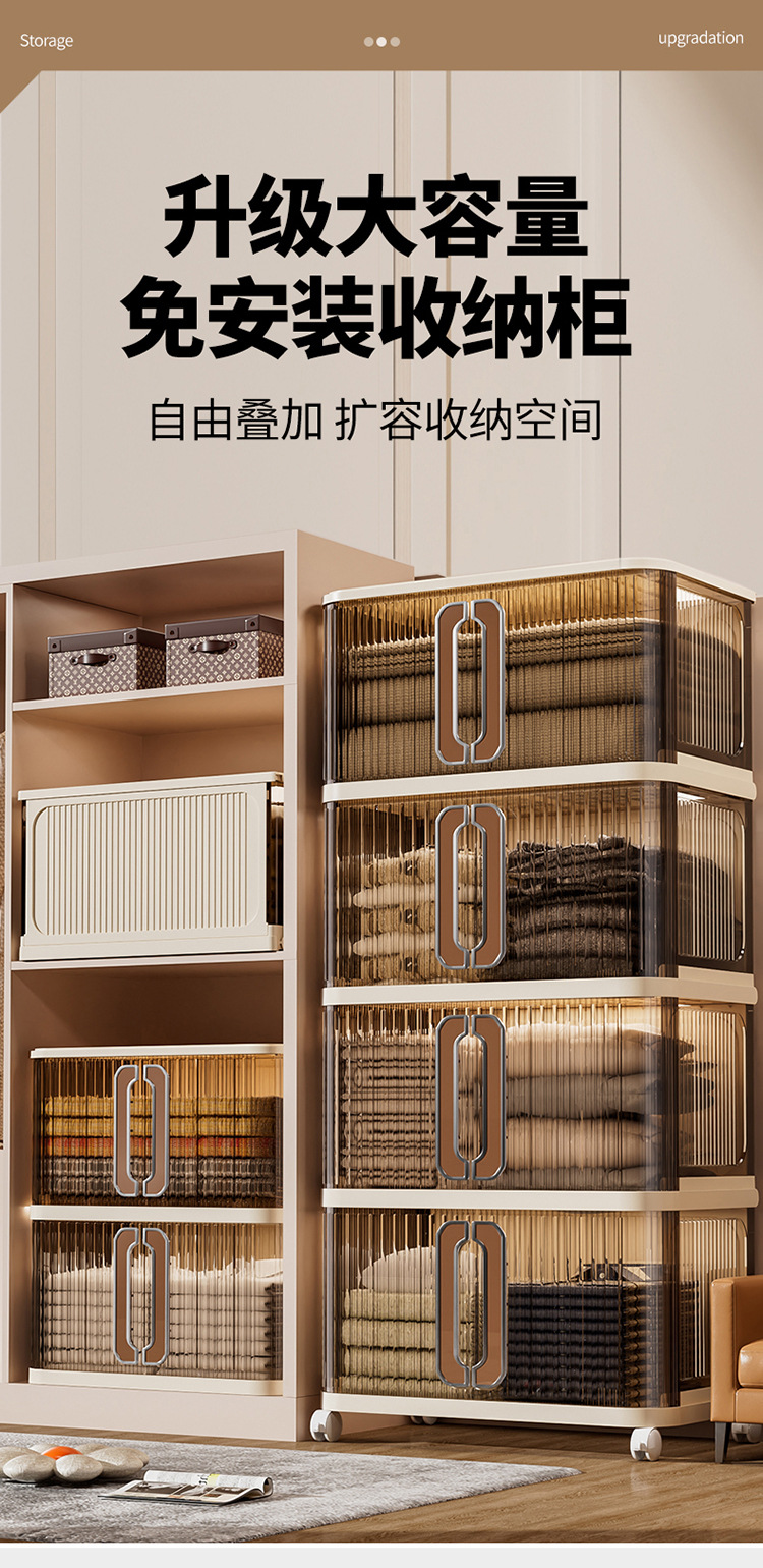 접이식 수납 캐비닛 침실 옷 이불 대용량 플라스틱 정리 캐비닛 거실 스낵 장난감 투명 수납 캐비닛
