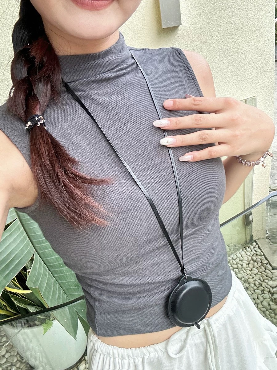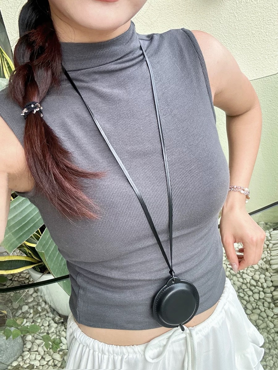 검은 목 교수형 작은 가방 한국 스타일 새 올매치 디자인 센스 넥 교수형 테이프 장식 목 교수형 가방스토어 가기