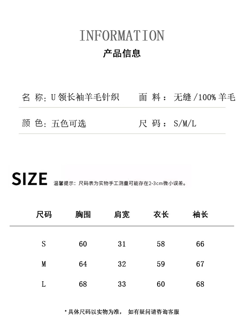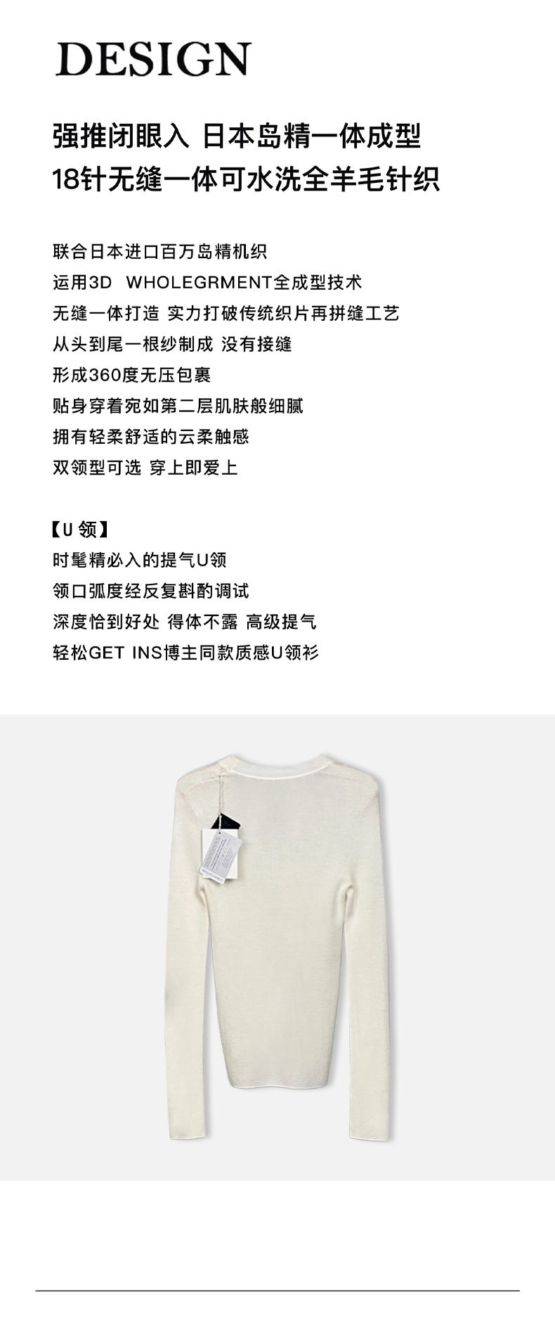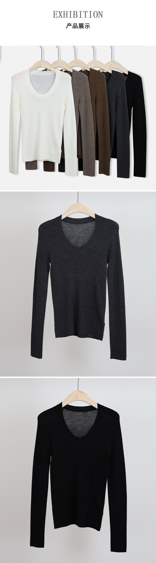 양쯔사 무봉제 100% 메리노 울 U넥 스웨터 이너웨어 긴팔 다용도 니트 여성용스토어 가기