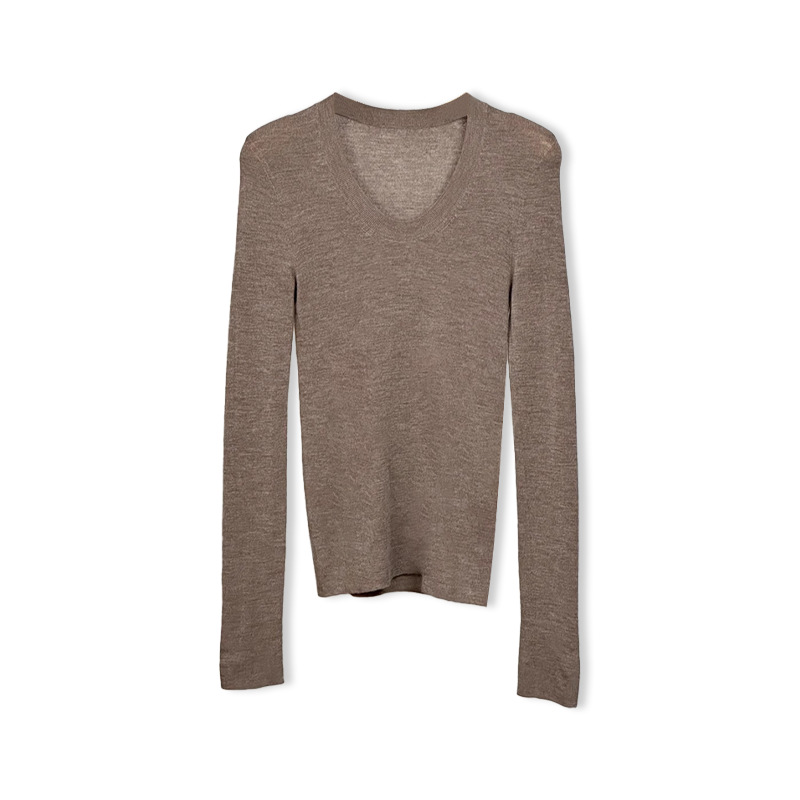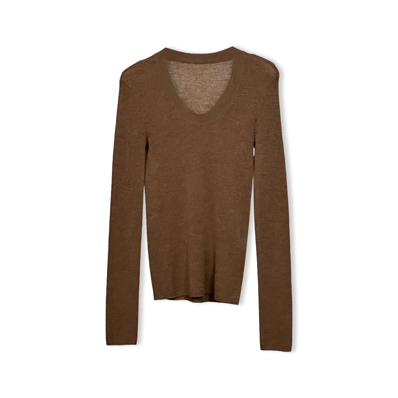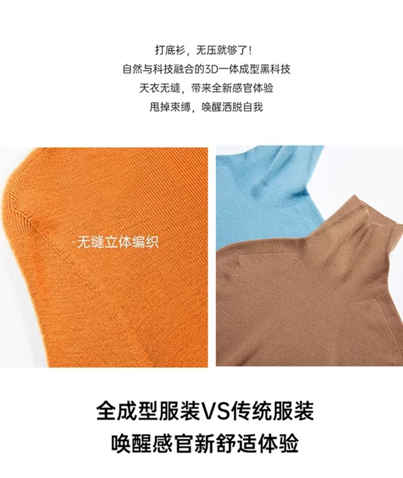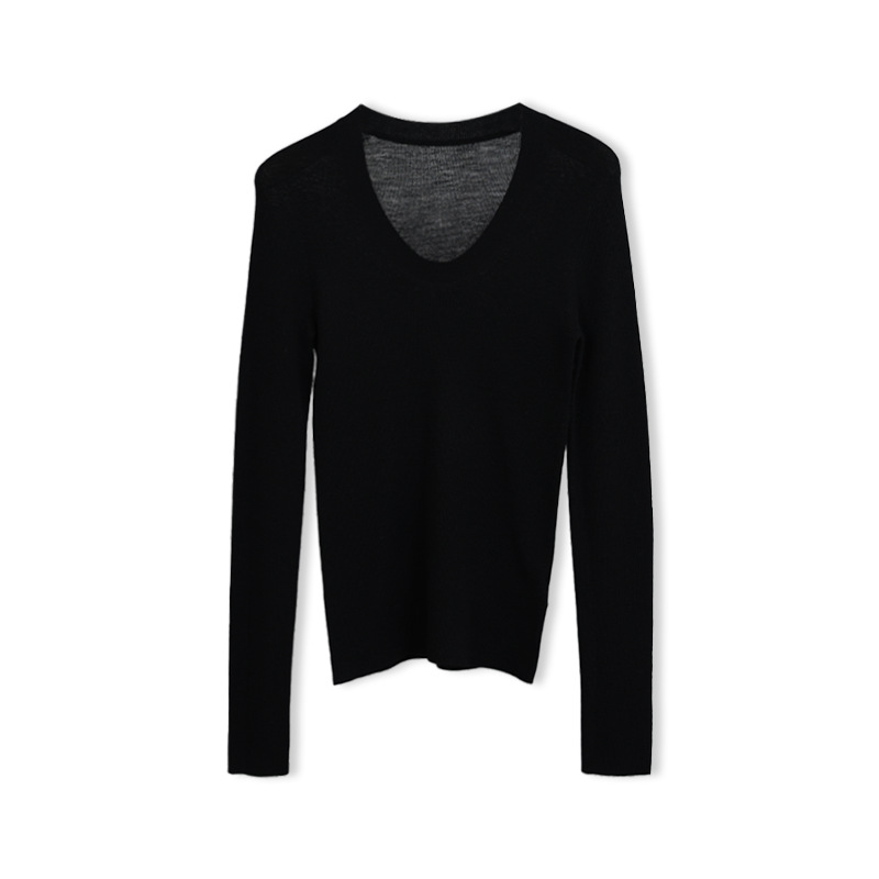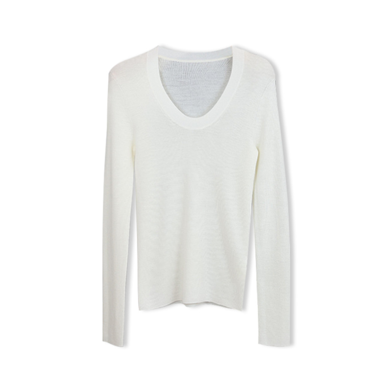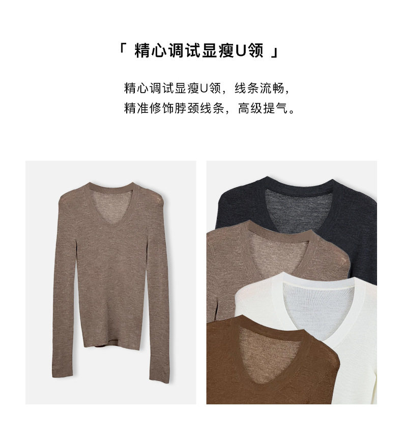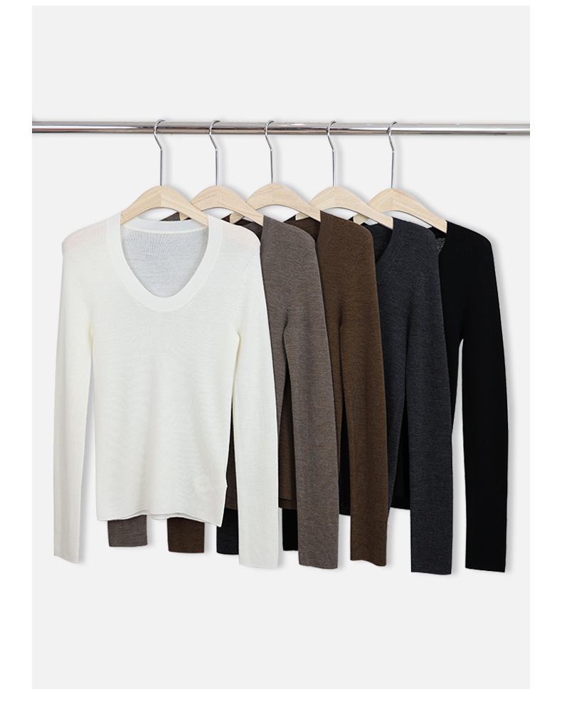 양쯔사 무봉제 100% 메리노 울 U넥 스웨터 이너웨어 긴팔 다용도 니트 여성용