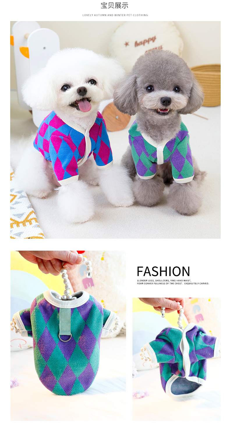 개 옷 봄과 가을 고양이 다이아몬드 카디건 니트 자켓 견인 작은 개 테디 애완 동물 6287스토어 가기