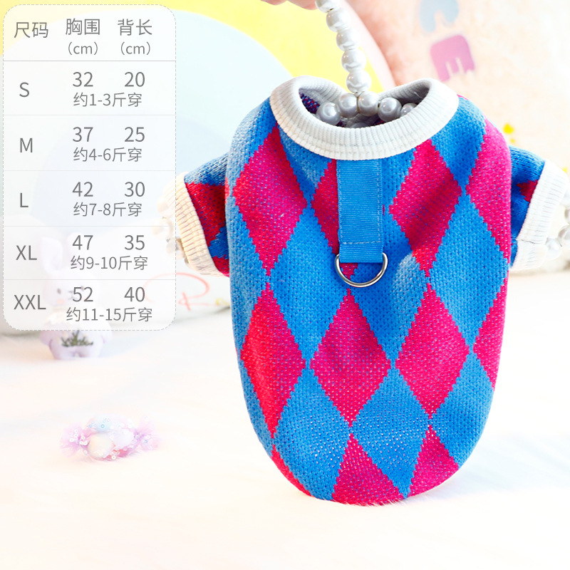 개 옷 봄과 가을 고양이 다이아몬드 카디건 니트 자켓 견인 작은 개 테디 애완 동물 6287