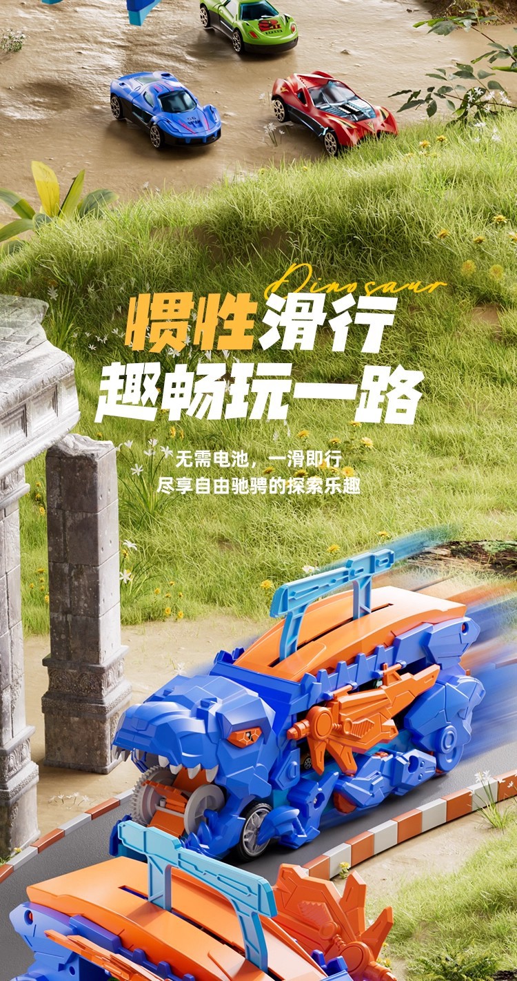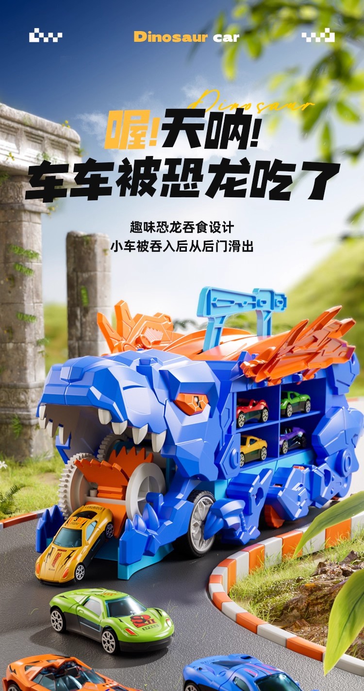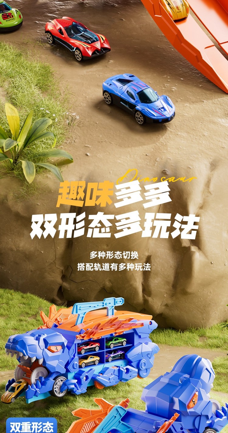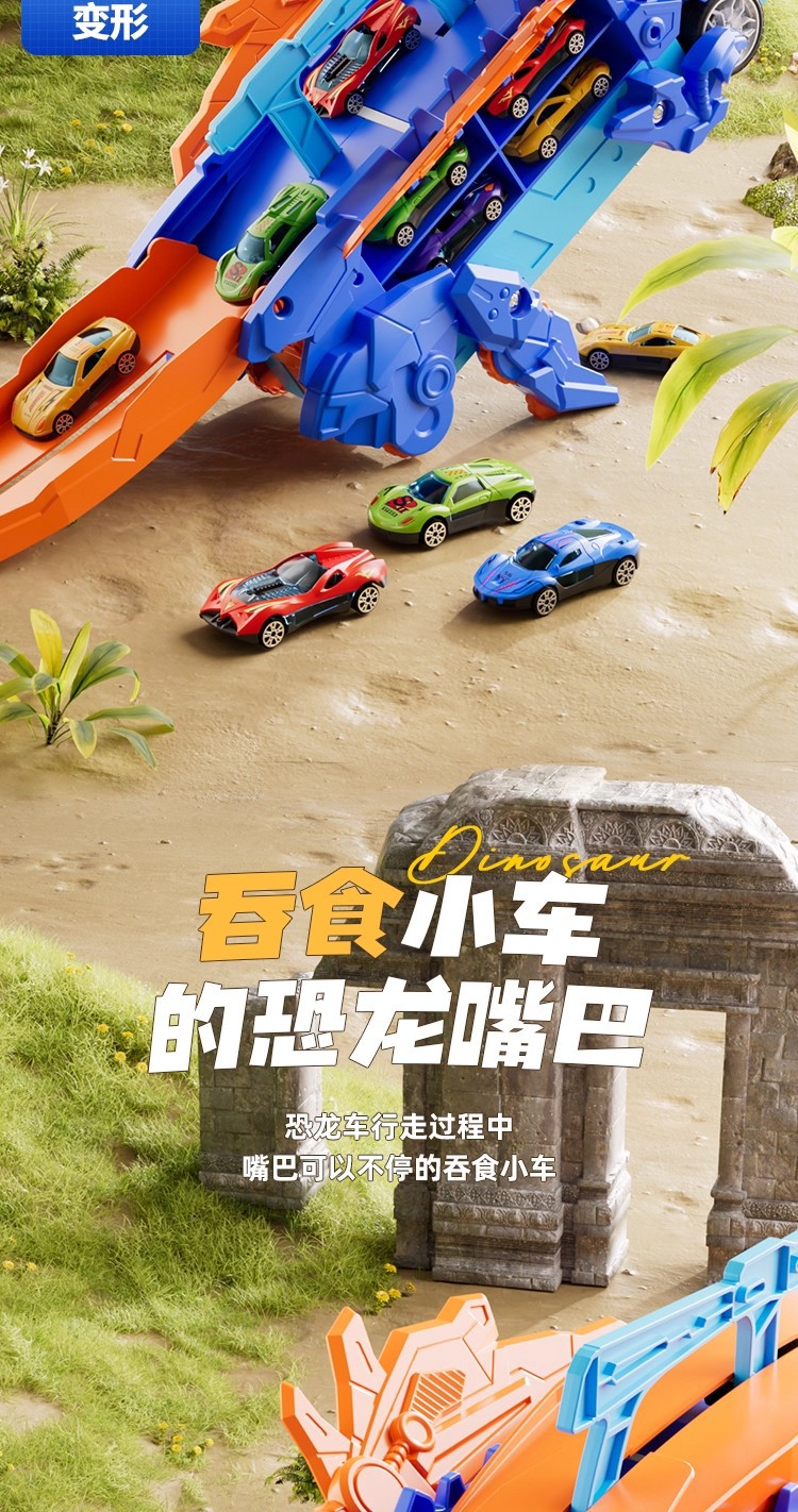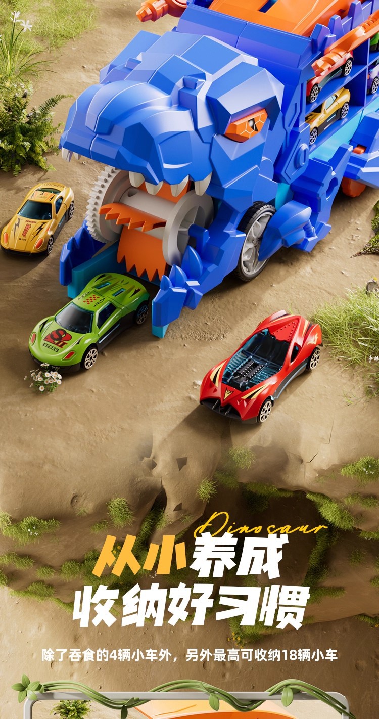 • 파란색/티라노사우루스 렉스/삼키는 자동차, 합금 자동차 포함 - 무작위 차량 4개