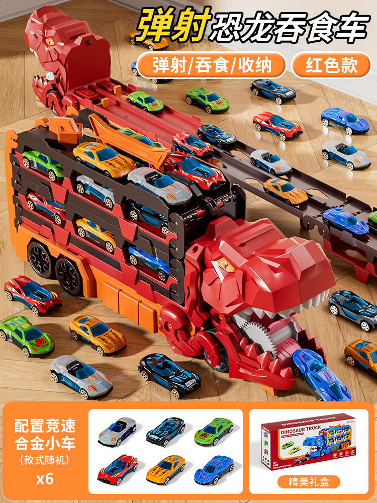 • 빨간색/티라노사우루스 렉스/삼키는 자동차, 합금 자동차 포함 - 무작위 차량 4개